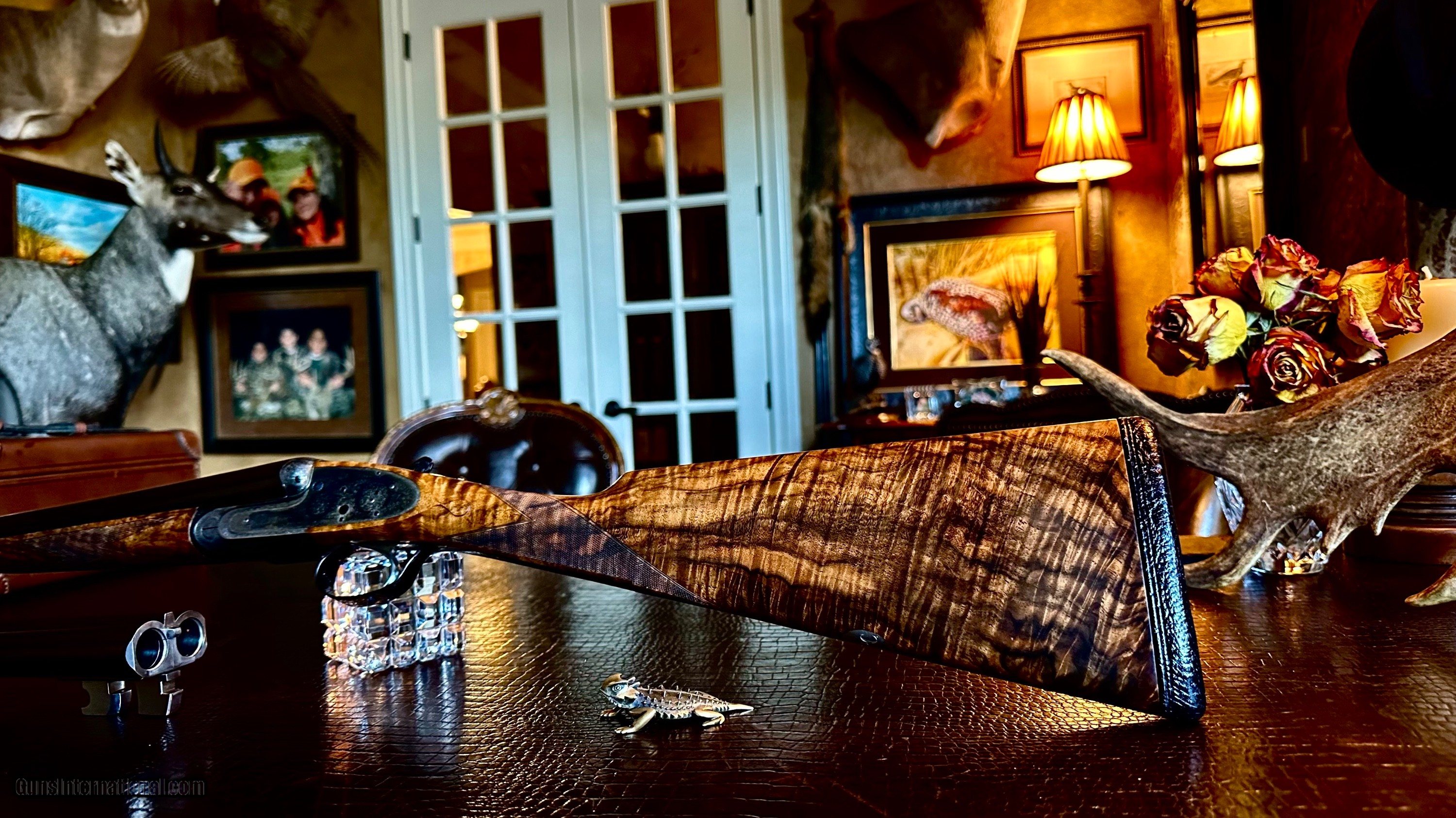 SOLD Shotgun Gauge: 20 Gauge Manufacturer: J. Purdey & Sons Model: BEST Sidelock Ejector Custom Serial Number: 27706 Barrel Length: 28” 26” Chambers: 3” and 2 3/4” Condition: Field Triggers: Single Strigger Stock Comb: 1 3/8” Stock Heel: 2” Stock Cast: Slight Right Hand (Off) Fore End: Splinter Butt Pad: Custom Leather LOP: 15 1/8” Rib: Raised Custom Purdey Game Rib Finish: Oil Weight: 5 lbs 14 ozs with both barrels Chokes: 28” 65%-75%. 26” 49%-55% |