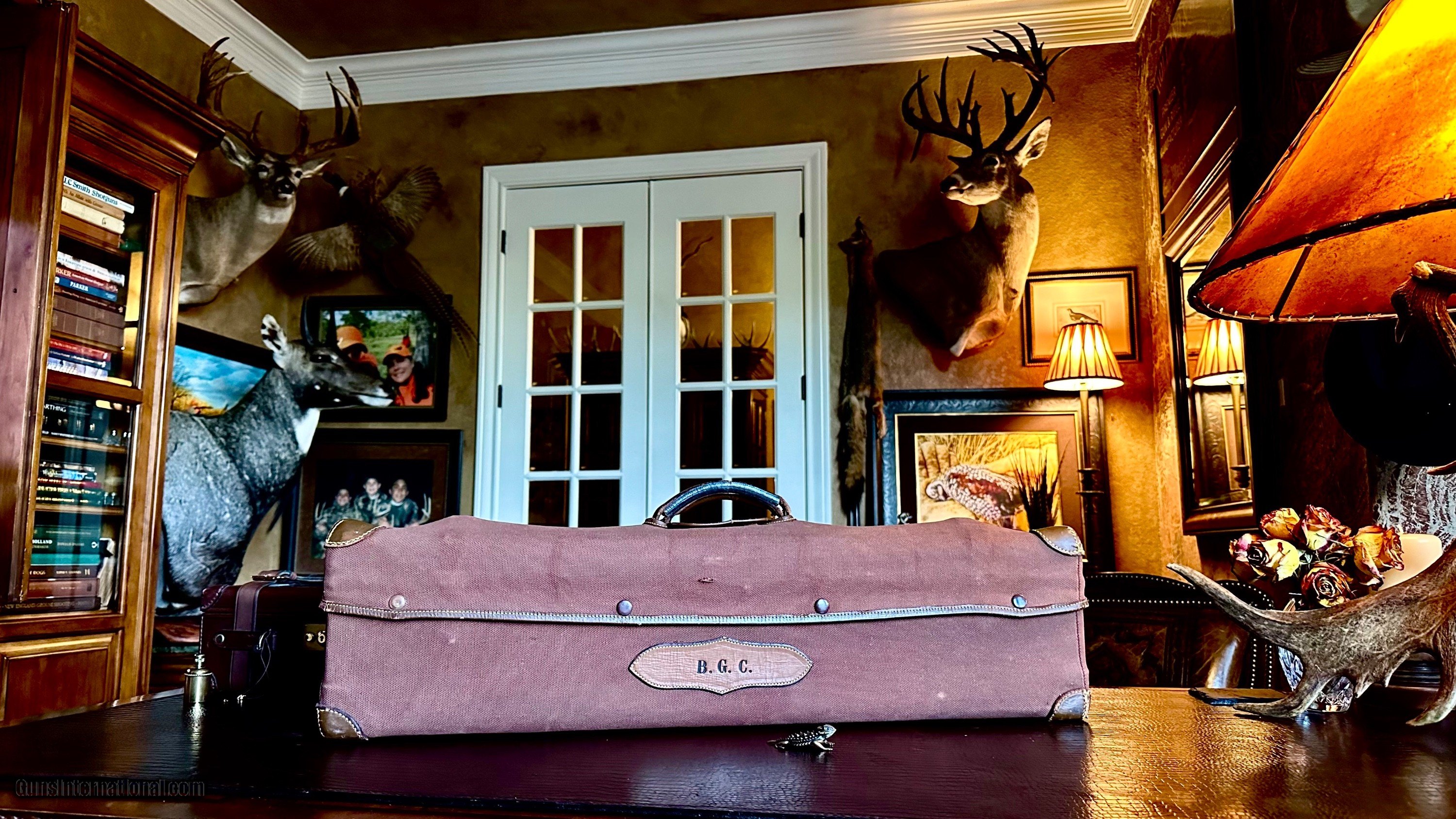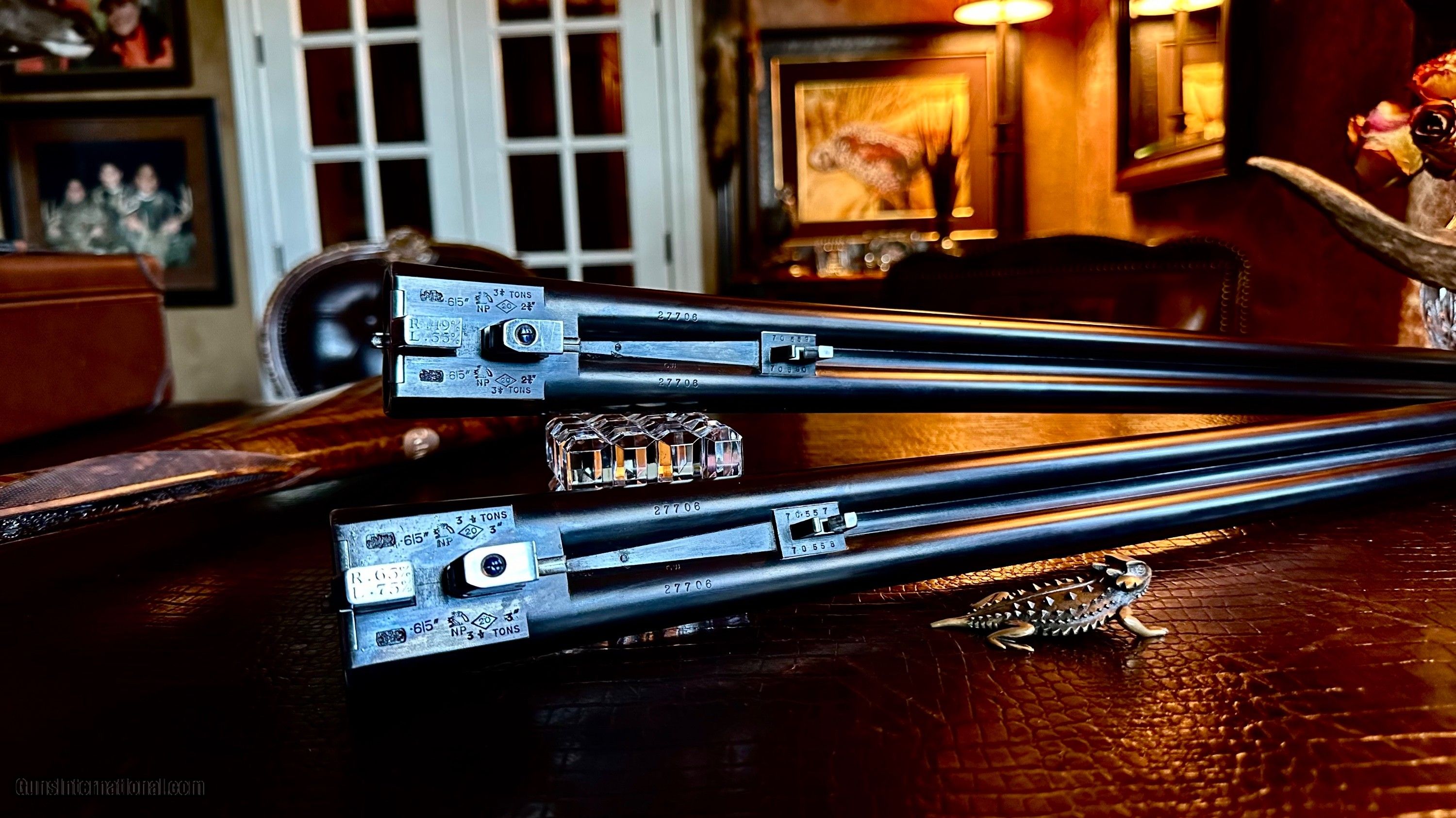 Description: J. Purdey & Sons BEST SLE 20ga - Two Barrel SIngle Trigger Lightweight Game Gun - ca. 1971 - 28”(3” shells) 26”(2 3/4” shells) - Maker’s Case - Rare One-Owner English Great - Incredible Fine Shotgun - Rich Black Barrels - Highly Figured Fine Walnut - Sideclips - Bushed Strikers - Splinter Forend - Rich Case Colors - Normal Field Wear - Nitre Blue Hinge Pin - Nitre Blue Lug Screws - Gem Colored SIdelock Pins - Nitre Blue Cocking Indicator - Custom Leather Pad - Gold Oval "WPC" - Leather Case with Canvas Cover - Raised Rib (Both Barrels) - SEE PURDEY CASE LABEL FOR FURTHER DETAILS Excerpt from email communication with Purdey in 2017 regarding the names of the master-craftsmen that built this wonderful piece of history "On the matter of 27706. As you may already know this was built and sold in April 1971 to a (name redacted) with a set of 26 and 28 inch barrel. You will see on the underside of the barrel just in front of the hook, the initials GW, for George Wood a very senior Barrel makers at that time. On the forend iron you will see the initials BD although it may look more like PD. This was the Actioner Ben Delay, who was my old gun making master and so there is every chance I may have made parts of your gun. The gun was stocked by Harold Ben’s brother. Engraving was done by my old pal Danny O’Brien. Mr Woolmer did the ejector work and Mr Swanson finished the gun on the 28th Jan 1971."