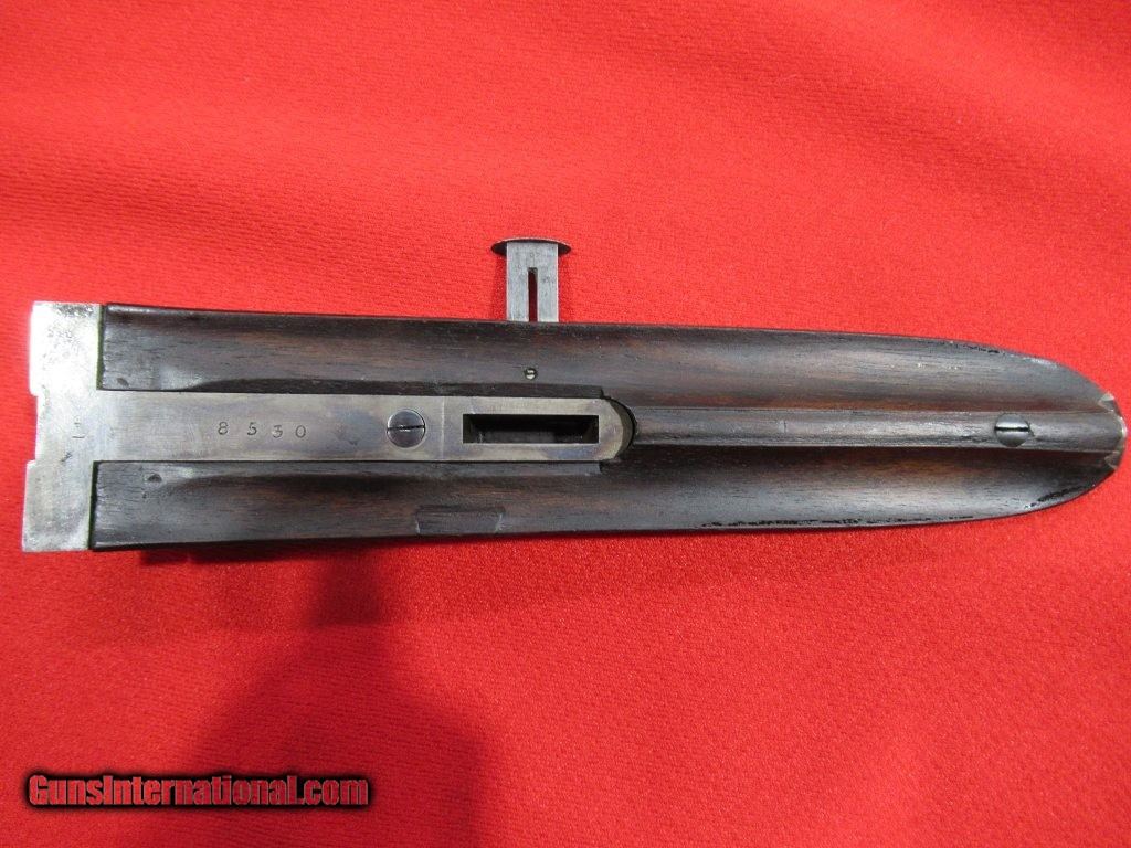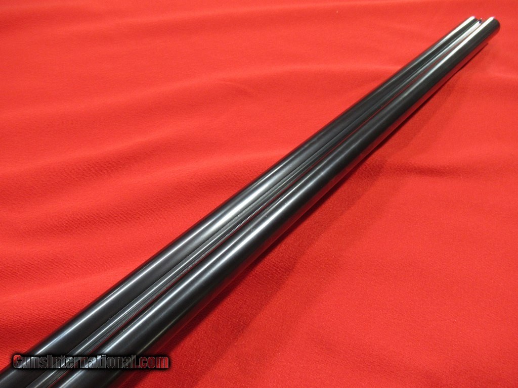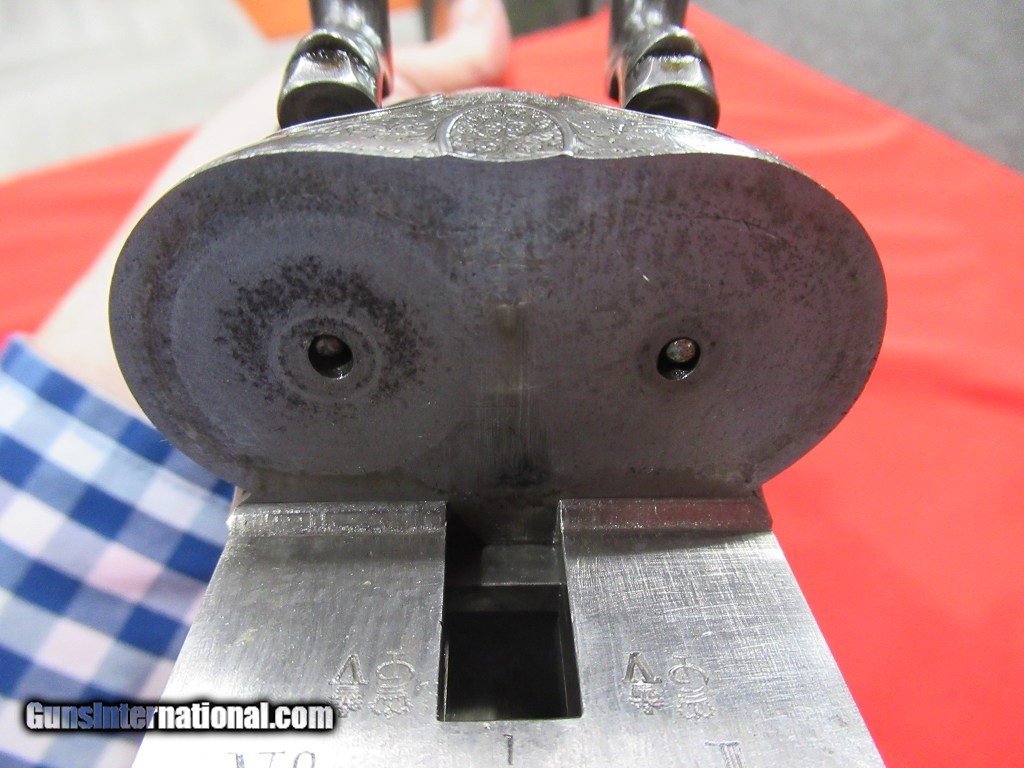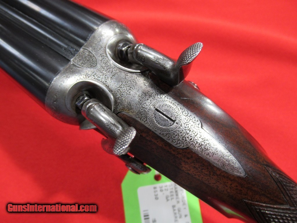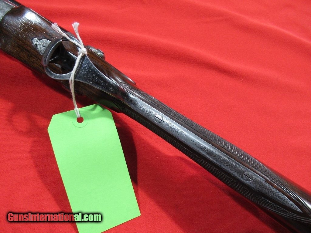 Description: Purdey thumbhole hammer gun with steel barrels. 2 1/2" chambers with barrels choked 005"/.009". This would make a great vintage double for clays. Straight grip stock with model dimensions (1 3/8" x 1 5/8" x 14 1/4" over checkered butt). 6lbs 15oz. This is a beautiful little gun. SOLD |