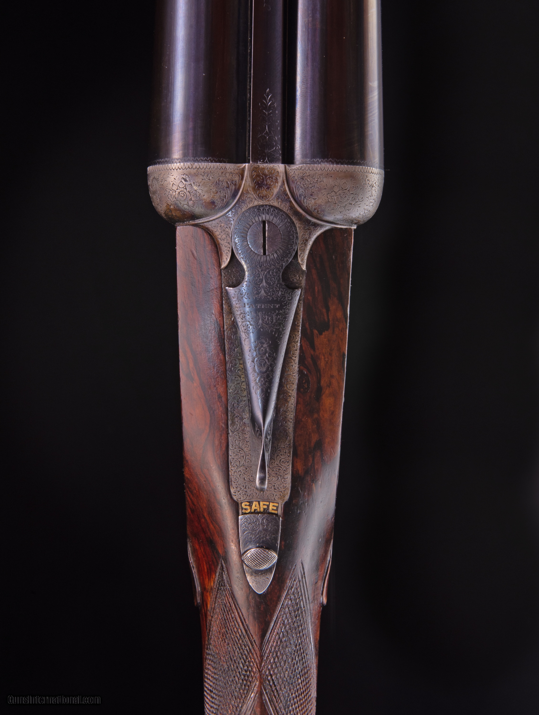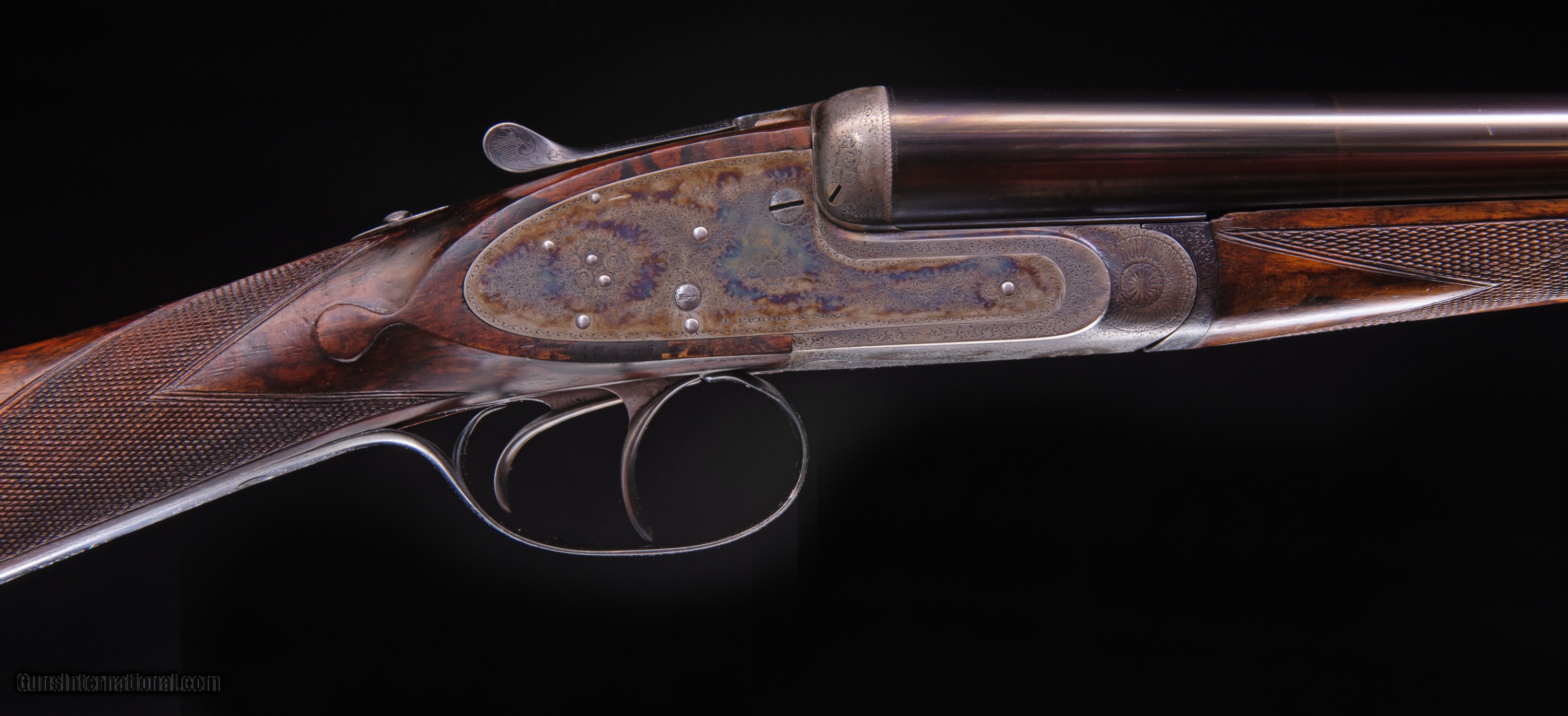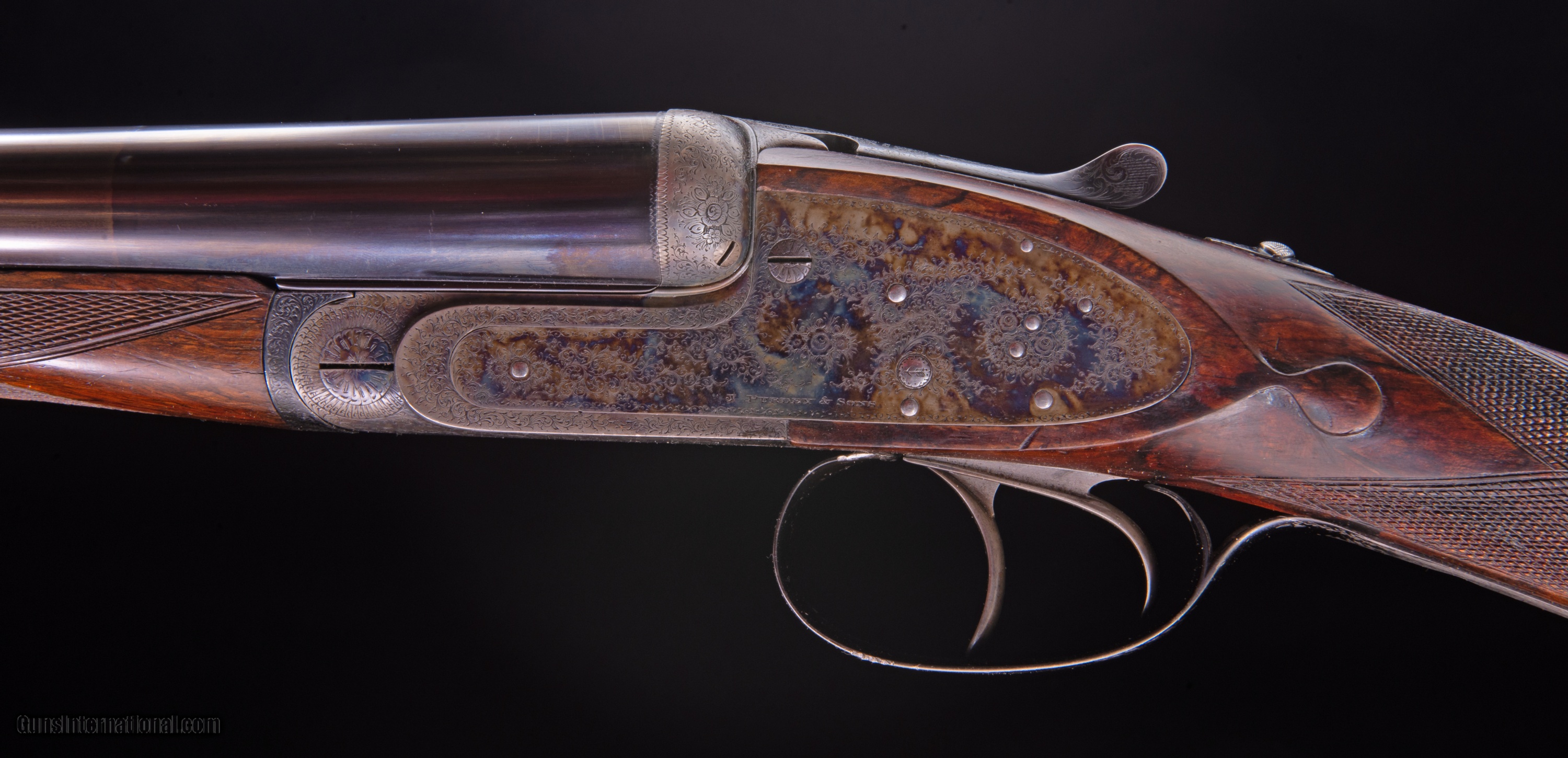 Description: Hammerless Sidelocks - This is a beautiful Purdey with stunning renewed case colors and spectacular wood with a very long LOP. I was informed this gun has a super strong invisible wrist repair to pass along what I know about the gun. It is well in proof nitro