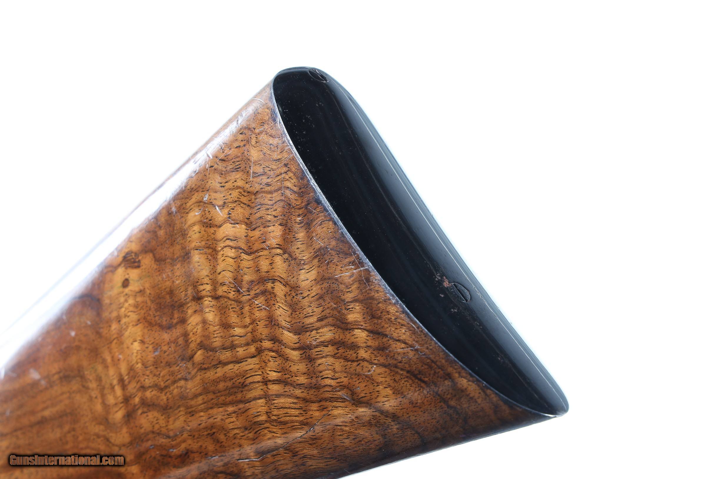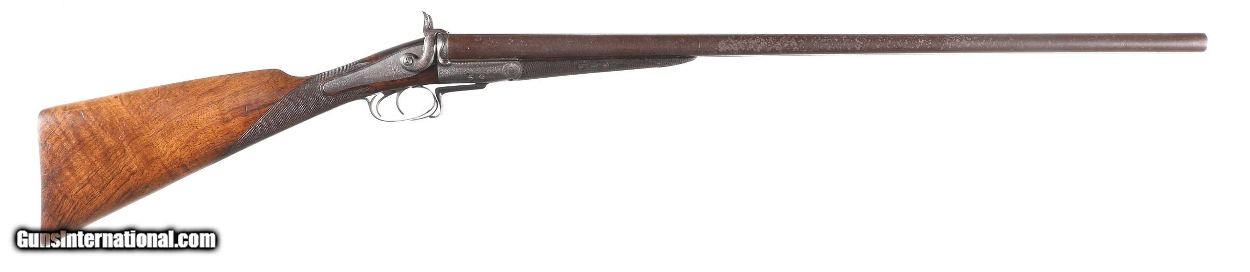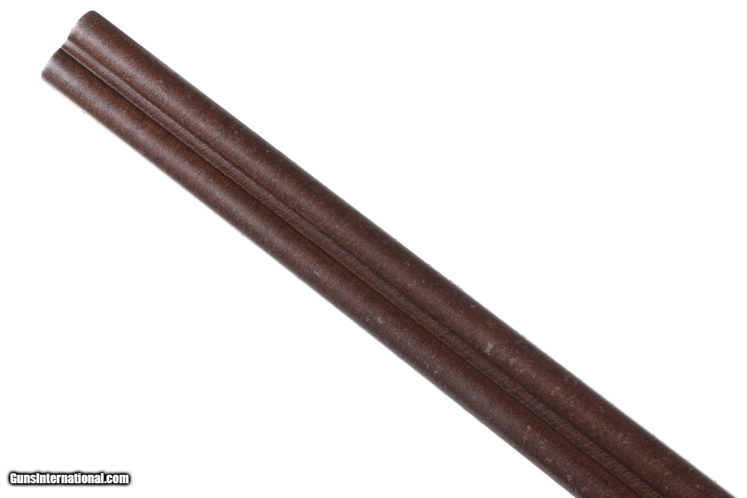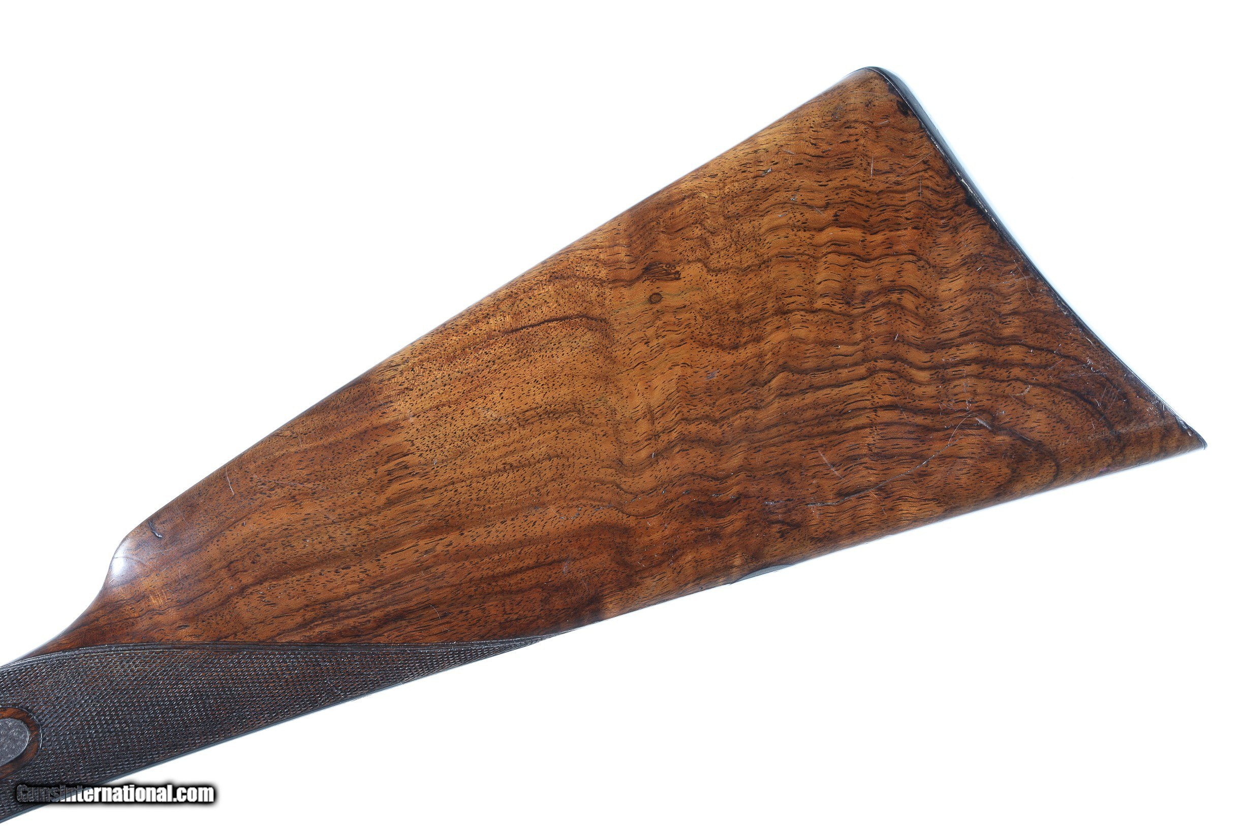 Description: J. Purdey Thumb Lever Hammer Double 12 Ga, with 30" Cylinder & Cylinder choked bores with Birmingham Nitro proofs. Matching numbers found on Locks, receiver Bbl and forearm. Vivid Damascus steel scenes on Bbl. Highly figured oil-finished straight stock with smooth steel butt plate. 14 1/4" LOP 1 3/8" DAC 2 3/4" DAH 6 Lbs 12 oz. Minimal all thickness .023. Condition. Extremely fine as having brilliant bright original bores. Excellent Damascus steel scene. Receiver remains bright with engraving being soft from use. Stocks are excellent with sharp checking and most all finish. Trigger guard and butt plate have most all of their reapplied contemporary blue finish with markings and engraving being soft. Mechanically excellent. A very old repair to stock is visible from the interior only. • Free Shipping, No Credit Card Fees. • Lay-a-way available for this firearm. • 1/3 Down, a 1/3 in 30 Days 1/3 in 60 Days. SOLD Antique: Yes Shotgun Gauge: 12 Gauge Manufacturer: J. Purdey Serial Number: 7195 Barrel Length: 30 |
