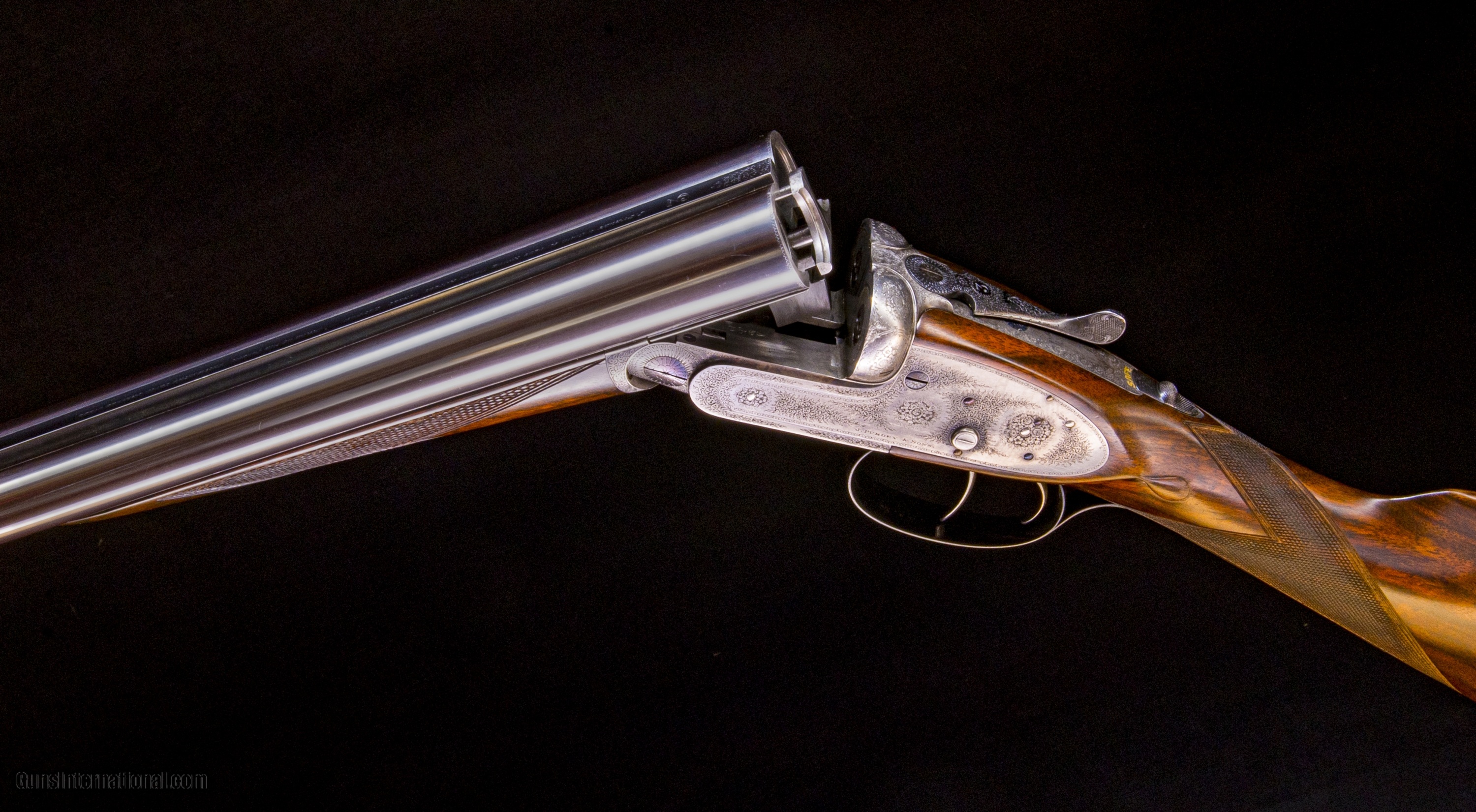 Description: Hammerless Sidelocks - A very nice Purdey built within months of the start of the first world war. Many English men lost their lives in this conflict and all the English gun makers lost many of their best talent. In this case Purdey was at its peak with all its best gunsmiths. This gun is in very nice condition and comes in its makers case. The dimensions are excellent for about 80% of my clients. *This gun balances perfectly on the hinge pin. She comes up extremely natural and without effort. *This Purdey is unique in that it has two major features from the gunmaker James Woodward. The 29"-barrel length which was promoted by Woodward and the patent cocking indicators Woodward is known for. The Ledger says "Boss on tumbler axles – they look like Woodward cocking-indicators." Nick Harlow from Purdey\'s was kind enough to share the following information from the Purdey Ledger: No. 21066 Completed: 22nd February 1915 For: G.J.R. Cooper Description: No. 3 of a trio of hammerless ejector game guns Weight: 6lb. 10 ½oz. Calibre: 12-bore Barrels: 29in. Whitworth Steel Choke: Tight Cyl & Mod Stock: 14 ½in. Notes: Rocker safeties Boss on tumbler axles – they look like Woodward cocking-indicators *** Note: To see this gun with high resolution photos and a zoom-in feature, go to the vintagedoubles main site and search for the gun ID: 5252 or browse the main site to see our full gun collection. |
