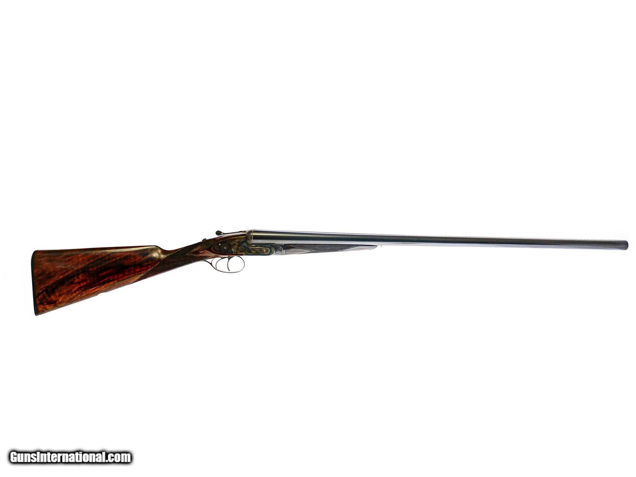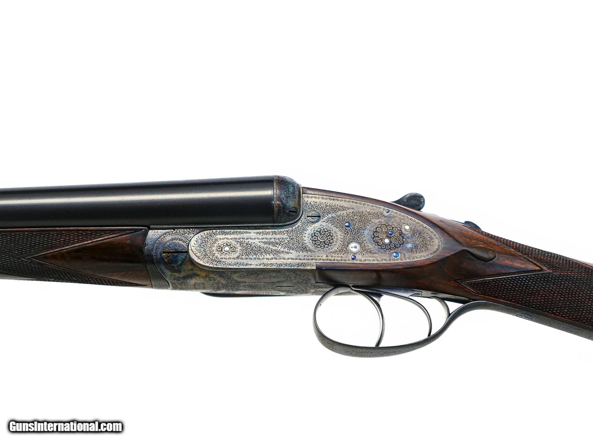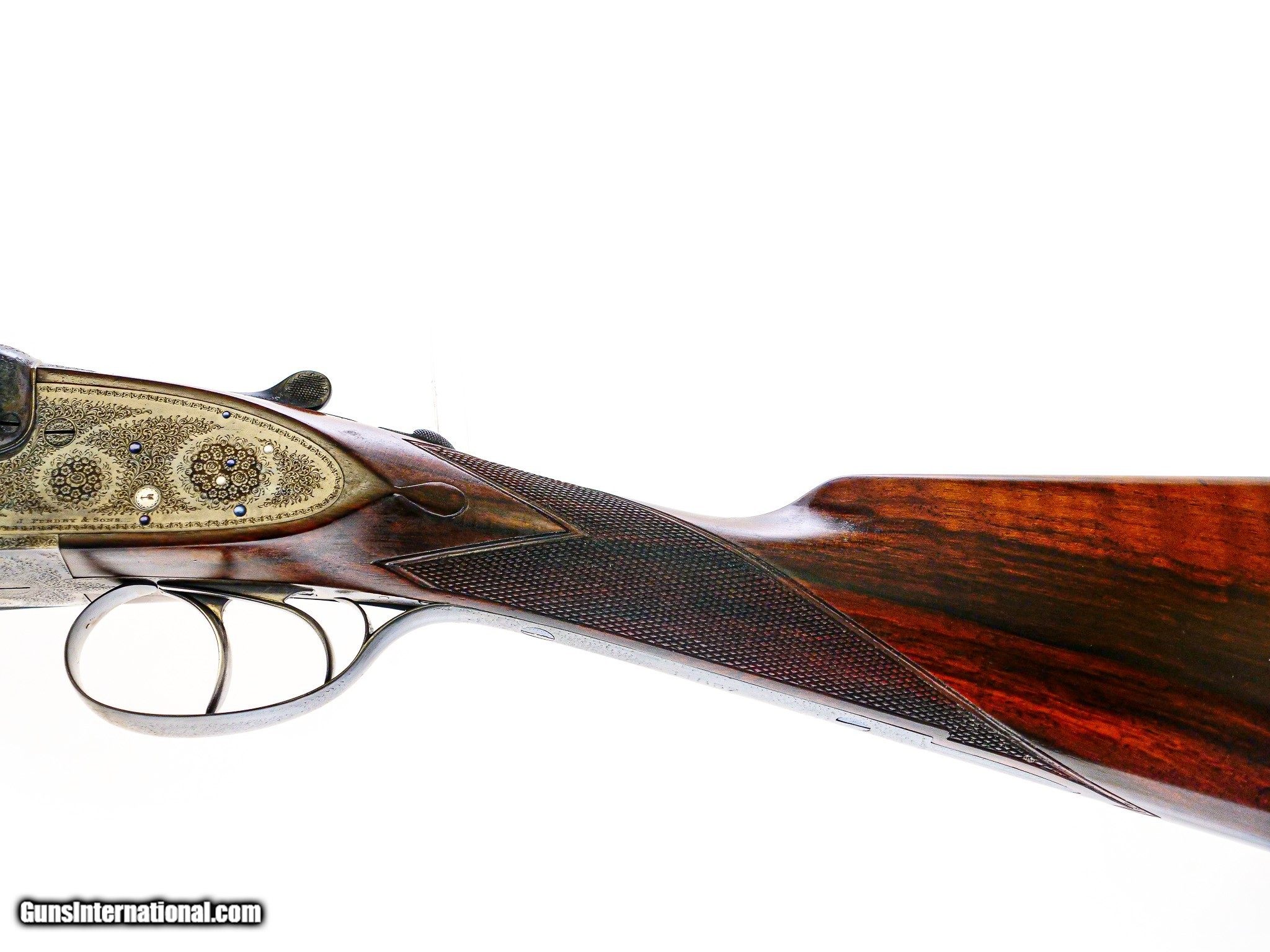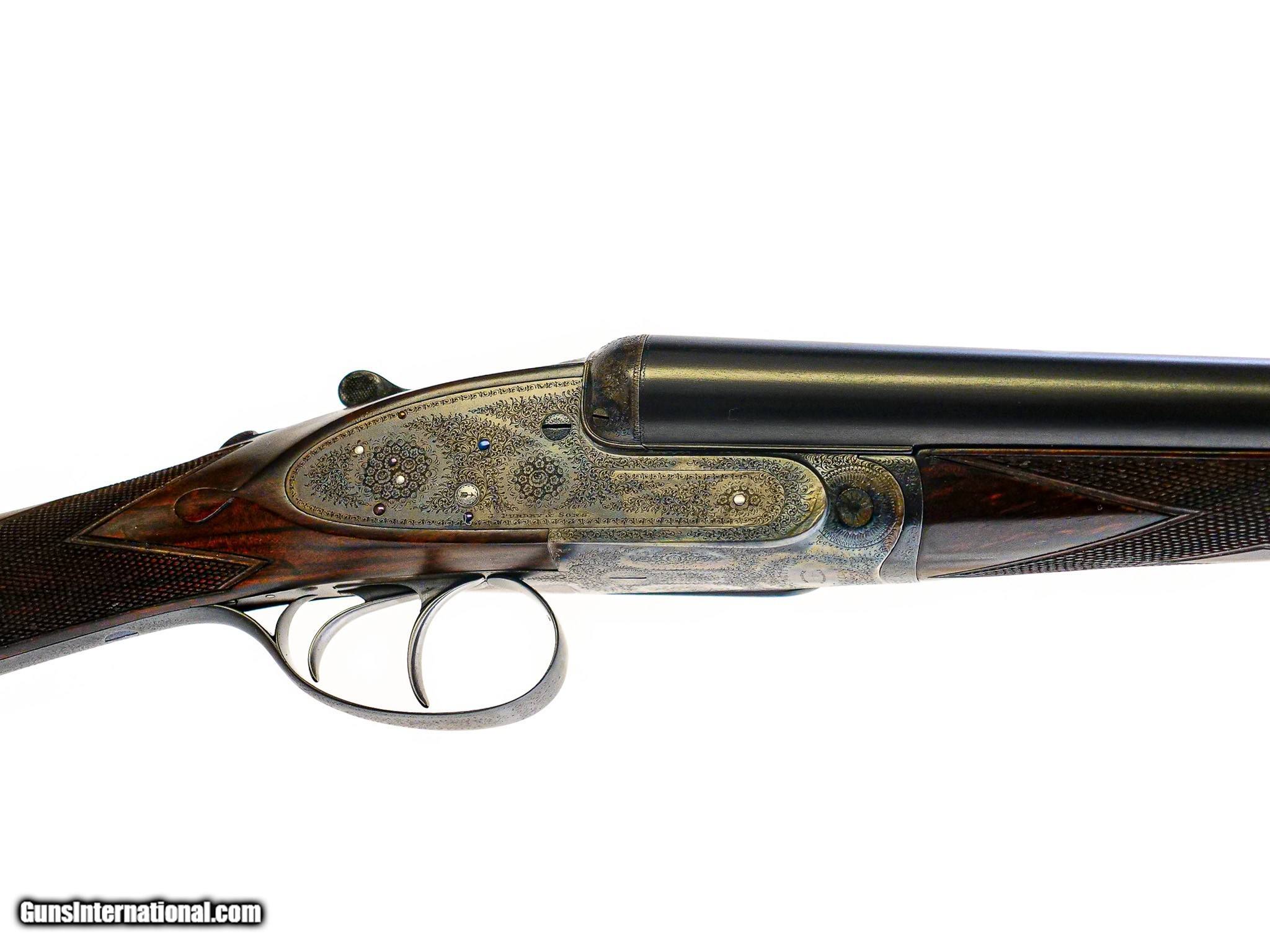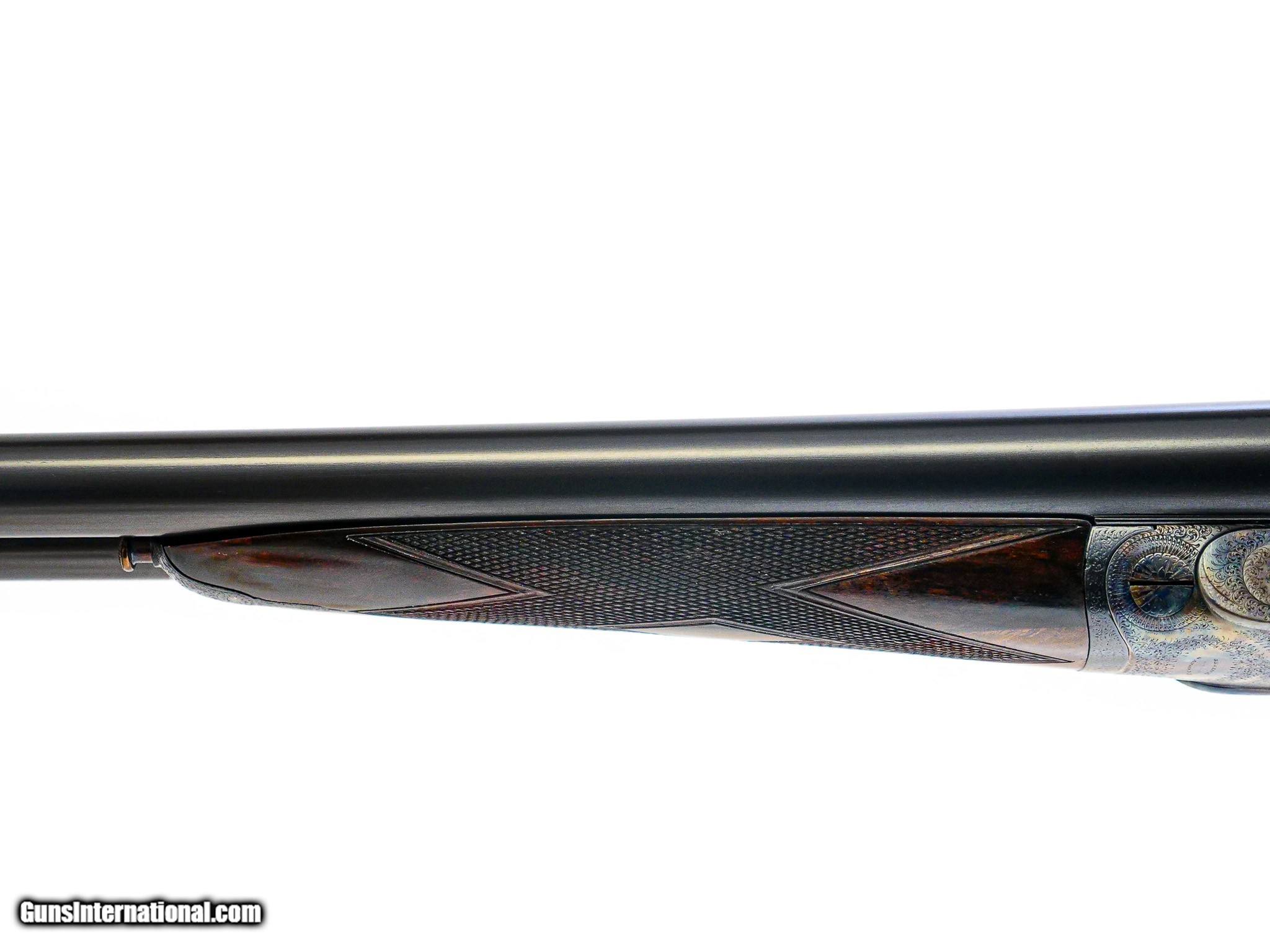 Description: James Purdey & Son - SxS, 12ga. 29 ½” Barrels Choked IC/M. 2 ½” chambers, splinter forend, straight grip, double trigger, auto ejector, self-opener, horn buttplate, magnificent Turkish walnut, drop point stock, 2-point checkering, 100% English case color, barrel blue, and wood finish. Recently went through complete English reconditioning after season of shooting where the owner instructed the workman to redo everything to make the gun as new. Looks and performs as new, it is as tight as the day it was made, 1 1/8oz proof, originally #2 of pair, engraving sharp, clean, and beautiful. Comes in oak and leather case with accessories and Purdey label. There is truly no difference in this gun than a Purdey you would buy today, except the price. Inv: 66622 6 lbs. 11 oz. 14 ½" x 1 3/8" x 2 1/8" $18,995.00 SOLD |