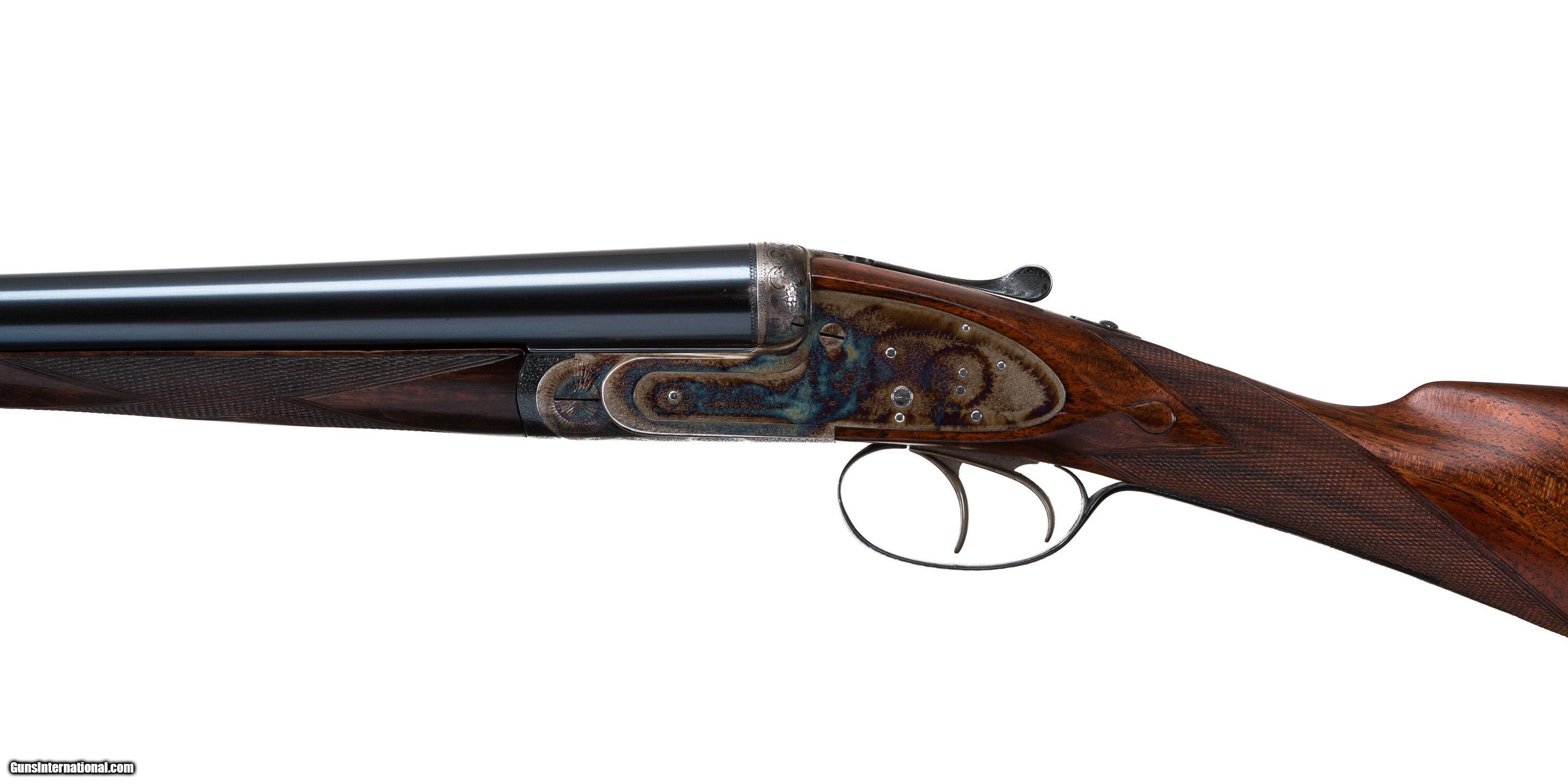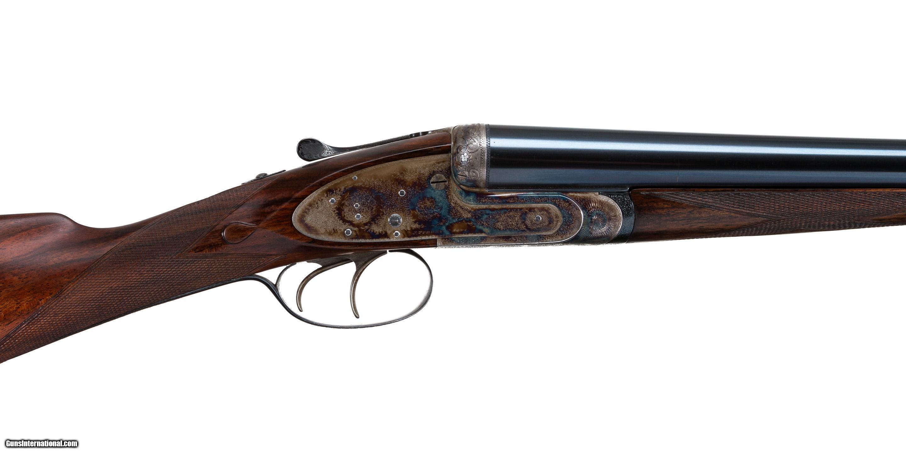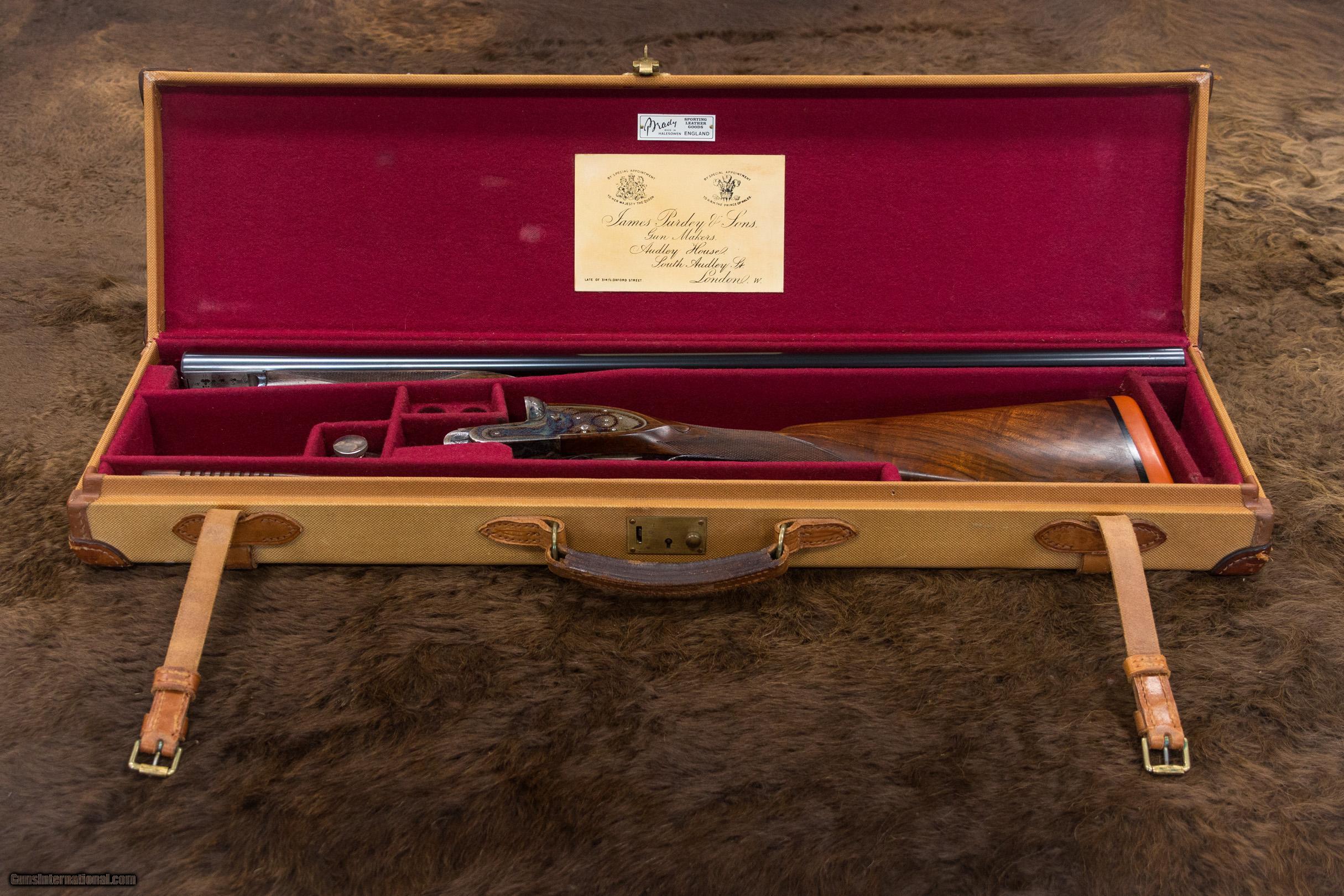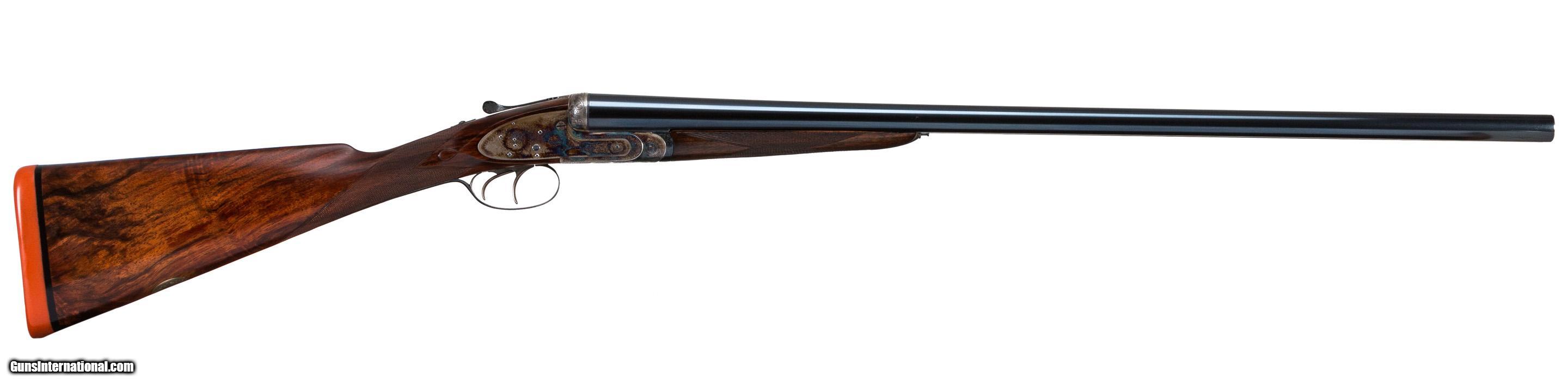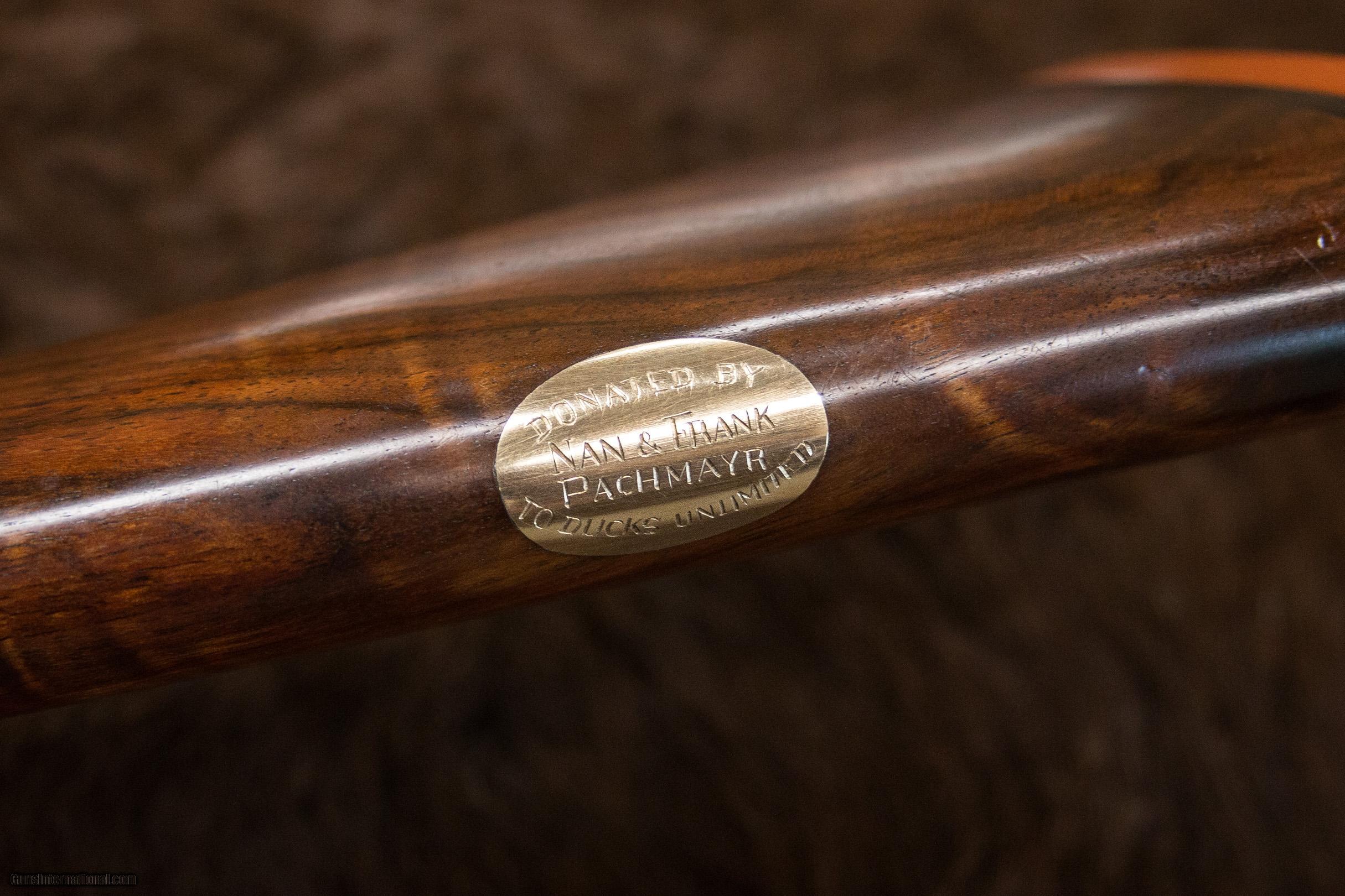 Description: Presented for you today is a beautiful James Purdey & Sons 12 gauge shotgun. Carrying serial number 13636, this antique shotgun was originally manufactured in 1890 and appears to have been completely restored (by a 3rd party). The buttstock features a plate intriguingly engraved with “Donated by Nan & Frank Pachmayr to Ducks Unlimited”. This excellent find includes a lined and canvas-covered case with cleaning rod and accessories. A wonderful acquisition for any upland bird hunter and antique firearm collector. Call (585) 657-6338 for more information or additional photos. SOLD Antique: Yes Manufacturer: James Purdey & Sons Model: 12 Gauge Serial Number: 13636 Chambers: 3 Condition: Restored Metal Condition: Good Wood Condition: Good Bore Condition: Excellent Action: Sidelock Gauge Info: 12 Stock Drop: 14 1/2 Stock Comb: 1 5/8 Stock Heel: 2 1/2 Butt Pad: London Pad Manufacture Date: 1890 Choke Left: IC Choke Right: IC Extras: Cleaning Rod Case: Included Item Location: NY |