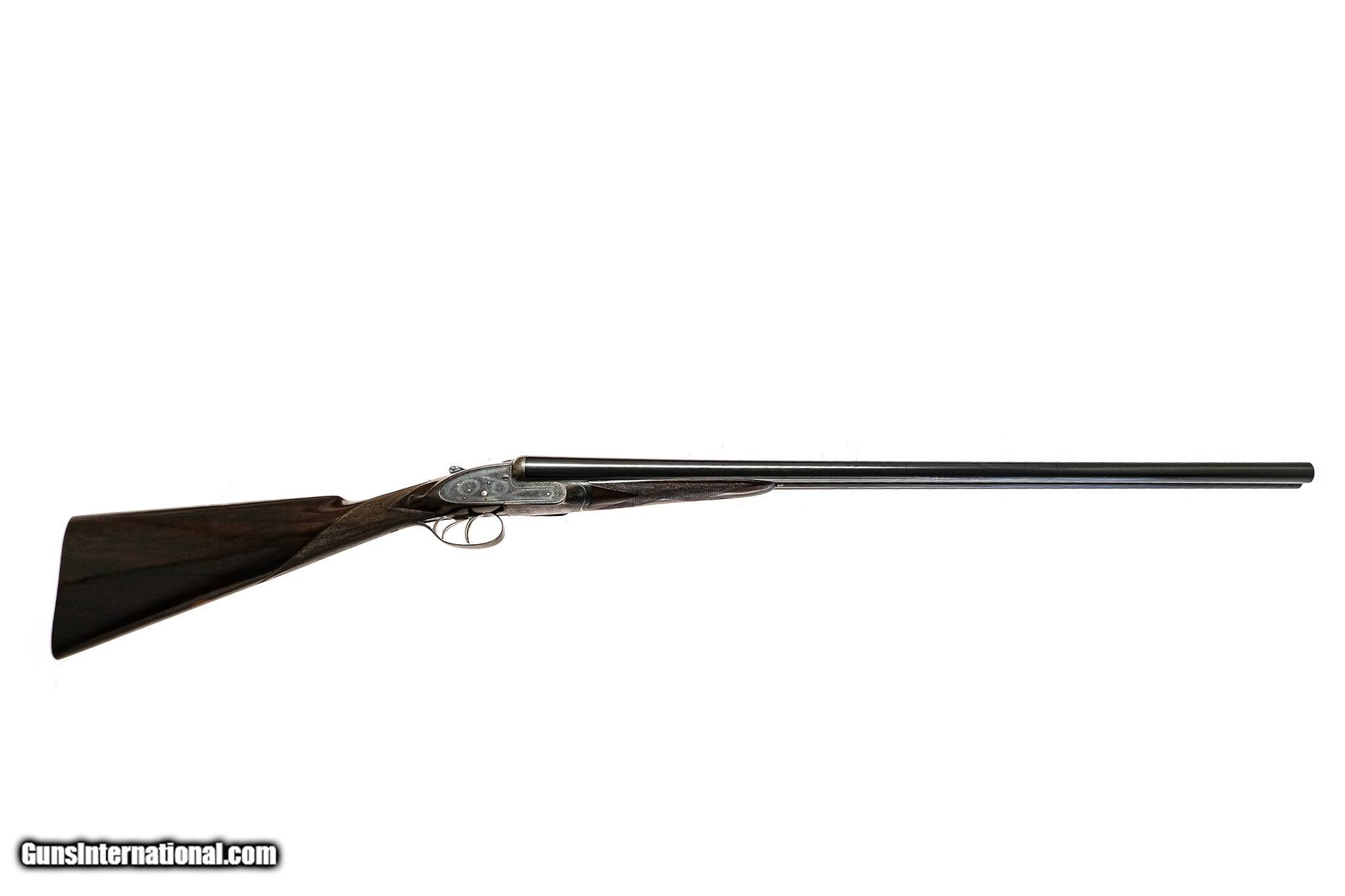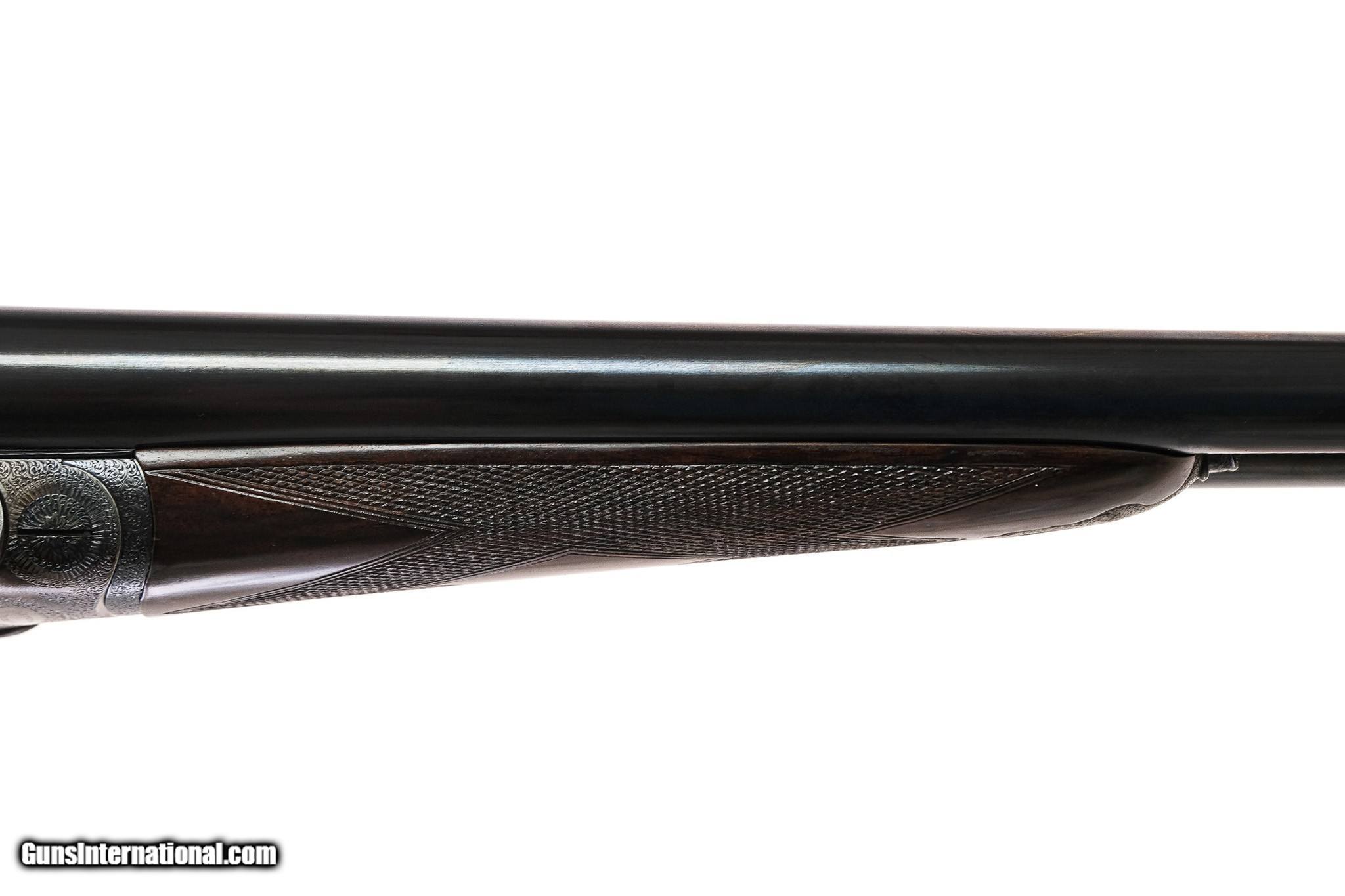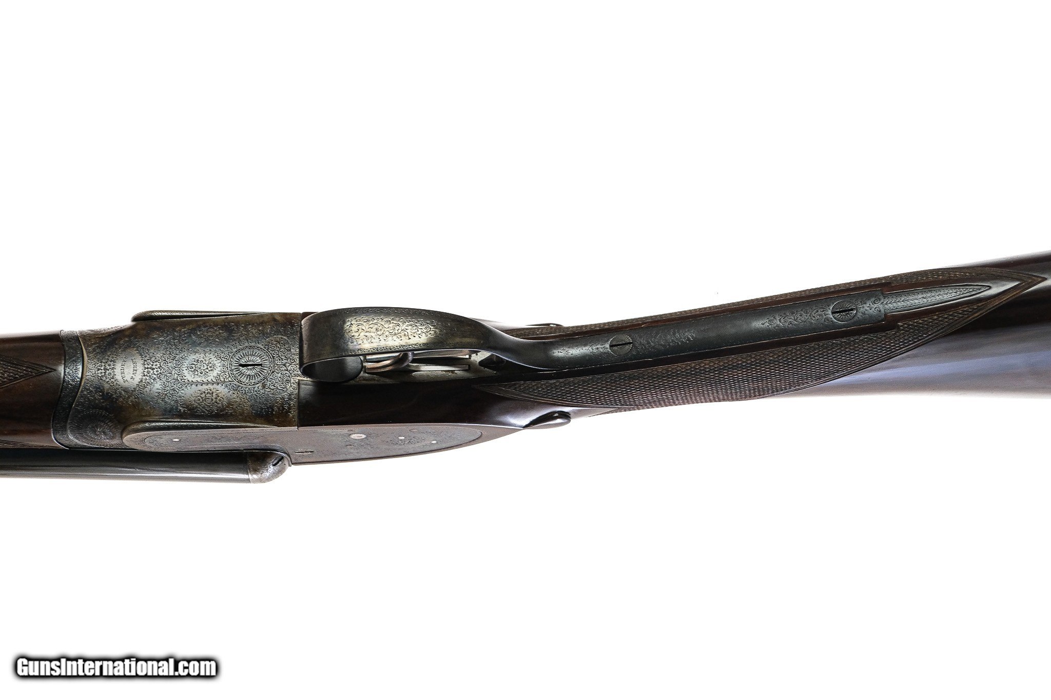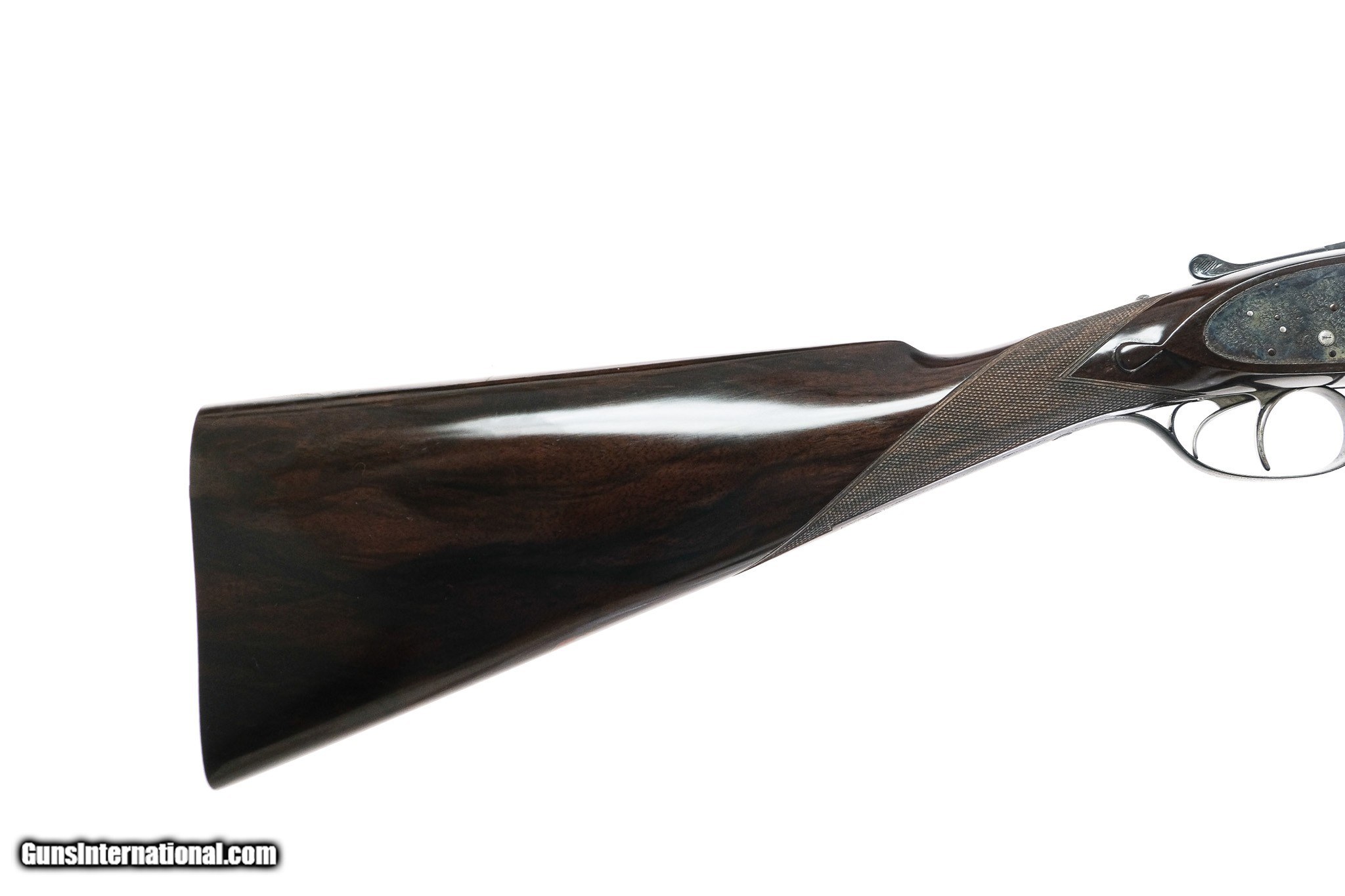 Description: James Purdey & Sons - SxS, 12ga. 30" Barrels Choked CYL/IC. English stock, checkered butt, splinter forend, chopper lump barrels, hidden 3rd fasteners, double triggers, Beesley self-openers, extractor, chopper lump barrels, modern Birmingham CIP proofed, professionally London refinished gun, 100% bluing, case coloring, and wood finish, a sensational gun, available for immediate delivery. Inv: 81751 $12,500.00 SOLD |