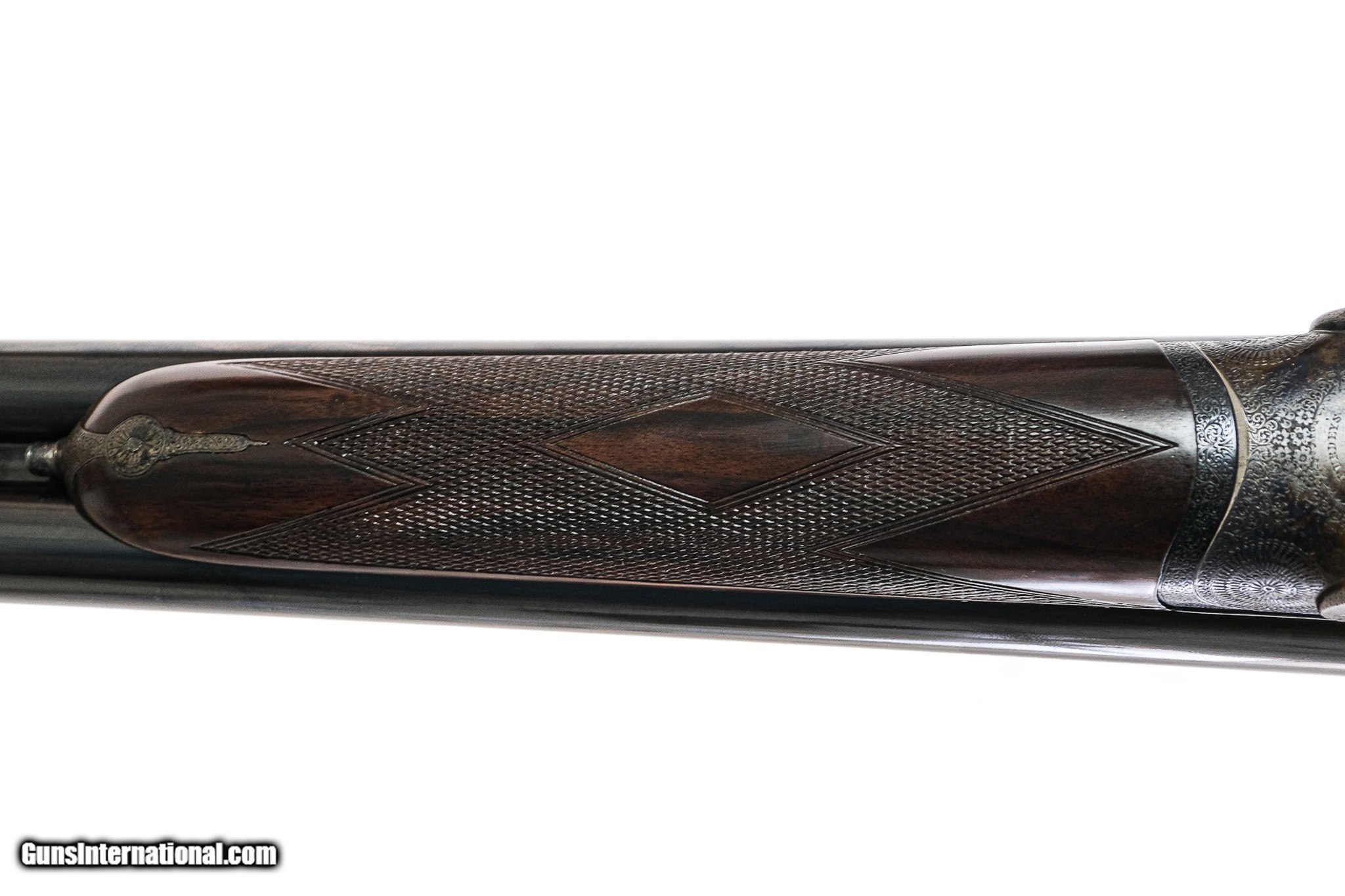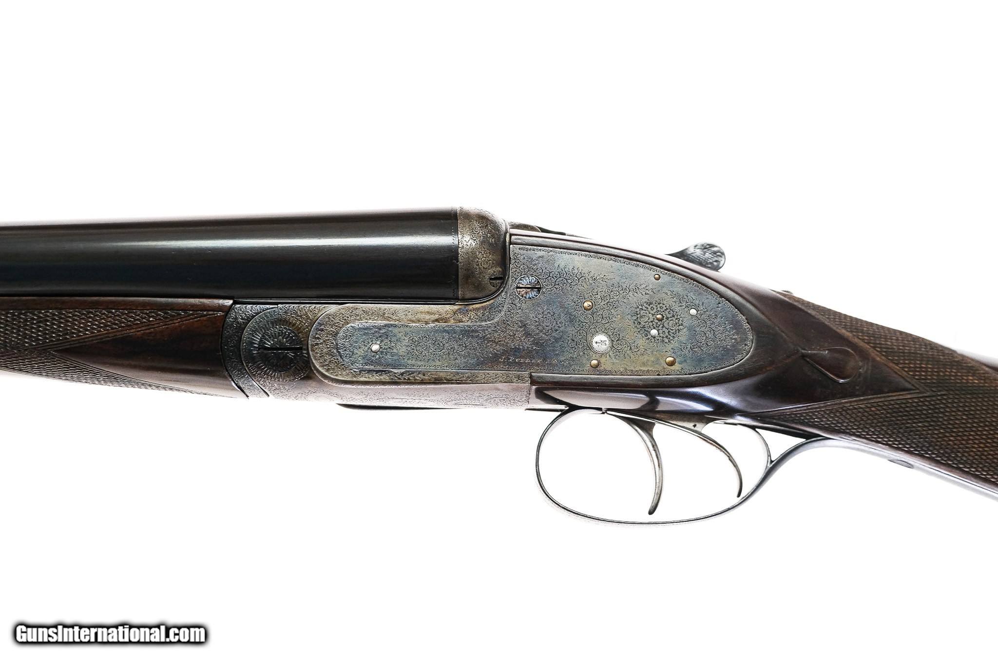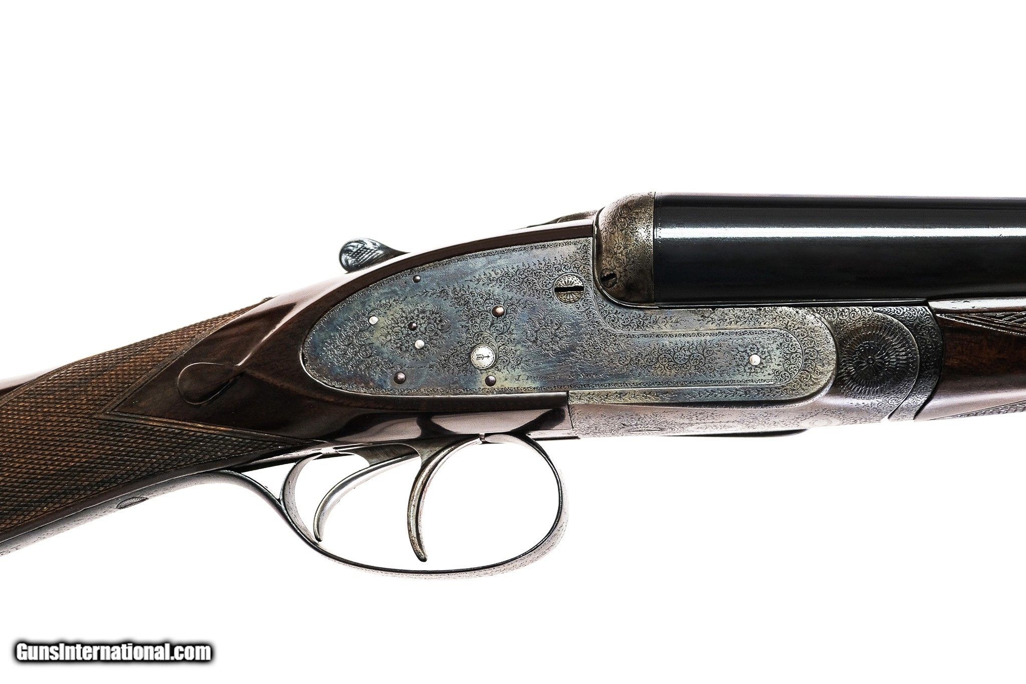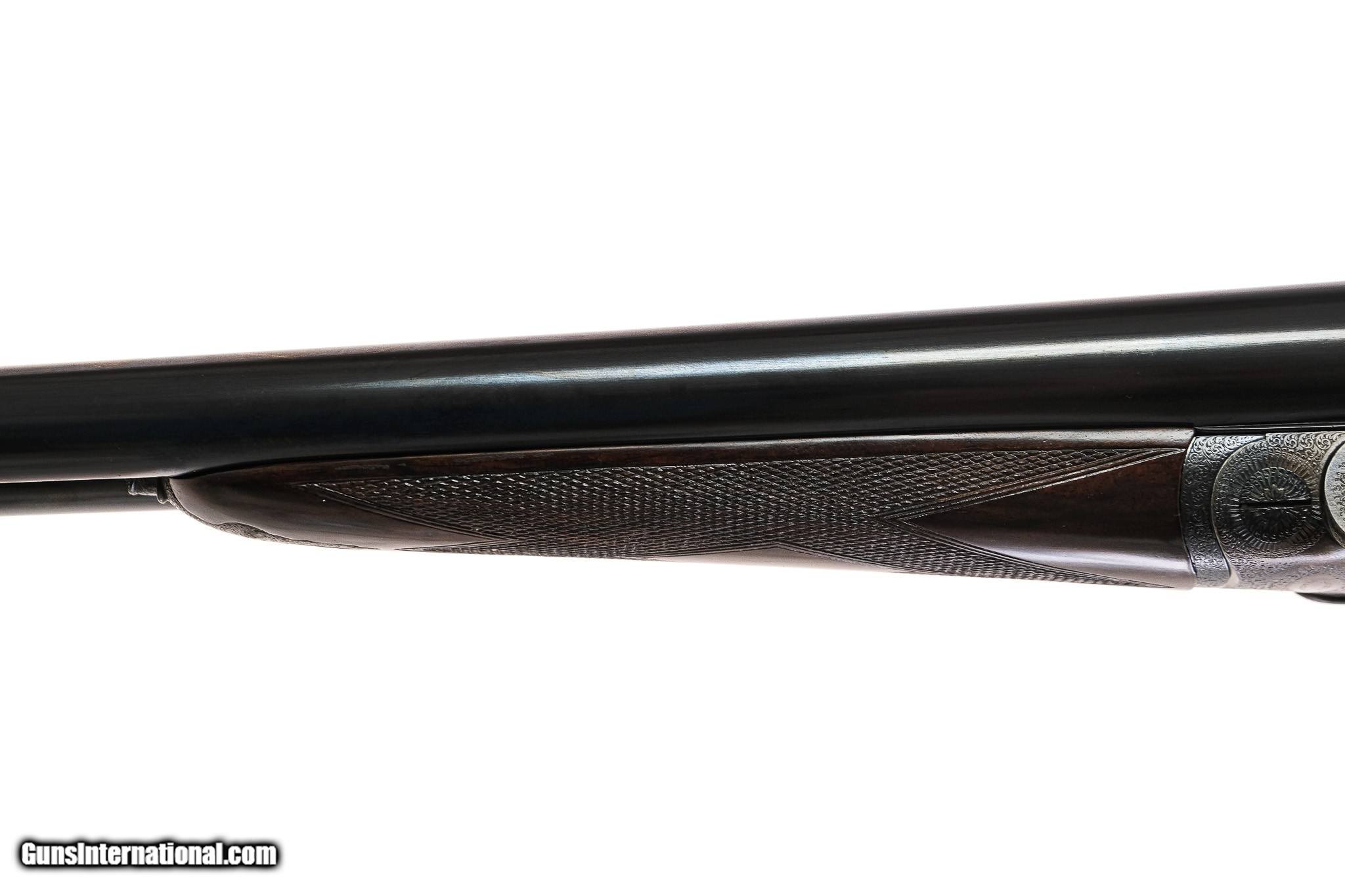Description: James Purdey & Sons - SxS, 12ga. 30" Barrels Choked CYL/IC. English stock, checkered butt, splinter forend, chopper lump barrels, hidden 3rd fasteners, double triggers, Beesley self-openers, extractor, chopper lump barrels, modern Birmingham CIP proofed, professionally London refinished gun, 100% bluing, case coloring, and wood finish, a sensational gun, available for immediate delivery. Inv: 81751 $12,500.00 SOLD |