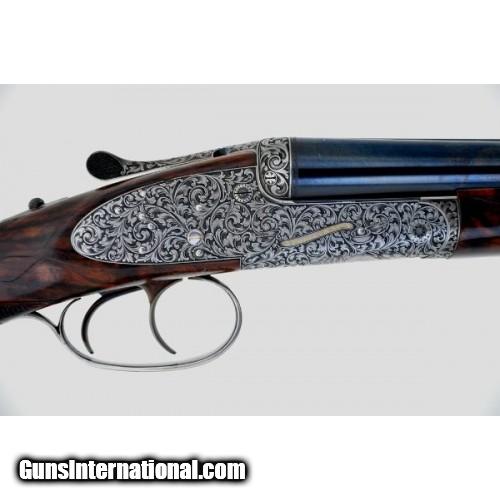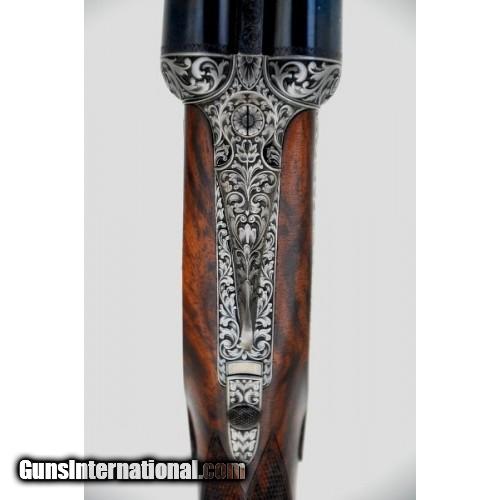 Description: James Purdey & Sons Ultra grade SxS SLE 28ga , Maker: James Purdey & Sons, Model: Ultra Grade, Style: Shotgun, Action: Side by Side Sidelock Ejector, Gauge/Caliber: 28 GA, Engraving: Beatiful scroll with a vignette on the bottom of the receiver of quail in flight this exqusite engraving was done by Cecile Flohimont., Barrel Length: 28, Chambers: 2 3/4, Rib Design: solid smooth concave, Scope/Sights: bead, Weight: 5lbs 6 1/2 ozs., Choke: IC/MOD, Stock: Enlgish staight grip, Drop At Comb: 1 1/2", Drop At Heel: 2 3/16", Length Of Pull: 15 1/2" to front trigger, Case: Makers Leather case with a canvas over cover for the case, Location: Thomasville SOLD |