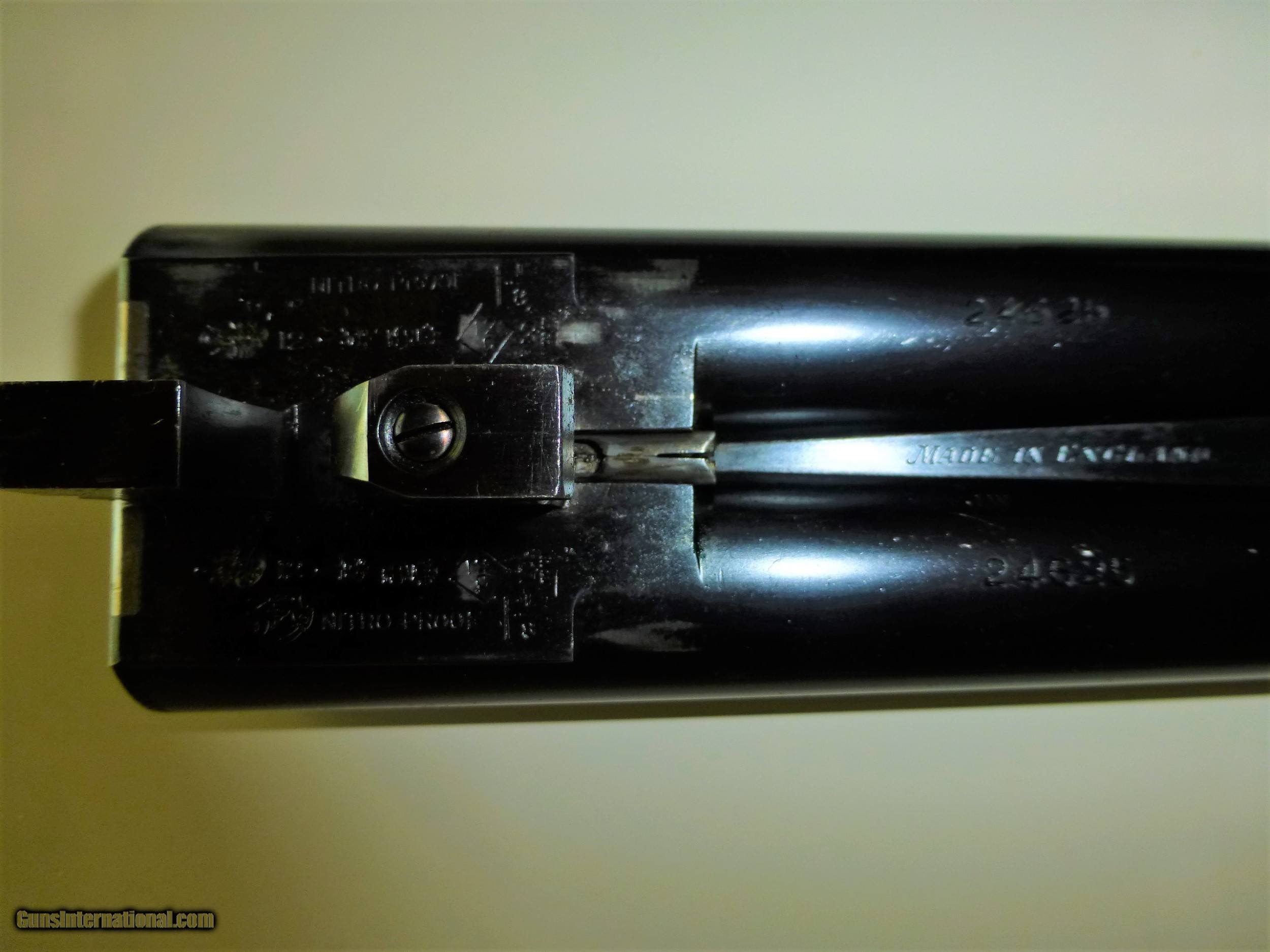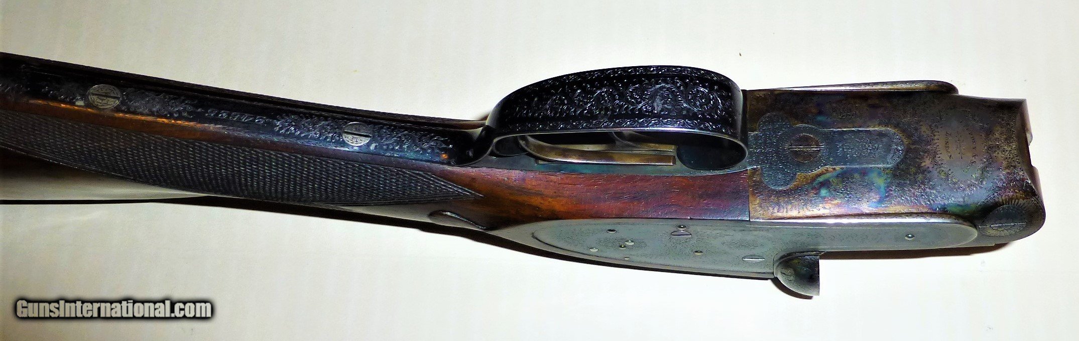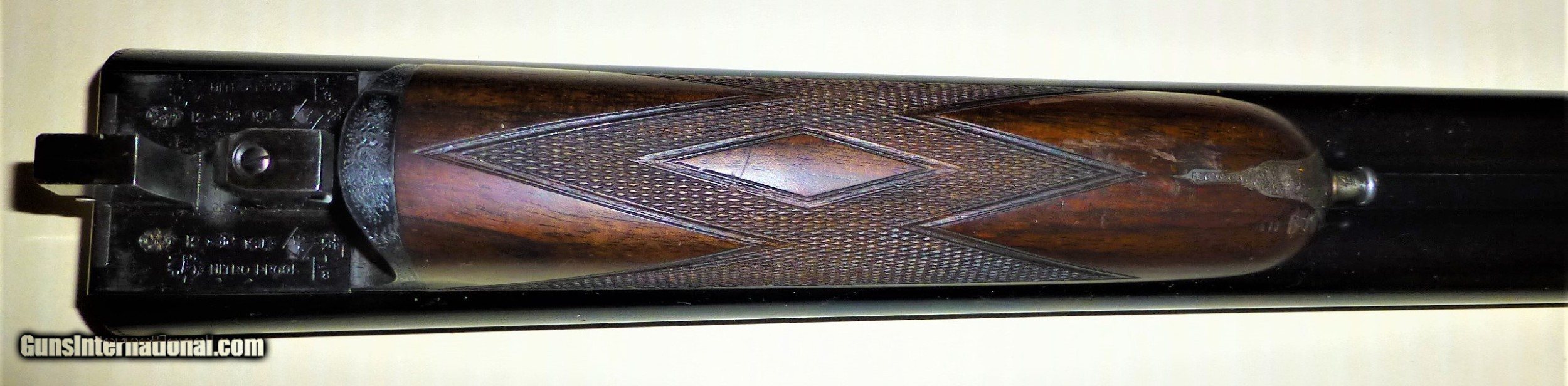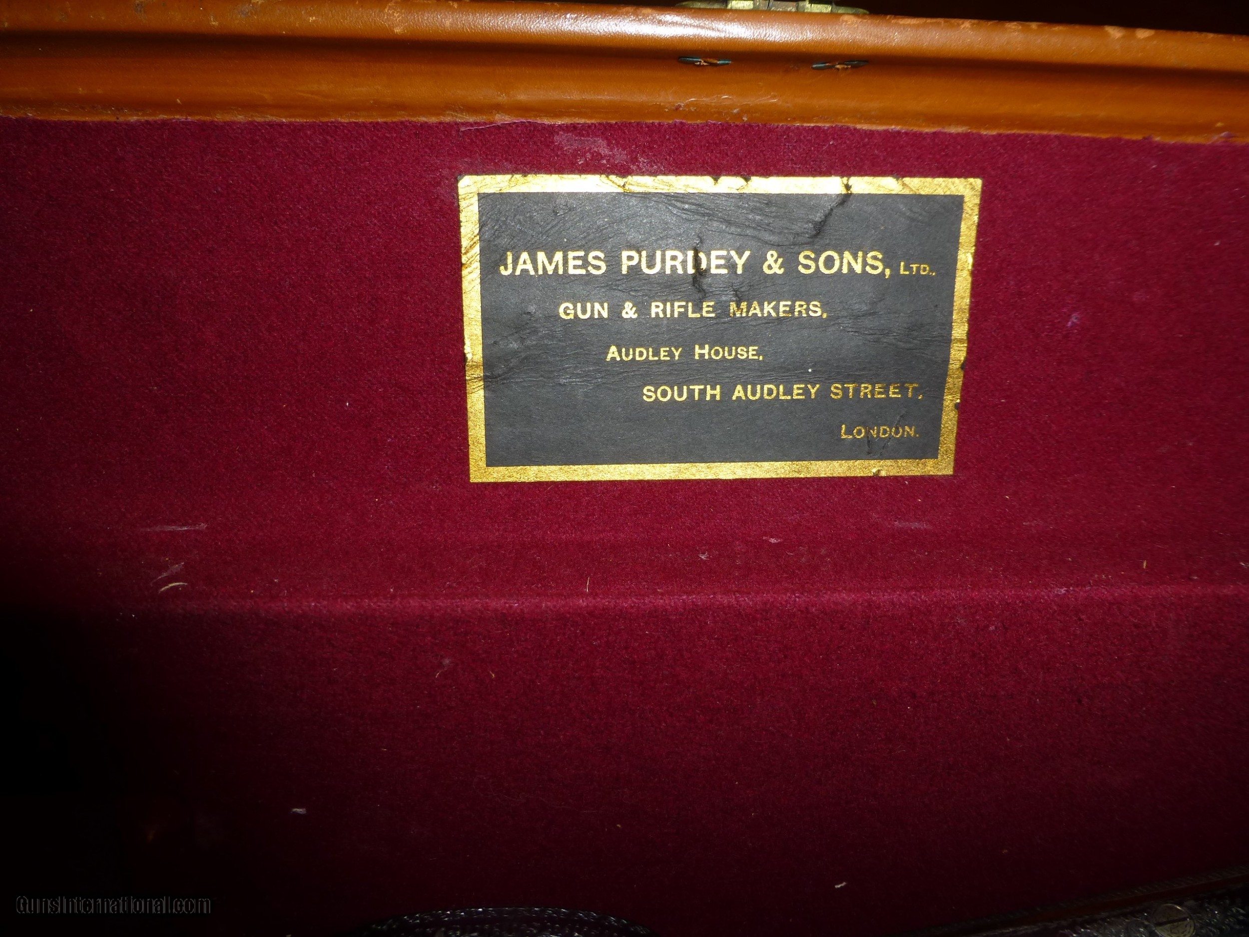 Description: This gun has at least80 percent of its original factory bluing and case color. The bores are mint. It is in its original factory case with all of its accessories in unused condition, including a set of extra firing pins in an ivory bottle. SOLD Curio/Relic: Yes Manufacturer: Purdey Model: Lightweight Serial Number: 24,XXX Bore: 12 Chambers: 2 5/8 Ejectors: yes Condition: Excellent Metal Condition: Excellent/original Wood Condition: Excellent Bore Condition: Excellent Barrels: like new Barrel Type: chopper lump Action: sidelock ejector Triggers: two Stock Comb: 1 1/2 Stock Heel: 2 1/2 Stock Cast: barely perceptible off Fore End: standard Butt Pad: 7/8 LOP: 14 Rib: shallow Finish: blue Weight: 6ibs. Manufacture Date: 1937 Choke Left: cylinder Choke Right: improved cylinder Engraving: standard fine Extras: all factory tools Case: Motor Item Location: Austin, Texas Proof:Nitro: Nitro 1 1/8 oz Minimum Wall Thickness Left: factory original Minimum Wall Thickness Right: factory original |