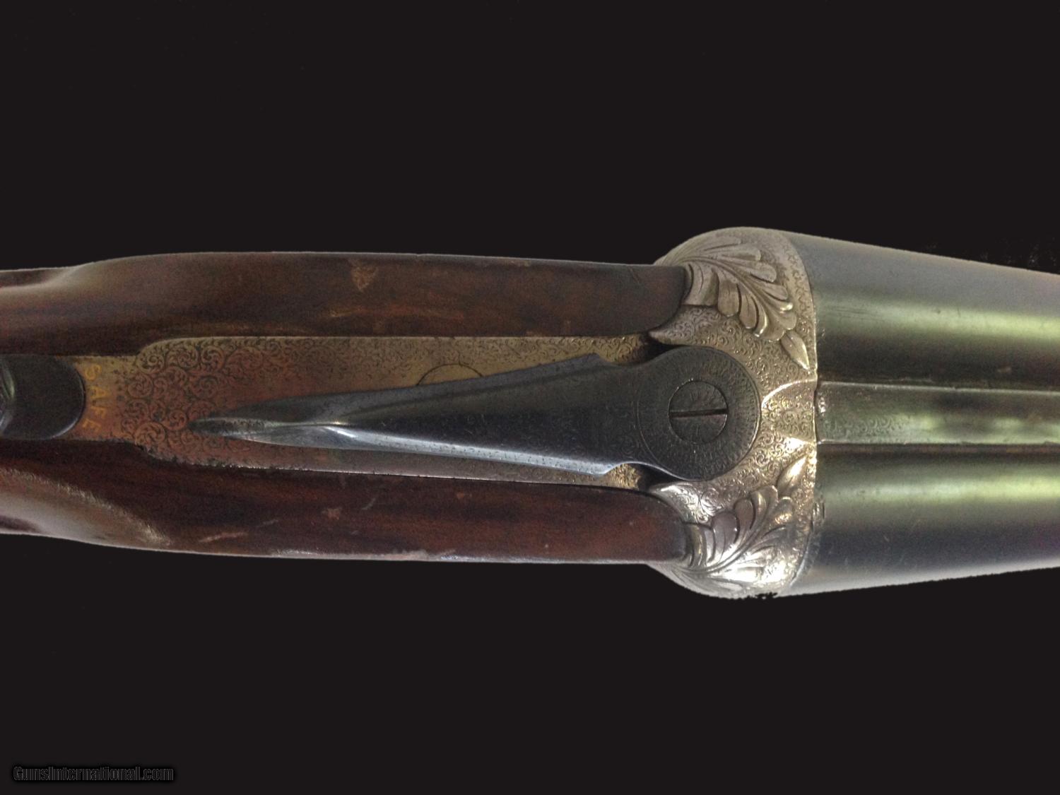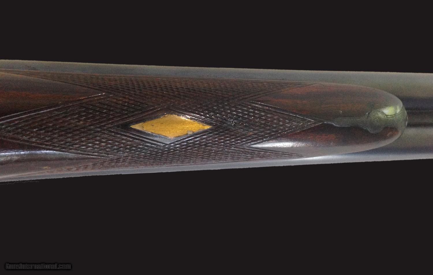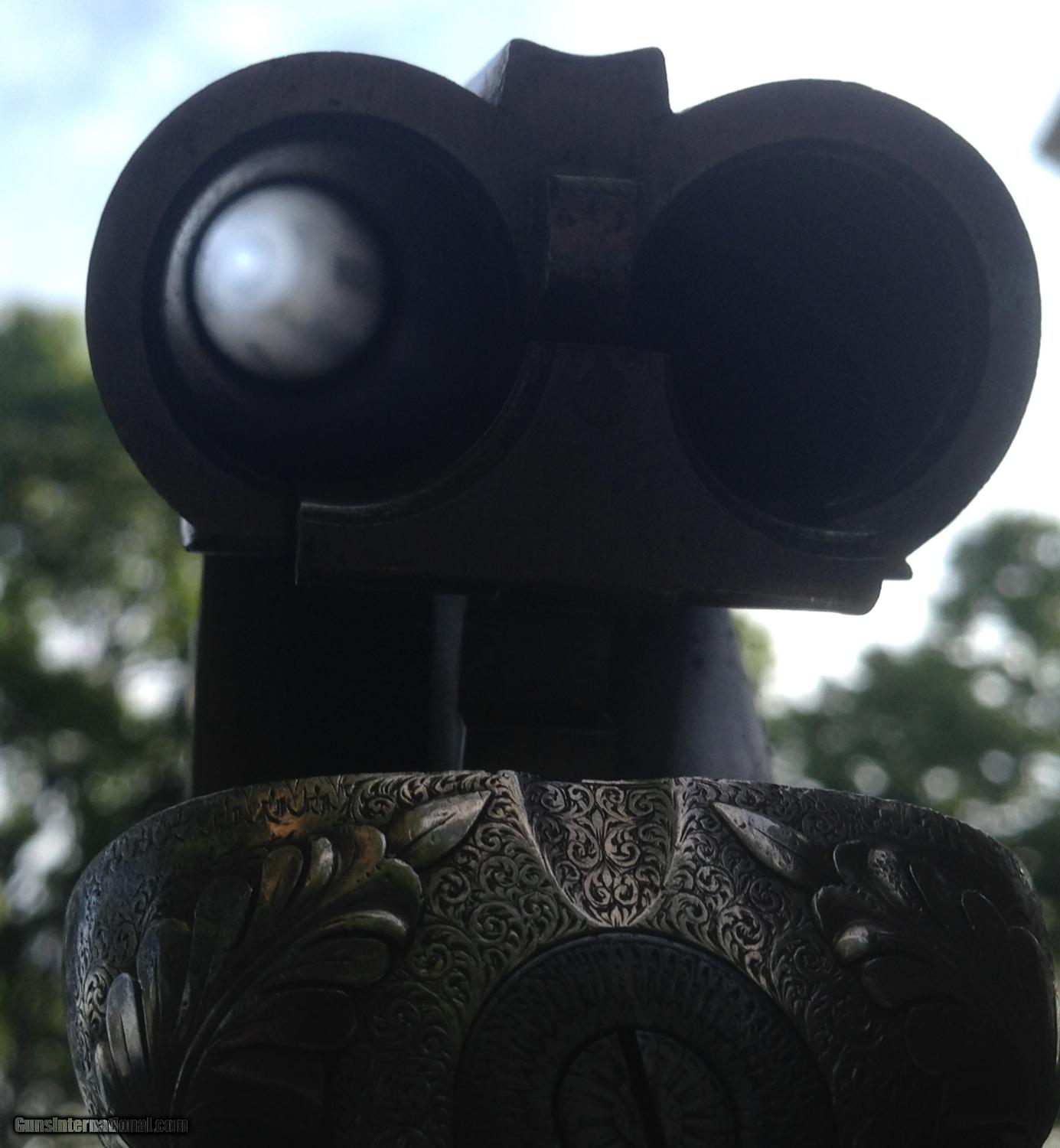 Description: Here is a nice Purdey 16 ga side x side shot gun I bought in Madrid in 2004. The gun was purchased from Fernando Duran (kind of the Sotheby's of Spain). I have spoken with Purdey and verified that the gun in Nitro Proofed and that it was original sold into Italy. It is in the books with Purdey as follows: 16 bore Purdey best quality double barrel hammerless self opening non ejector gun Completed in May 1884 for Duke of Alba (one of the most influential families of Europe, and also Duke of Berwick in UK) 30" barrels made of Whitworth steel. Third grip to action. Original stock length 14 1/16" mid. Original weight of gun 5lb 15 1/2oz. I have to measure the stock. My theory is that this gun was for the Dutchess of Alba, and in the 1930's or 40's someone bought it and restocked it for a man. The stock is actually not bad it just has the most miserable varnish on it. Stripped off and oiled it would be pretty good. The engraving and reciever is in good to VG condition 8.5/10 The barrels were re-blued at some time in the past, I have no idea when but are currently in 7.5/10 condition but show signs of the age in minor dings which the rebluing covered over. The interior barrels have minimal pitting and are in good condition. 7/10 The forearm is original and is in 8.5/10 condition or better. The stock is not original to my eye, my guess is that it was restocked 30-40 years ago as the stock shows age and use and is certainly restorable but it was finished with a varnish not an oil and has to be stripped and refinished. Stock is physically sound 9/10, cosmetically a 4/10 It is light weight and a nice shotgun with good engraving. The issue with the gun is that the previous owner broke the internal hammers - do not ask me how as it seems kind of impossible to me but they did it - they then tried a really poor welding job on them which would make any gun lover cringe. The solution is either a) Get the part from Purdey or b) you can just image the part with a camera and get a replacement made by titanium sintellation (basically 3d printing of metal) which is available online at a cost of about $900, or C) modify other hammers. It is not in this day and age an overly complicated repair but you know life is short and I have no time for another project right now. I am going to offer it and if it doesn't sell I will fix and and then use it or sell it. If you want a good gun at a great price this is it. My take is that the gun is worth about $17,000+ repaired and with the stock cleaned up. I am sure someone will give it a good home and use it for decades to come. It is priced fairly and to sell. If you buy it for the full up price I will throw in an amazing walnut burl stock blank I got for the gun. Its not a "good" blank its an f'ing amazing burl blank worth $1000+ You stick that on this gun and it will be jaw dropping. I would like to see it that way. I am sure you would too. I am not a dealer this came from my personal collection. SOLD Antique: Yes Manufacturer: Purdey Serial Number: 11756 Chambers: 2 Condition: 7.5/10 Metal Condition: 9/10 Wood Condition: see description Bore Condition: 7/10 Barrel Type: smooth Triggers: 2 Gauge Info: 16 Manufacture Date: 1884 Engraving: excellent Item Location: New York Proof:Nitro: Yes Nitro and confirmed by Purdey and documents included |