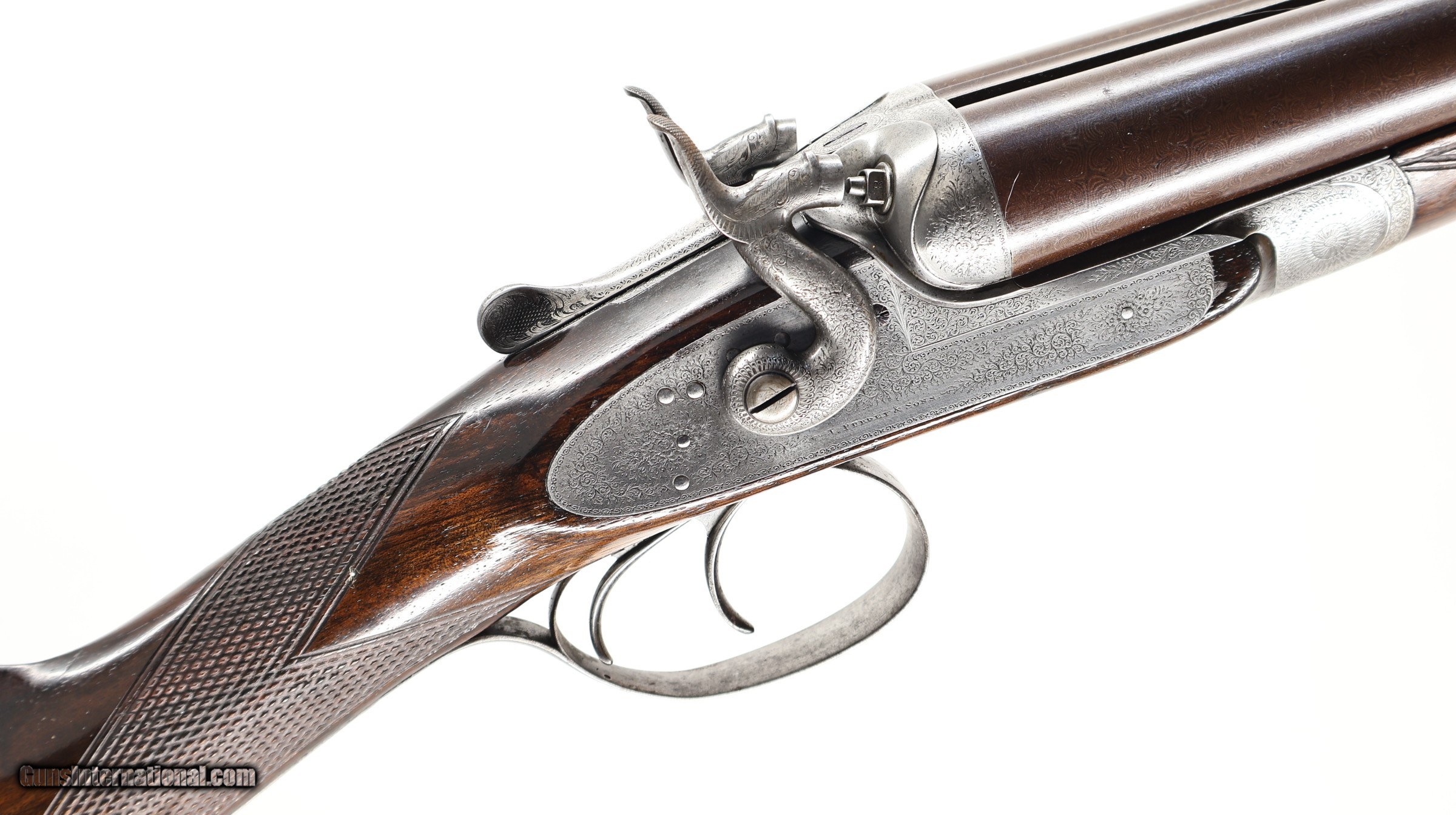 View our full inventory over at FredBakerSporting SOLD Antique: Yes Manufacturer: J. Purdey Model: Bar in Wood Hammer gun Barrel Length: 30 Caliber Info: 12 Ga Chambers: 2.5 Ejectors: Ejectors Barrel Type: Damascus, SXS Action: Black Powder only Hammer Gun Triggers: Double Gauge Info: 12 Ga Stock: Straight English Stock Comb: 1 3/4 Stock Heel: 2 1/2 LOP: 14 1/4 Rib: Solid Weight: 6 lb 8.2 oz Manufacture Date: 1881 Chokes: 002 (Right) and 018 (Left). Case: Loose Item |