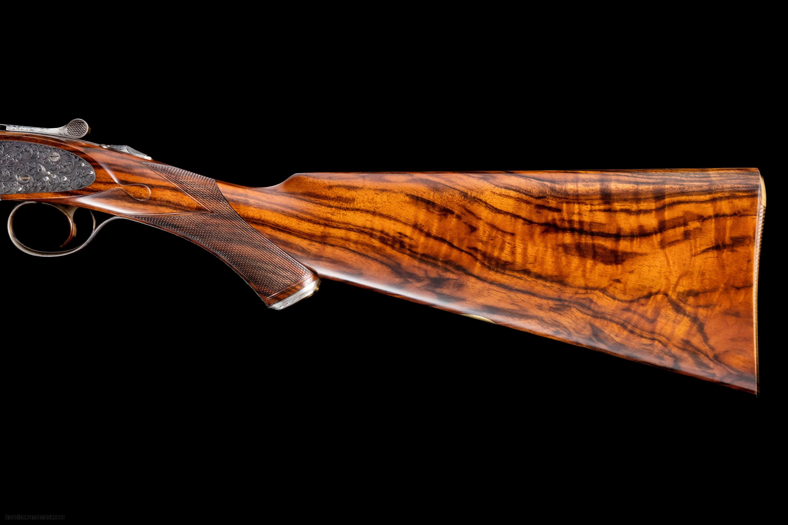 Description: The Purdey family were experimenting with over-and-under designs as far back as 1871, when we created a 16-bore over-and-under percussion rifle for Aga Ali Shah. Although the first Purdey breech-loading action was built in 1923, these were overly reinforced by modern standards, possibly with an eye to the live pigeon market. It wasn’t until 1948, and the purchase of James Woodward & Sons, that the modern Purdey over-and-under came into being. Patented in 1913, the Woodward design was famous for being lightweight and exceptionally robust, and the perfect basis for Purdey to refine. Two Purdey workers, Ernest and Harry Lawrence, worked to modify the Woodward ejector mechanism, redesigning the firing-pins and implementing other improvements which created both the look and design which is at the heart of every Purdey over-and-under built to this day. SOLD Manufacturer: Purdey Model: Best Caliber Info: 410 Barrels: 29 Triggers: Single Gauge Info: 410 Stock: 1 LOP: 15-1/8 Rib: Solid Matted Weight: 11 |