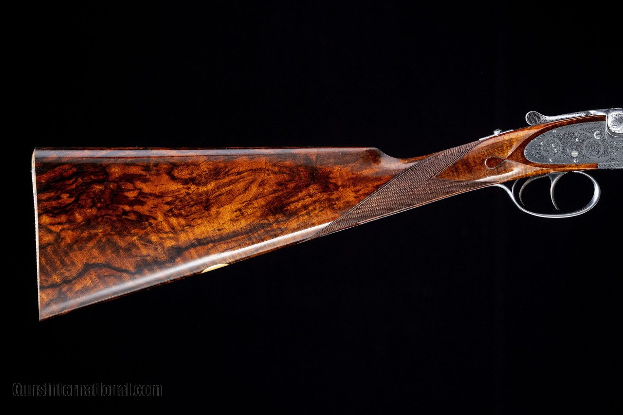 Description: SOLD Manufacturer: James Purdey and Sons Caliber Info: 410 Barrels: 29 Action: Side by Side Triggers: Double Gauge Info: 410 Stock Comb: 1 1/2 Stock Heel: 2 1/4 Stock Cast: Neutral LOP: 15 1/4 Rib: Solid Concaved Weight: 5.05 Chokes: IC/MOD |
