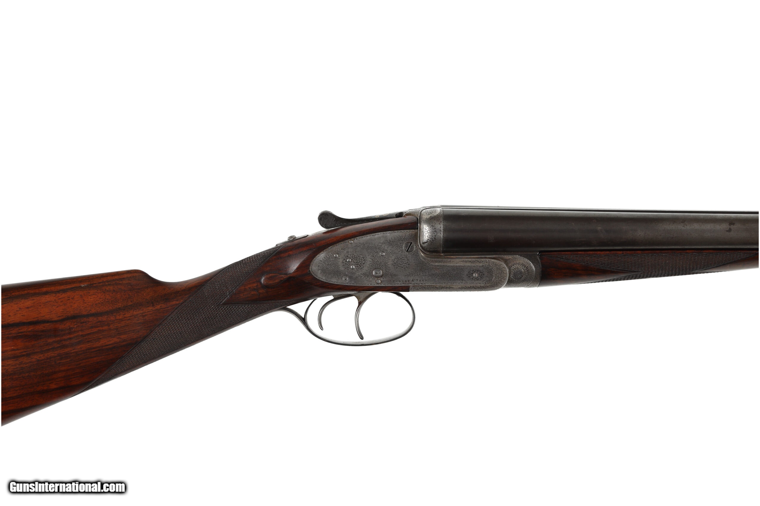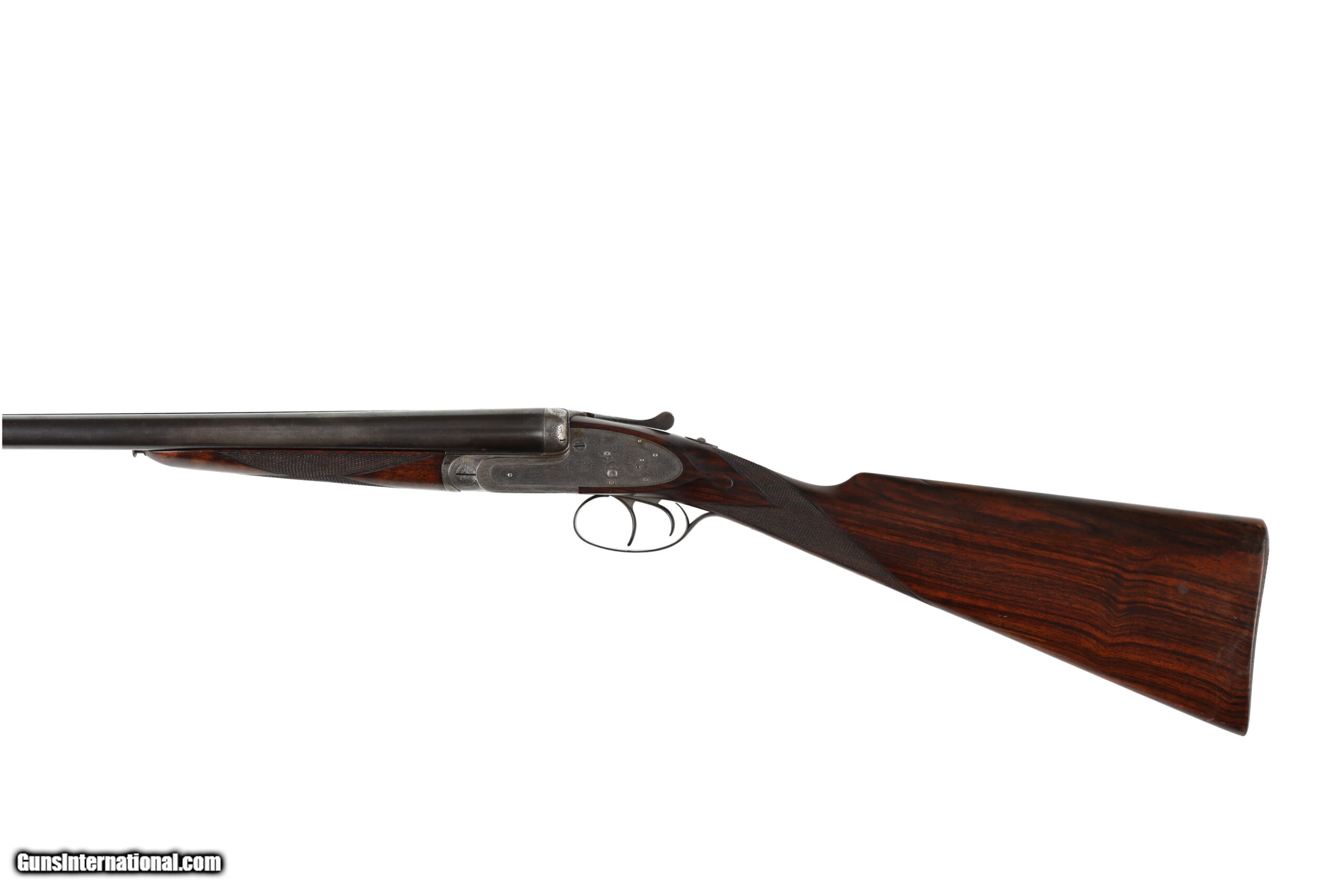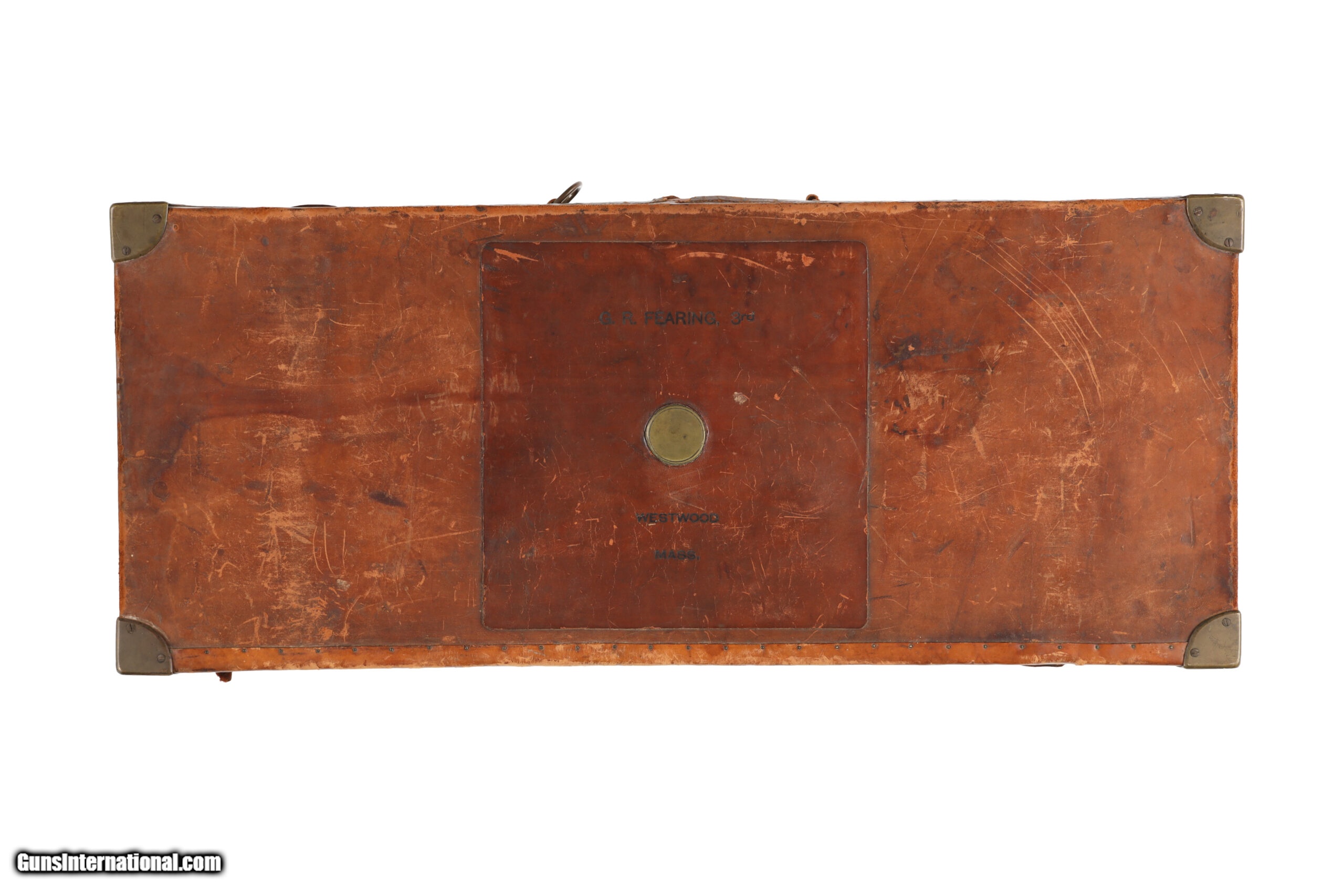 Description: A reunited pair that were completed in 1903 for Colonel George R. Fearing of the Newport Artillery Company. He built "The Orchard" in Newport R.I. The gold inlay on the top levers is also prominent on the front gate pillars. The guns are solid with different LOP. One gun is 14 7/8" and the other is 14". Both guns show moderate signs of use, with wear to the bluing on the barrels and moderate handling marks on the stocks. Gun number 2 of the set also appears to have intermittent ejector issues. Manufactured in: England Hand: Right Hand Action Finish: Case Colored Barrel Length: 29 Inches Barrel Condition: Good Stock Finish: Original Stock Condition: Good Grip: Straight Grip Forend: Checkered Cast Amount: 3/8" SOLD Manufacturer: J. Purdey & Sons Model: Best Sidelock Chambers: 2 5/8 Ejectors: Yes Condition: Preowned Metal Condition: Good Action: Sidelock Triggers: Double Gauge Info: 12 Gauge Stock Comb: 1 5/8 Stock Heel: 2 3/4 Stock Cast: Off Fore End: Checkered LOP: 14 7/8 Rib: Concave Weight: 6.75 Chokes: IC/F Case: Leather Luggage |