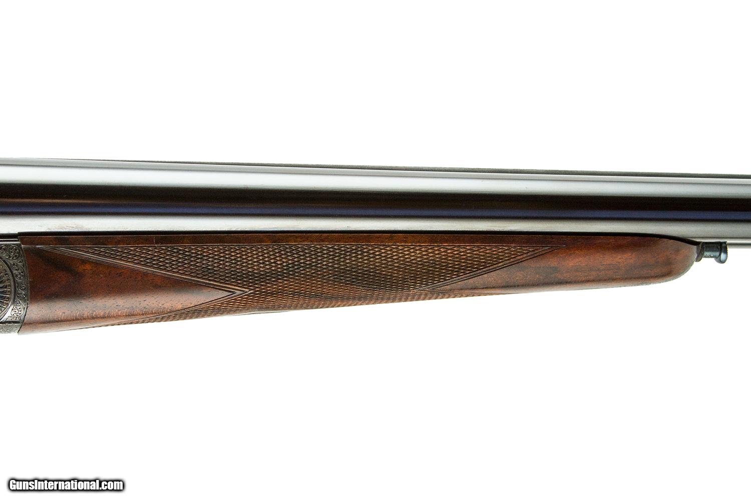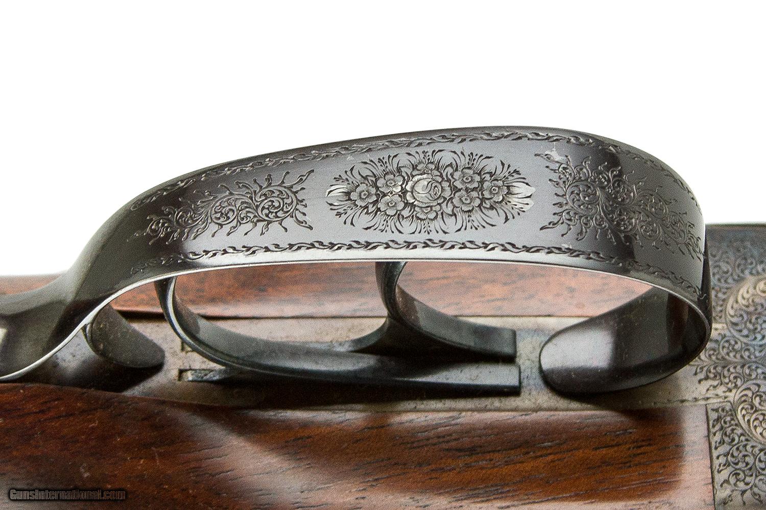 Description: 27" BARRELS (BARREL 1 - SK/IC CHOKED) (BARREL 2 - IC/M CHOKED) - DOUBLE TRIGGERS - AUTOMATIC EJECTORS - TURKISH WALNUT STRAIGHT GRIP STOCK - SPLINTER FOREND - HEEL & TOE PLATES - ROSE & SCROLL ENGRAVING ON CASE COLOR HARDENED FRAME - 2 3/4" PROOFED IN 1988 - STILL IN ORIGINAL SHIPPING PAPER - MOTOR CASE & CANVAS COVER INCLUDED 5 LBS. 13 OZ. 14 7/8" X 1 3/8" X 1 7/8 SOLD |
