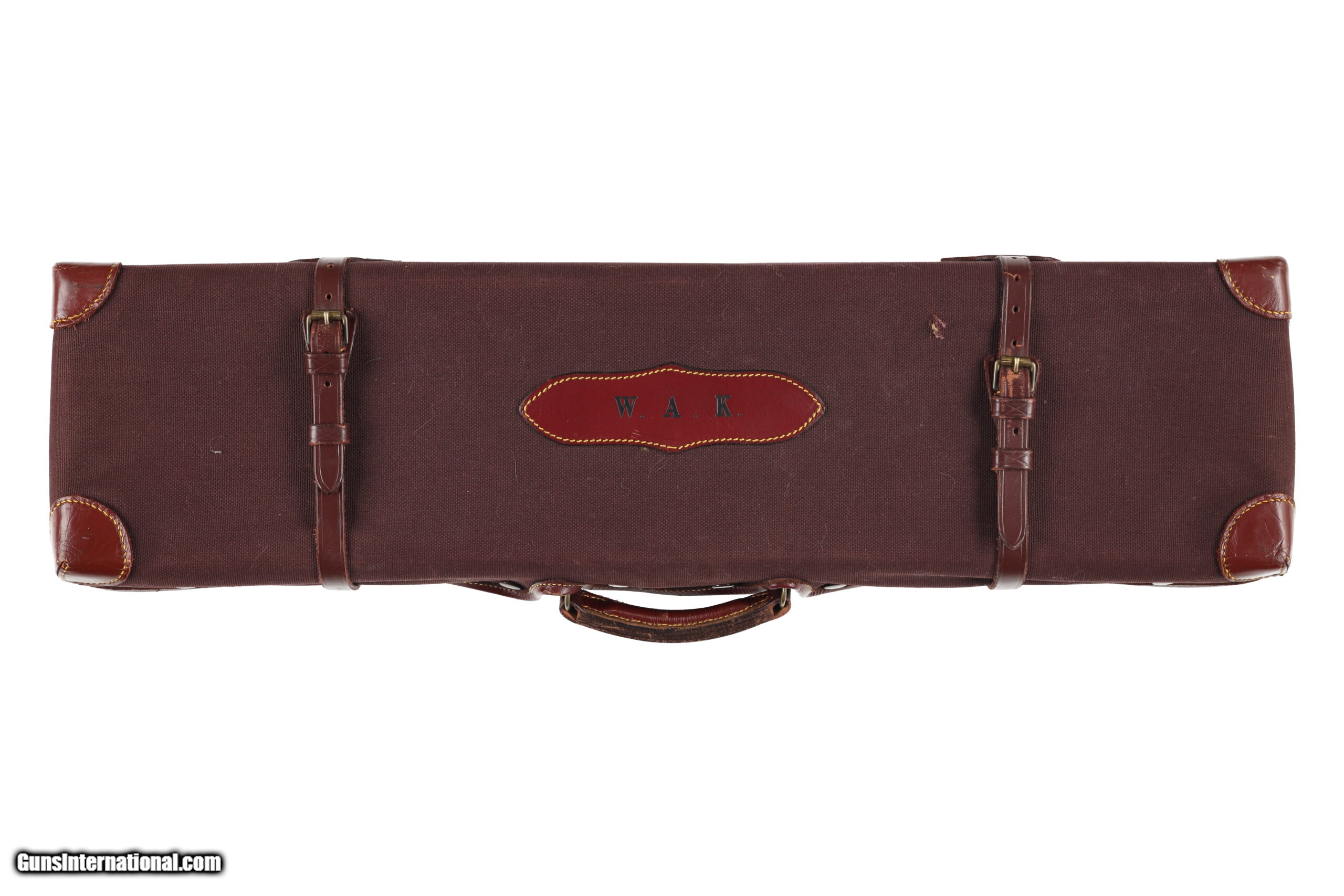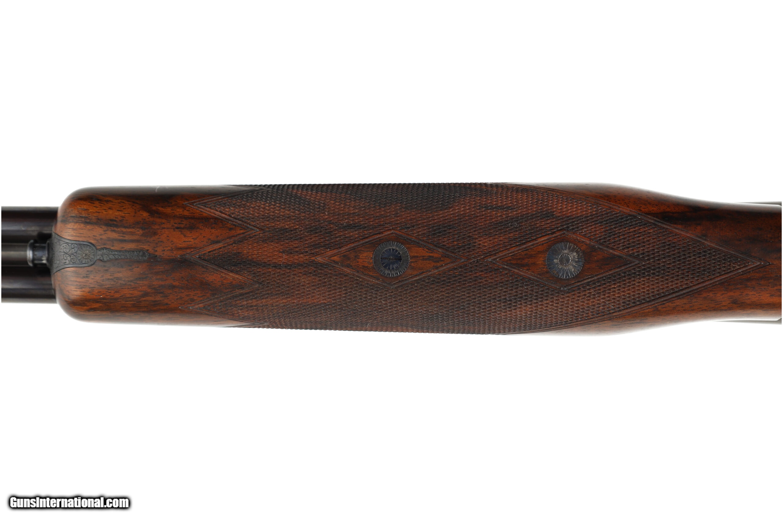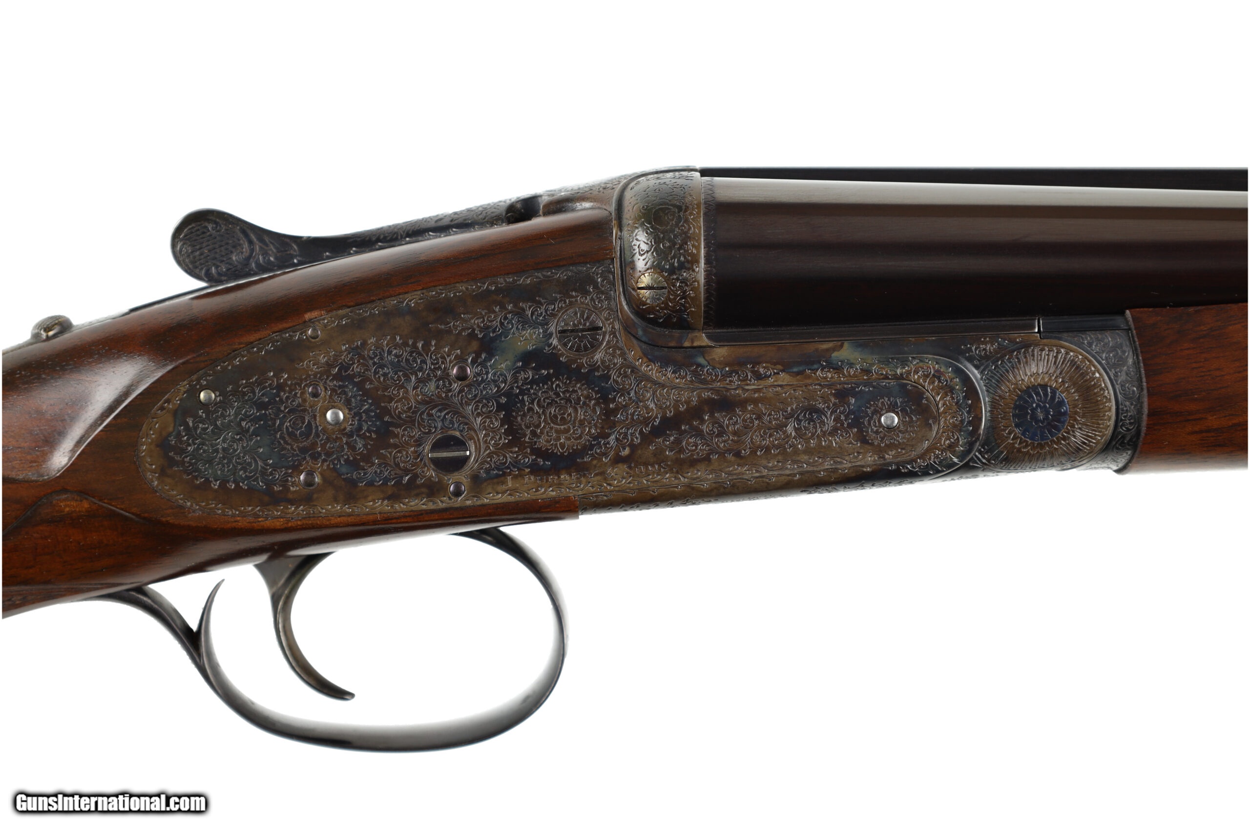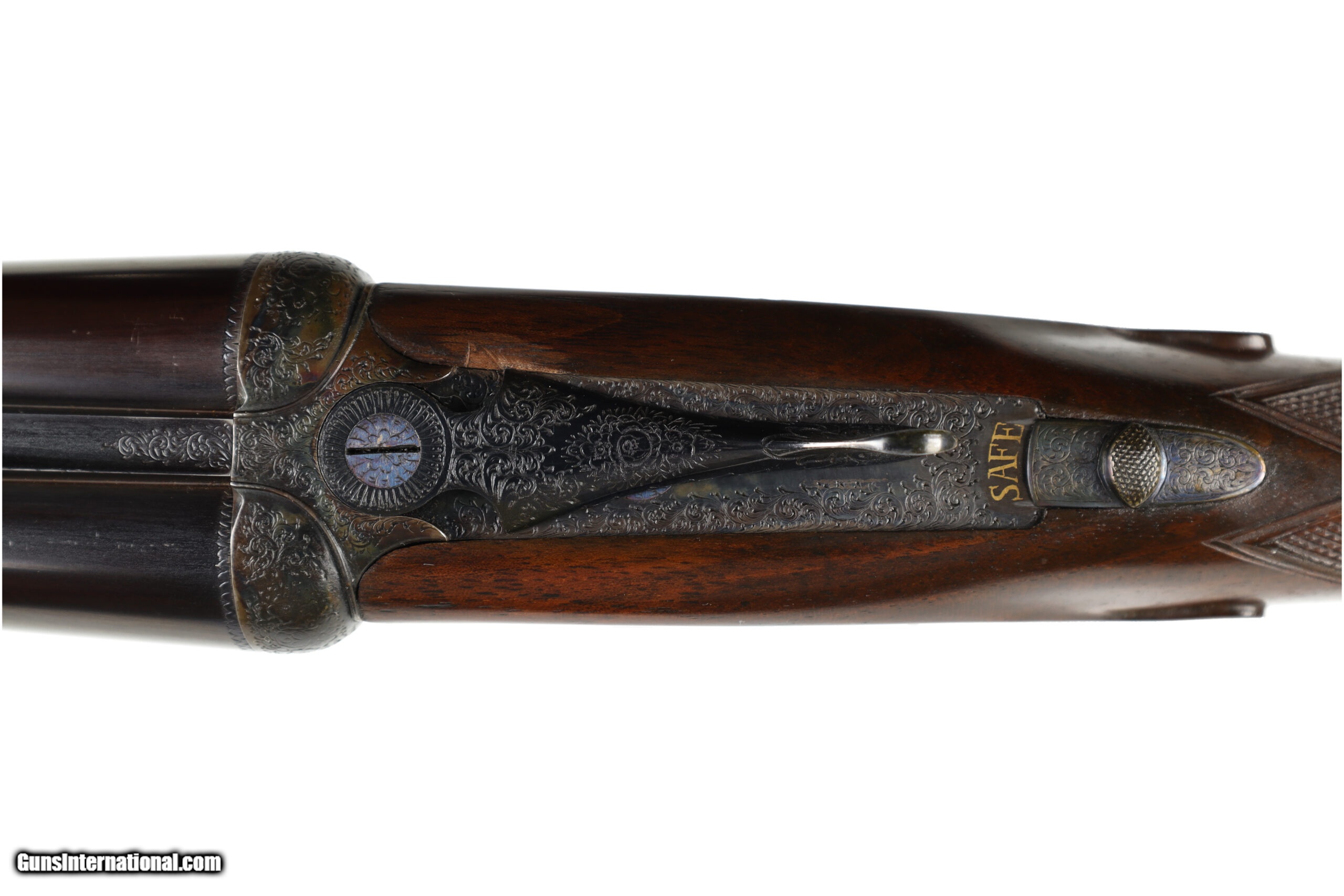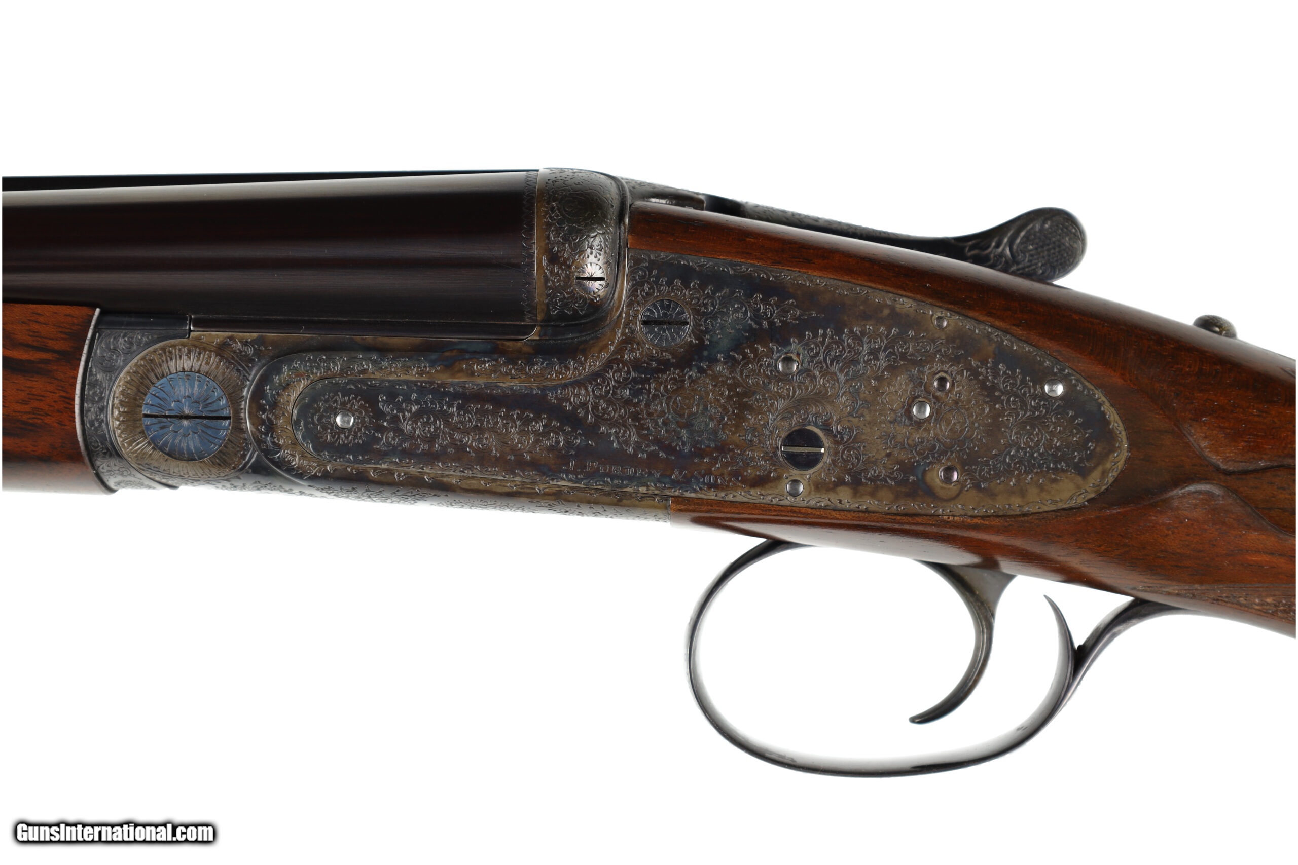 Description: This Beautiful Purdey .410 Gauge shotgun, completed in 1981, is a magnificent showing of English gunmaking. The stocks, made of beautiful but subdued walnut, are crafted into a svelte pistol grip buttstock with blued grip cap and wrap around checkering, measuring to a 15 3/8" length of pull, and the forend shaped into a finely checkered beavertail to protect the hand from the heat of shooting. The action sitting within these stocks is the typical Purdey self opening design, with their distinct rose and scroll engraving under bold color case hardening, accented by the addition of gold inlaid into the safe marking. This piece of functional art is finished by the flawlessly blued 28" tubes of the .410 Gauge barrel which are choked to Mod and Full for the greatest effect while in the hands of a skilled hunter. The original stock, made to a 15 7/16" length of pull, with a 1 5/8" bend at the heel and a leather covered recoil pad is also supplied. Manufactured in: England Hand: Right Hand Action Finish: Case Colored Action Description: Side by Side Metal Finish: Original Barrel Length: 28 Inches Barrel Condition: Excellent Stock Finish: Original Stock Condition: Excellent Type of Butt: Checkered Wood Grip: Pistol Forend: Checkered Beavertail Cast Amount: 1/4" Extra Barrels: No. SOLD Manufacturer: J. Purdey & Sons Model: Best Quality Sidelock Chambers: 3 Inches Ejectors: Yes Condition: Preowned Metal Condition: Excellent Action: Side by Side Triggers: Single Gauge Info: 410 Gauge Stock Comb: 1 1/2 Stock Heel: 2 1/8 Stock Cast: Off Fore End: Checkered Beavertail LOP: 15 3/8 Rib: Game Finish: Original Weight: 5.9 lbs Manufacture Date: 1981 Chokes: M/F Extras: No. |
