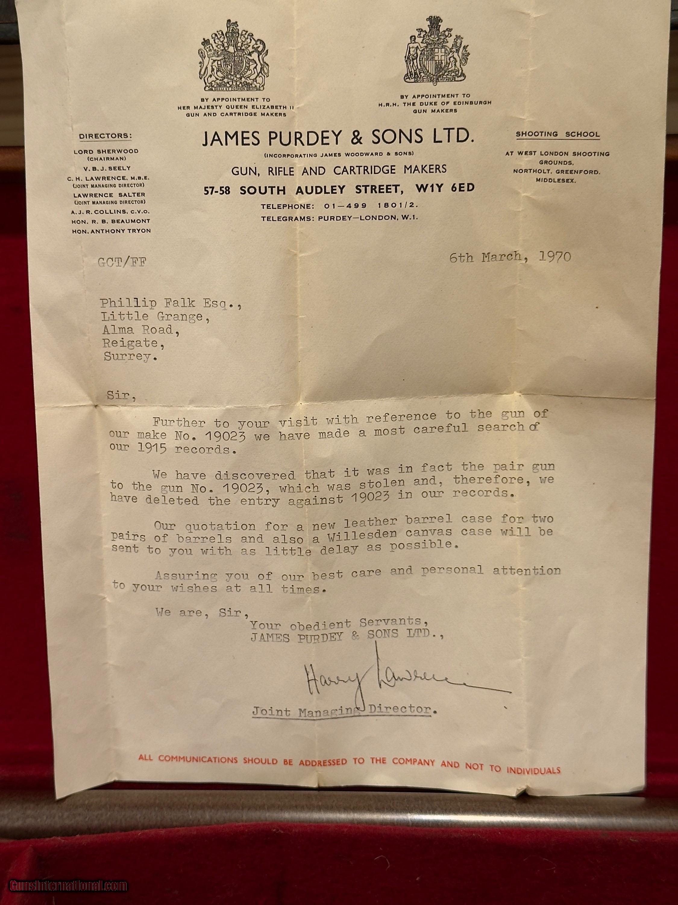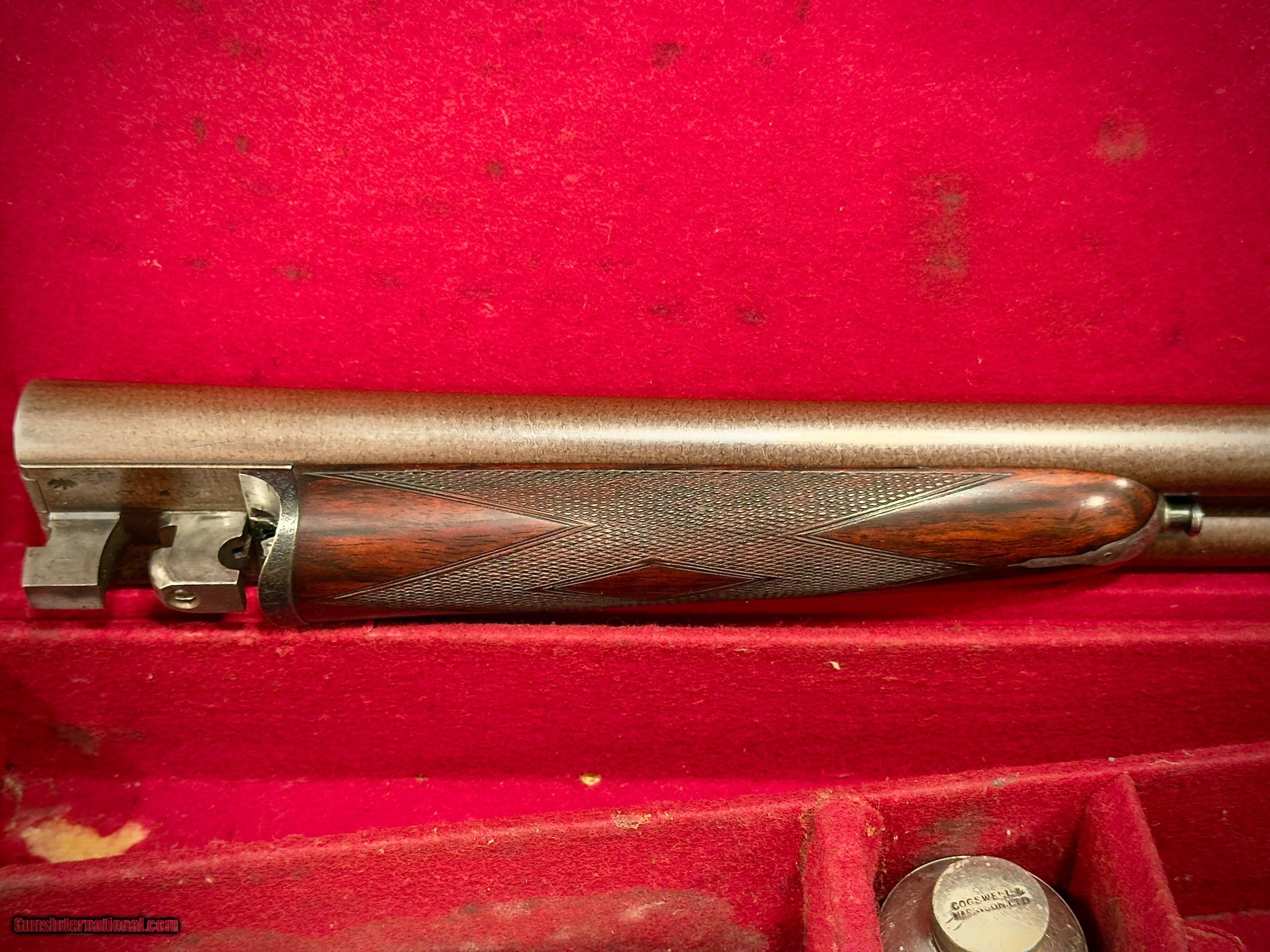 Description: Avaliable today, a piece of art, a piece of history. This 2 barrel set is a must see / add to anyone's collection. Purdey 12 bore sidelock ejector with extra barrels, serial number 19xxx. This gun was completed on 9th August 1907, a true Beesley patent self-opener. Another set of barrels are included with more open chokes at 1/4 & 1/2. Also included in the case is a provenance letter from Purdey. Primary barrelsProof: -.729” in both, actual -.733” in both. Min walls .021” & .023”. Choked – ¼ & 7/8. Second set: Proof -.729” in both,actual -.735” & .734”. Min walls .023” & .022”. Choked ¼ & ½plete in maker’s leather case for both barrels. Both 29” barrels, 15” stock. Pre-WWI Purdey during the height of production years and quality, higher value with two sets of Purdey barrels Feel free to give us a call to discuss a price out the door, shipping to an FFL of your choice. Cash, Check, Money Order or Credit Card - (3% fee) Also be sure to stop by our gun vault, located on our to see new Beretta, Rizzini and Krieghoff inventory. selwoodfarm/gun-vault/ Shotgun Gauge: 12 Gauge Price: $26,500.00 Contact Seller |