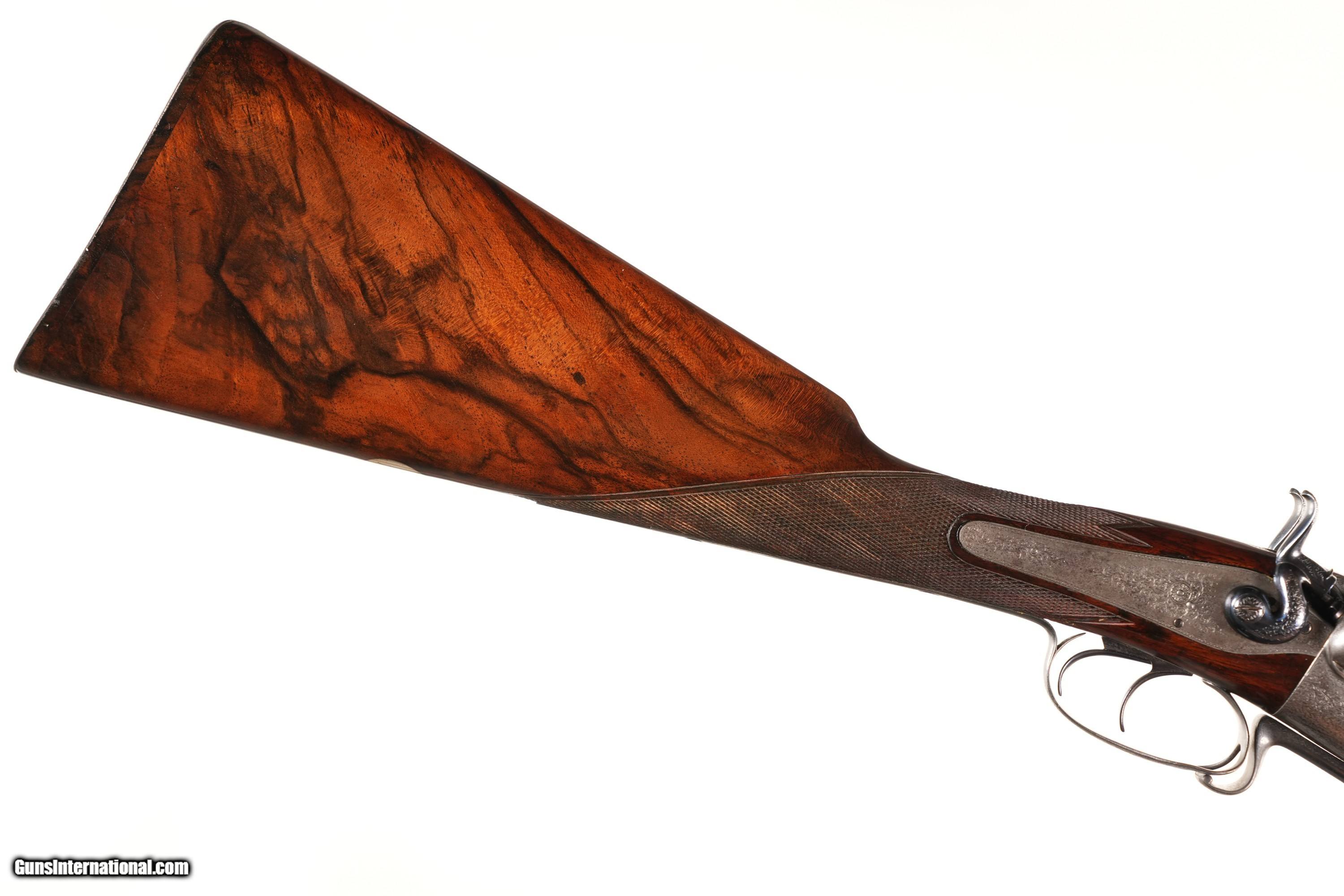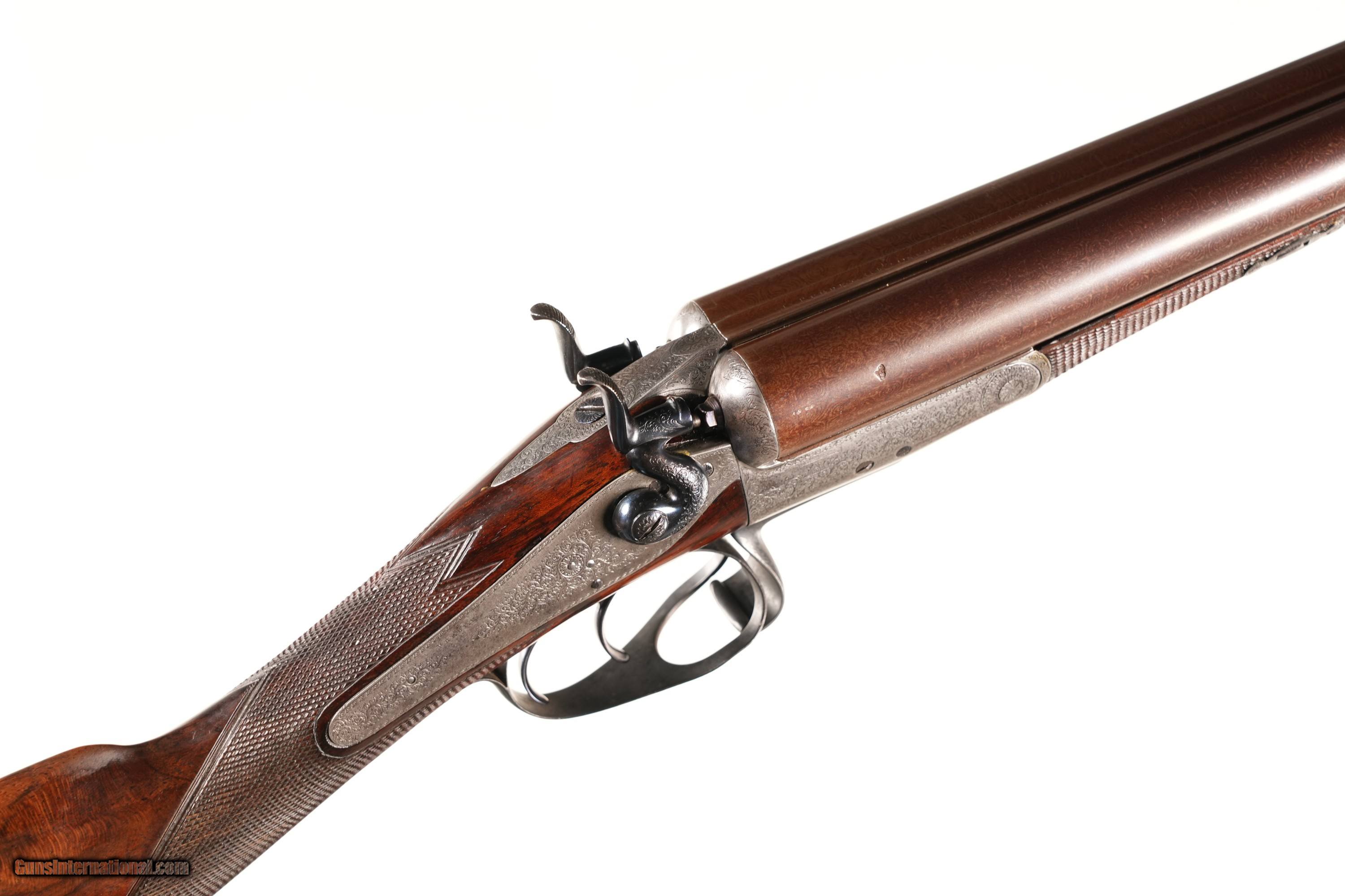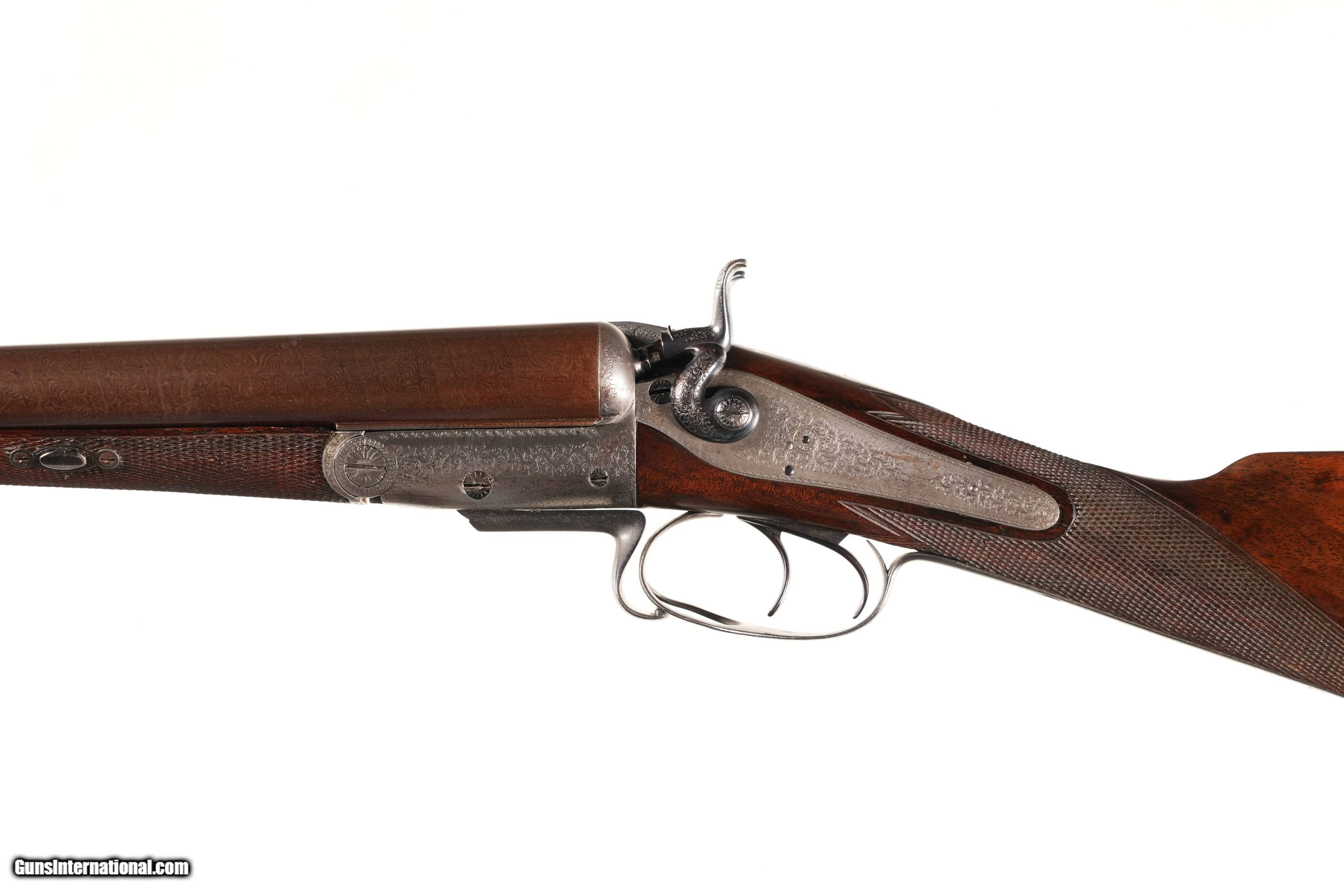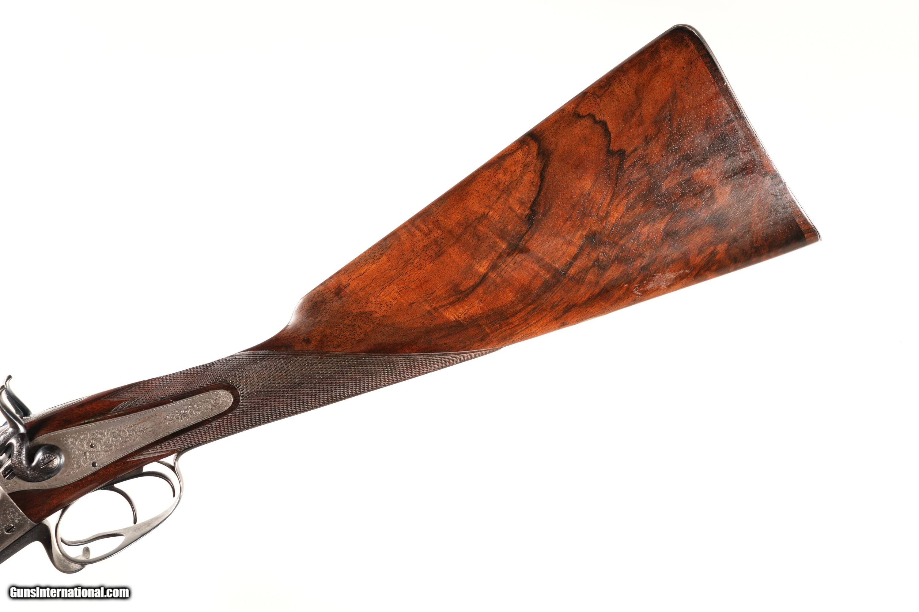 Description: Purdey Thumb Lever Opener serial number 7099 with 12 Ga, 28" Bbl's No2 Action 2 1/2" chambers choked Cyl & Cyl. Back action locks marked PURDEY on upper border with very fine scroll & foliate engraving. Rebounding hammers & firing pins. 14 1/4" LOP. Housed in factory Oak wrapped partitioned case with PURDEY label and lined in red wool. Condition, Extremely fine as restored. • Free Shipping, No Credit Card Fees. • Lay-a-way available for this firearm. • 1/3 Down, a 1/3 in 30 Days 1/3 in 60 Days. SOLD Antique: Yes Shotgun Gauge: 12 Gauge Manufacturer: Purdey Model: Thumb Lever Opener Serial Number: 7099 Barrel Length: 28 |