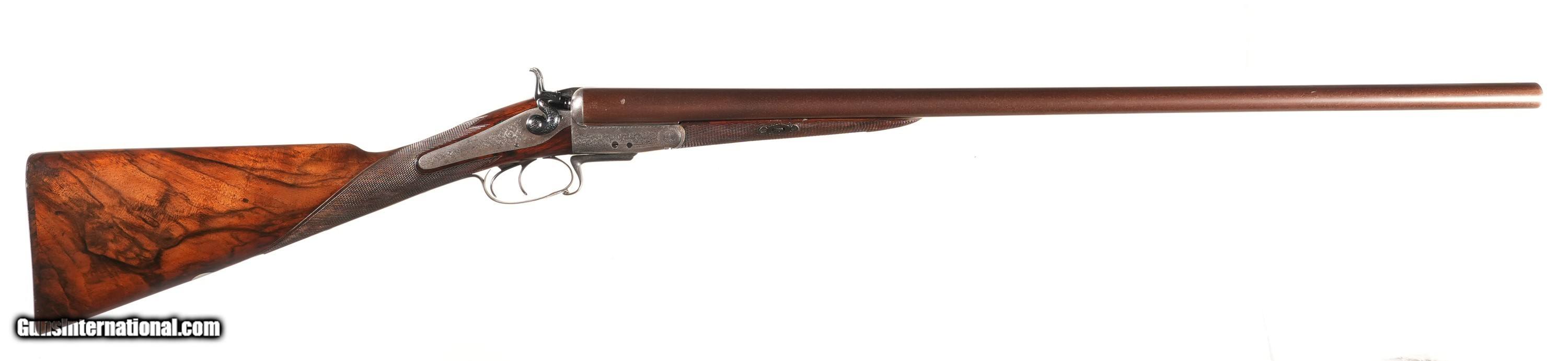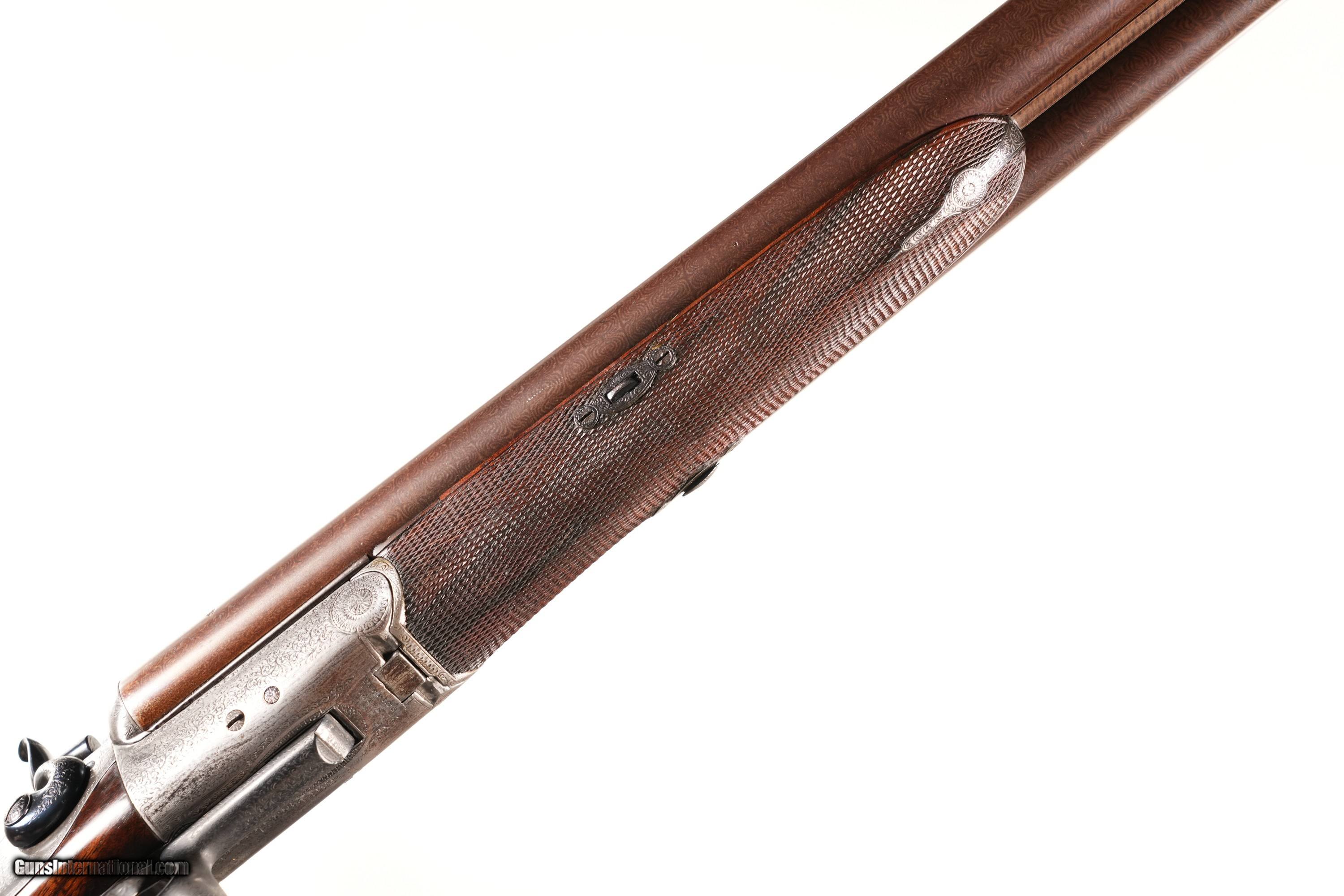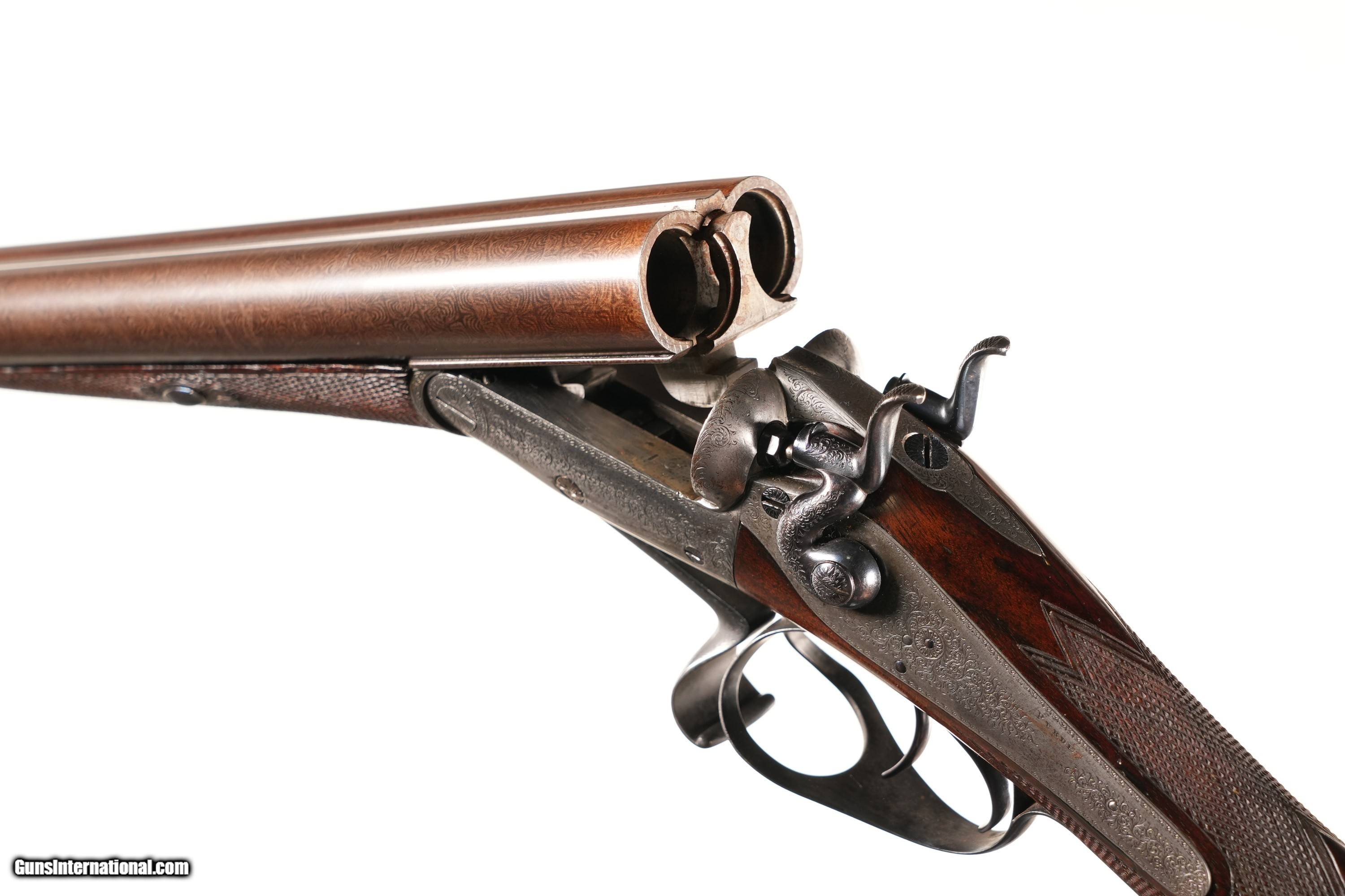 Description: Purdey Thumb Lever Opener serial number 7099 with 12 Ga, 28" Bbl's No2 Action 2 1/2" chambers choked Cyl & Cyl. Back action locks marked PURDEY on upper border with very fine scroll & foliate engraving. Rebounding hammers & firing pins. 14 1/4" LOP. Housed in factory Oak wrapped partitioned case with PURDEY label and lined in red wool. Condition, Extremely fine as restored. • Free Shipping, No Credit Card Fees. • Lay-a-way available for this firearm. • 1/3 Down, a 1/3 in 30 Days 1/3 in 60 Days. SOLD Antique: Yes Shotgun Gauge: 12 Gauge Manufacturer: Purdey Model: Thumb Lever Opener Serial Number: 7099 Barrel Length: 28 |