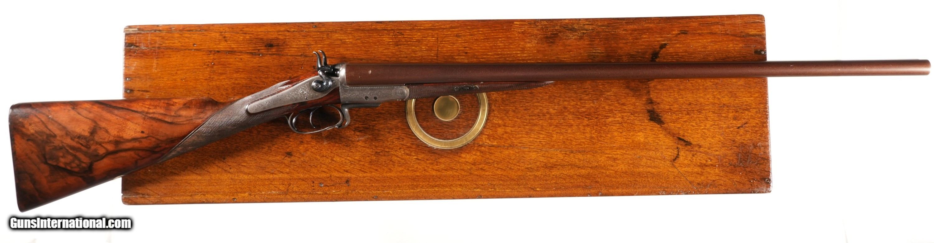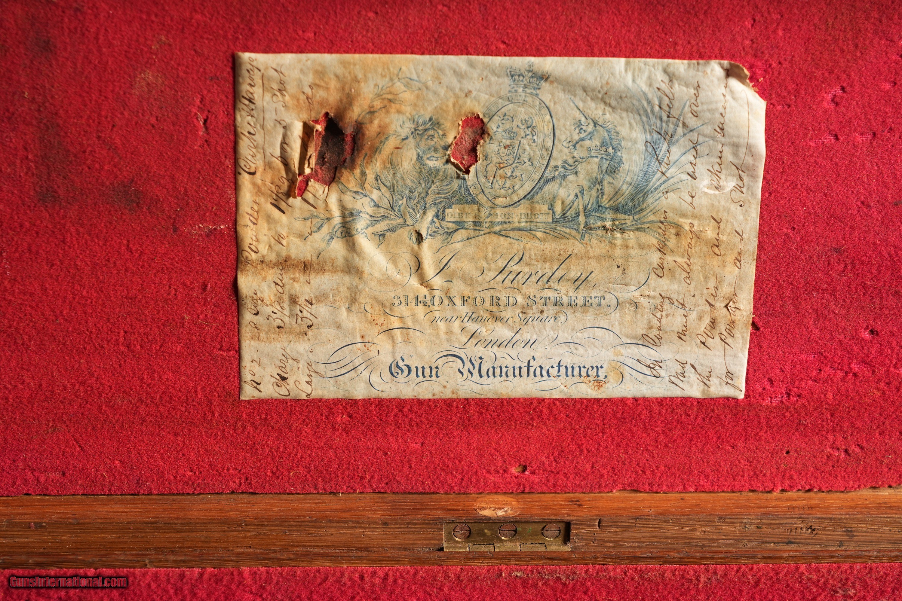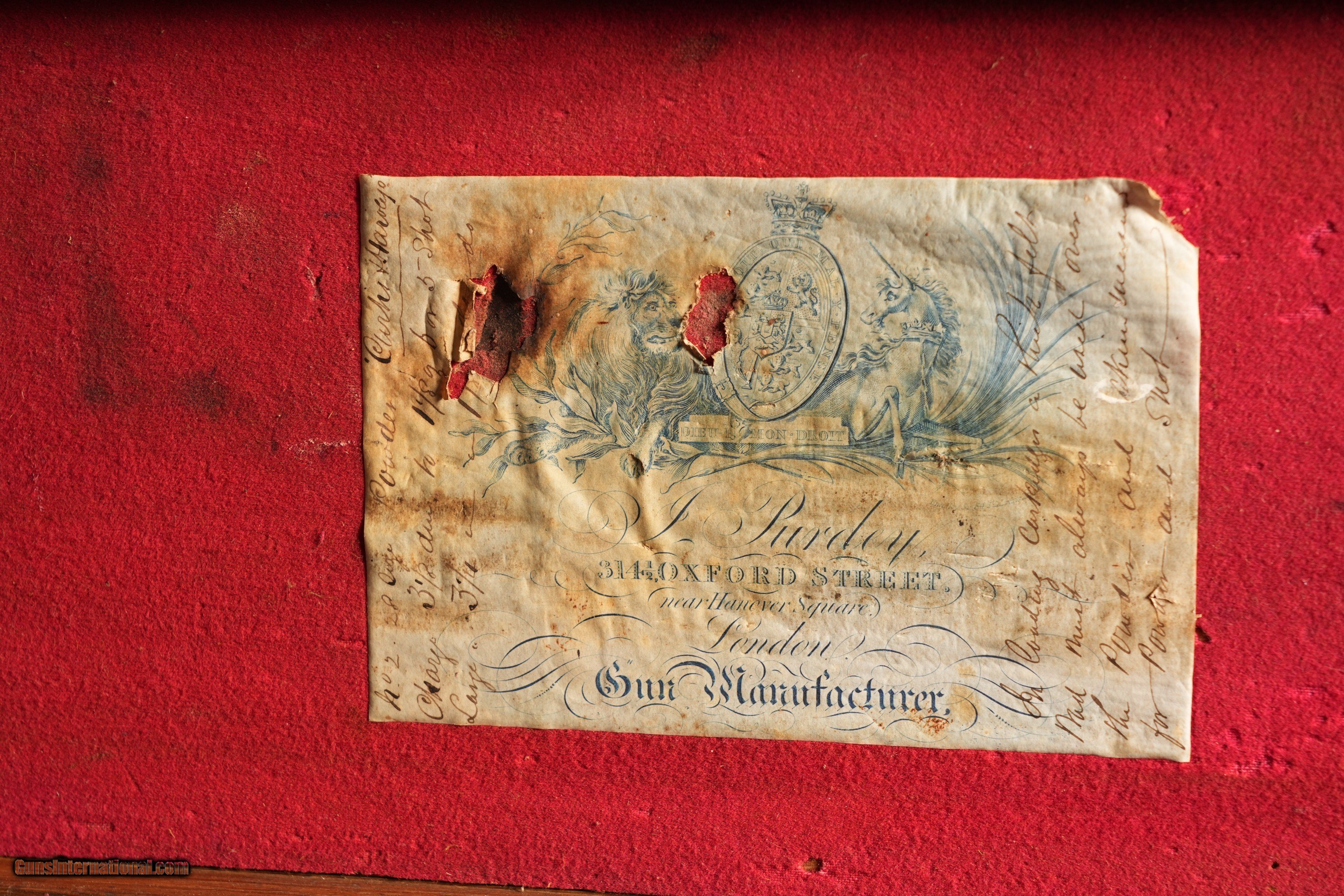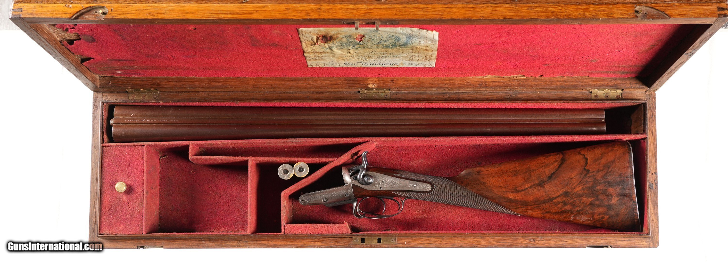 Description: Purdey Thumb Lever Opener serial number 7099 with 12 Ga, 28" Bbl's No2 Action 2 1/2" chambers choked Cyl & Cyl. Back action locks marked PURDEY on upper border with very fine scroll & foliate engraving. Rebounding hammers & firing pins. 14 1/4" LOP. Housed in factory Oak wrapped partitioned case with PURDEY label and lined in red wool. Condition, Extremely fine as restored. • Free Shipping, No Credit Card Fees. • Lay-a-way available for this firearm. • 1/3 Down, a 1/3 in 30 Days 1/3 in 60 Days. SOLD Antique: Yes Shotgun Gauge: 12 Gauge Manufacturer: Purdey Model: Thumb Lever Opener Serial Number: 7099 Barrel Length: 28 |