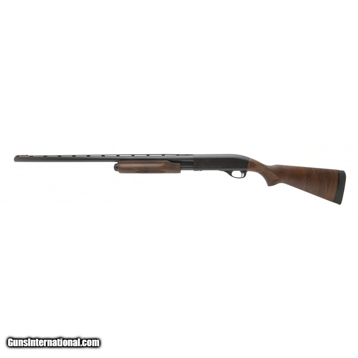 Pump action field gun with 27.5"" vent rib barrel and screw-in choke. The LOP is 14"". Overall excellent condition.