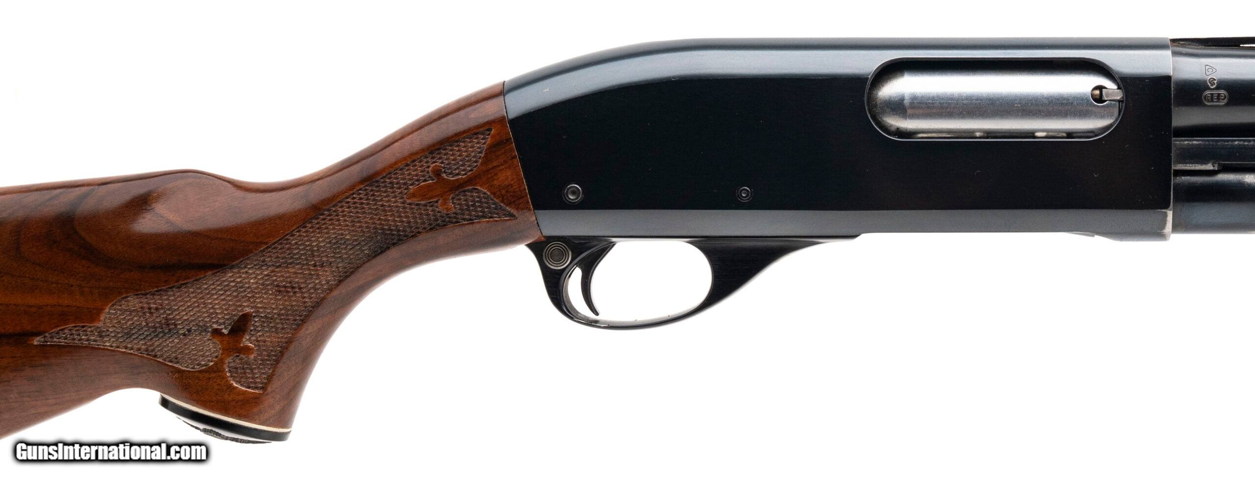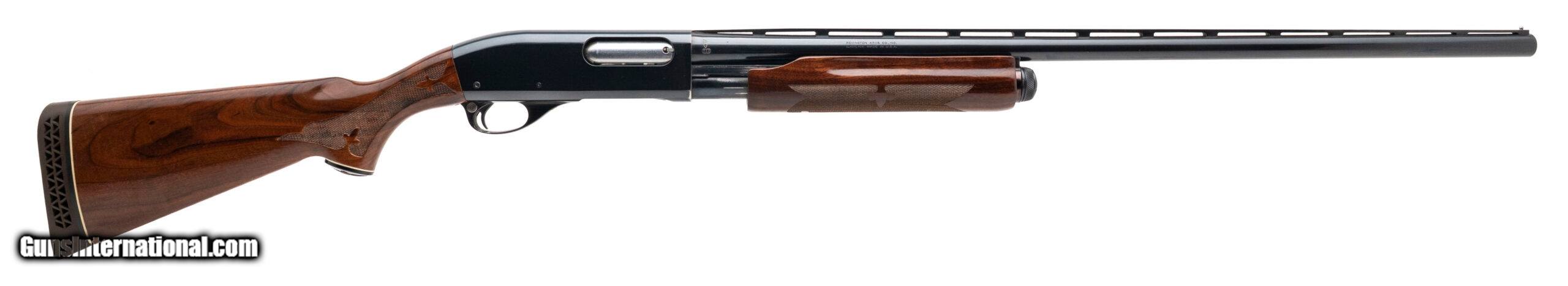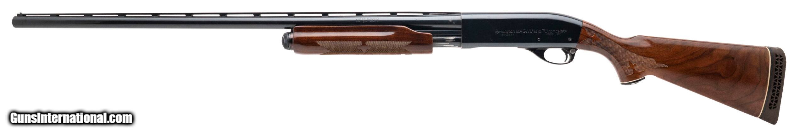 Description: "SN: T971064M. Made in 1966, 12 gauge magnum with a 30"" vent-rib barrel w/full choke chambered for 3"" shells. Bore is excellent. Pump-action field shotgun with blued finish, and checkered wood stock & forend with a 14"" LOP. Finish & stock show minor handling wear. Overall condition is very good. SOLD |
