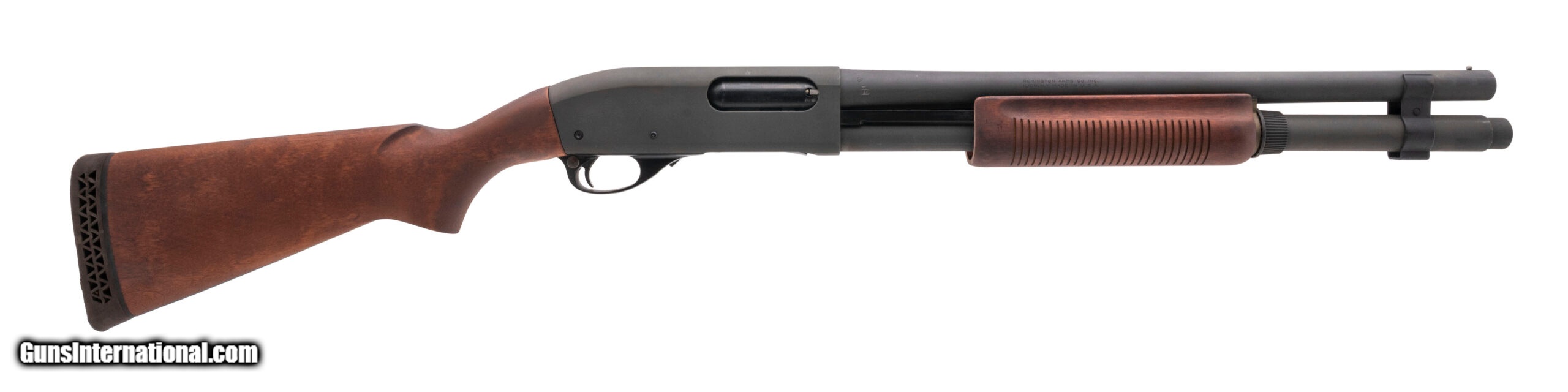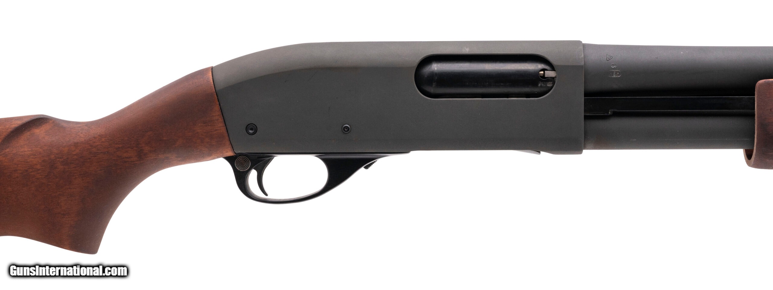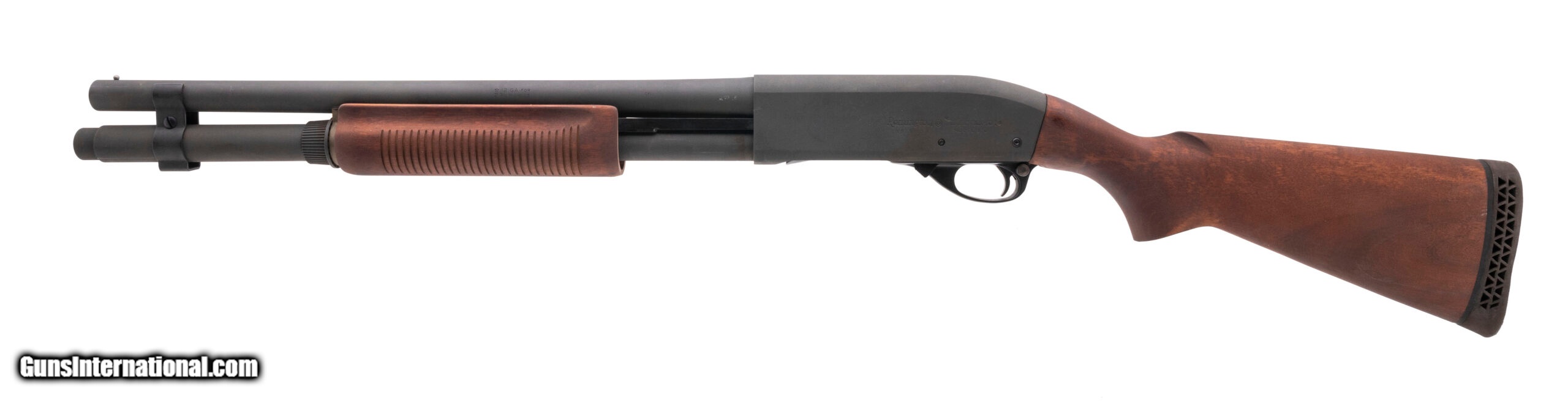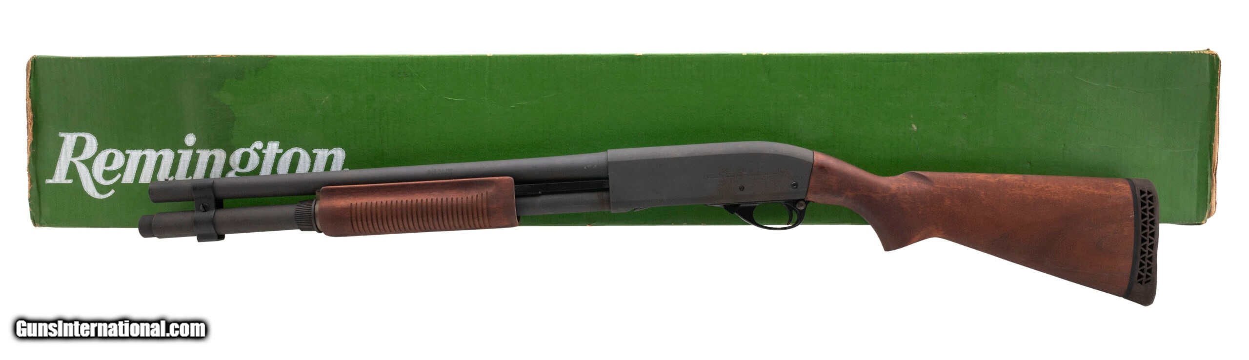 Description: "SN: V874193V. Made circa 1970s, 12 Gauge with an 18"" Police Cylinder Choke Barrel. Bore is bright. Police style pump action shotgun. Parkerized finish is in excellent condition. Wood stock and forend are in excellent condition. Comes with original box. SOLD |