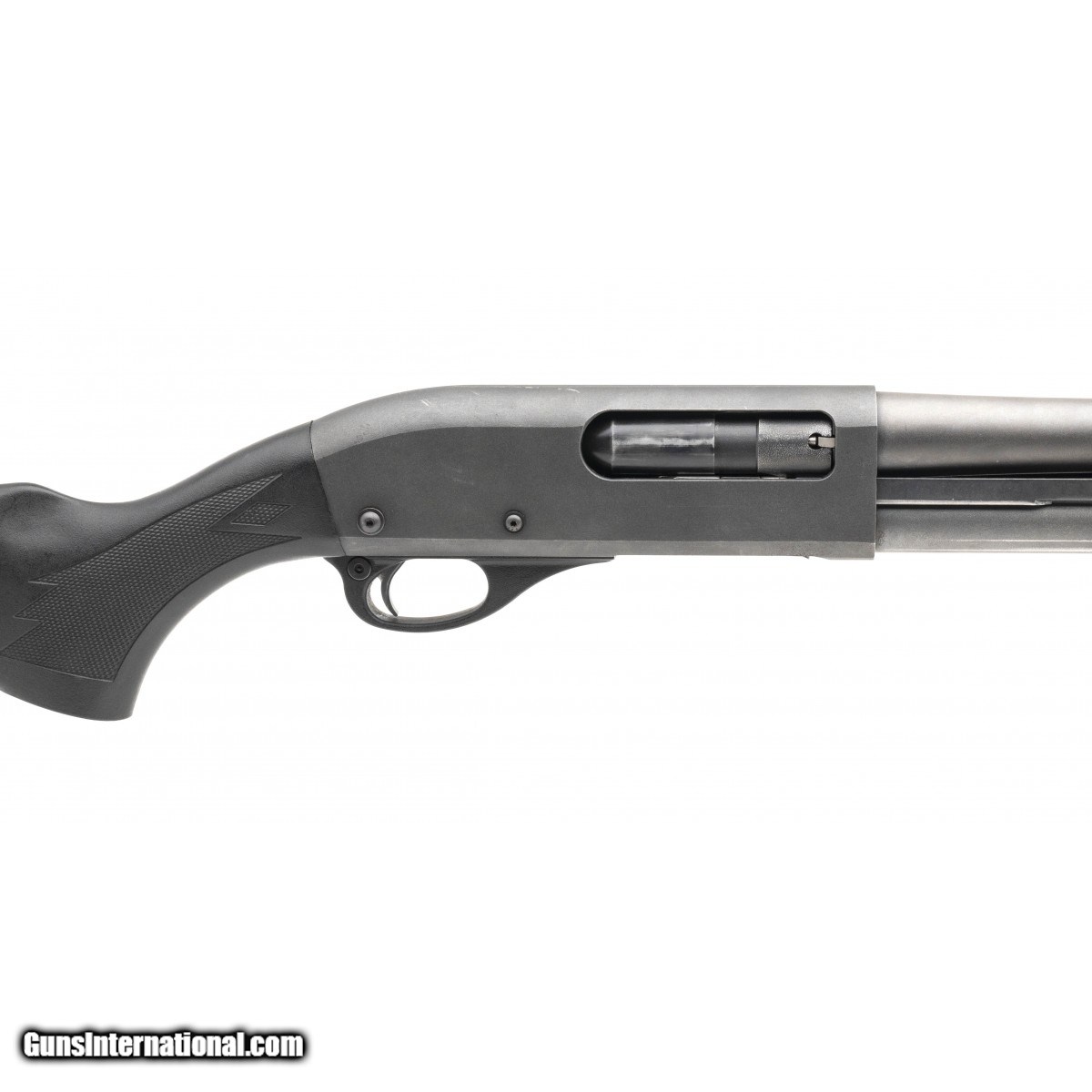 Description: "SN: C981070A. Modern production. Pump-action shotgun made by Remington. 18"" barrel chambered for up to 3"" 12ga shells with fixed cylinder choke. Very good condition with typical mechanical wear in the parkerized finish and some handling marks on the receiver and black polymer stock. Features Streamlight TL-Racker fore-end with integrated light, and Archangel shell rack. Austin location. SOLD |
