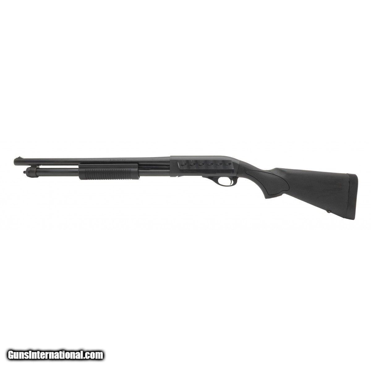 Tactical pump action 18"" barrel with black synthetic stock and bead sight. With a GG&G side saddle. NEW. UPC:810070683849.