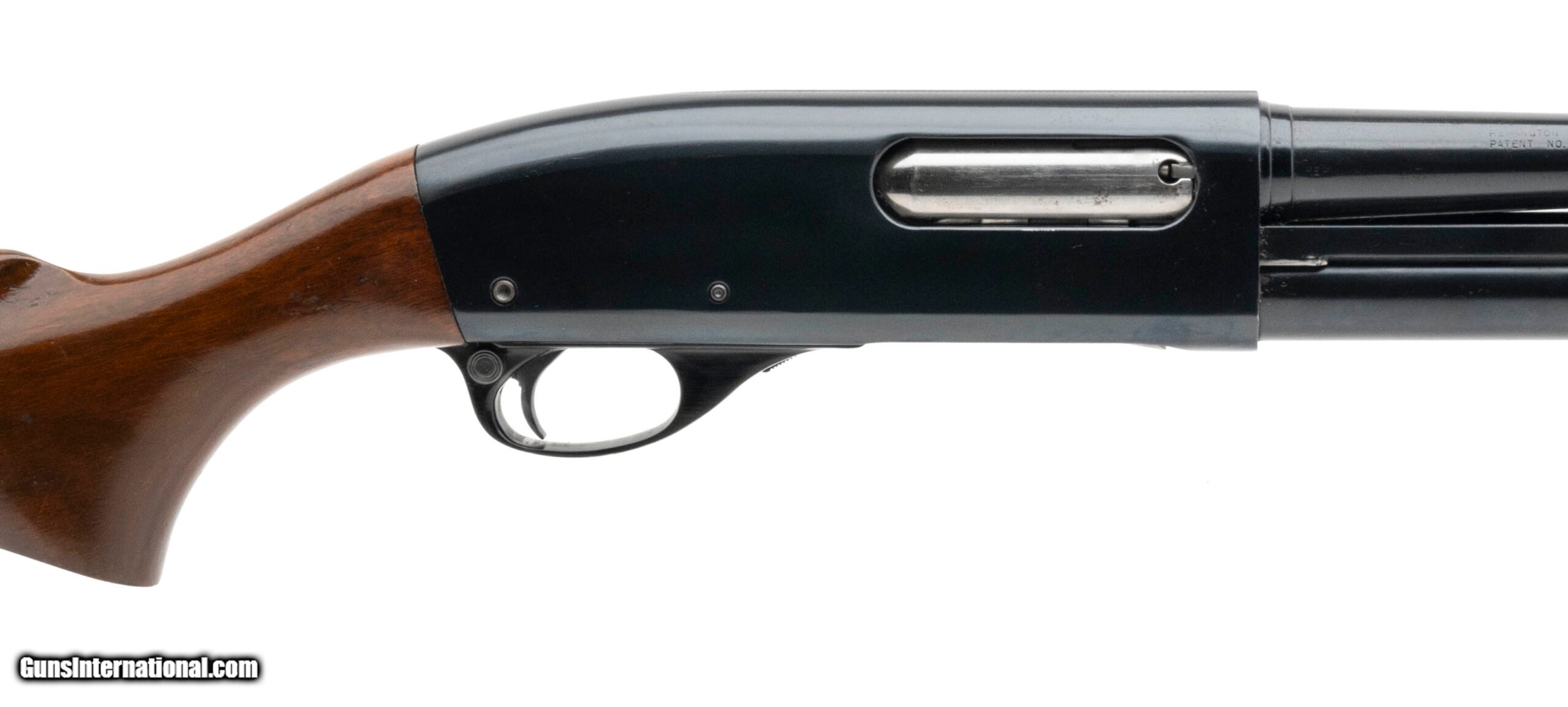 Description: "SN: 416456X. Made in 1981. 20 Gauge with an 26"" barrel with an Deluxe Poly Choke. Bore is in very good condition. Remington pump action field shotgun. Finish is in very good condition with. Wood stock is in very good condition with noted field wear on stock. LOP is 14"" with an replace recoil pad. Overall condition is very good. SOLD |