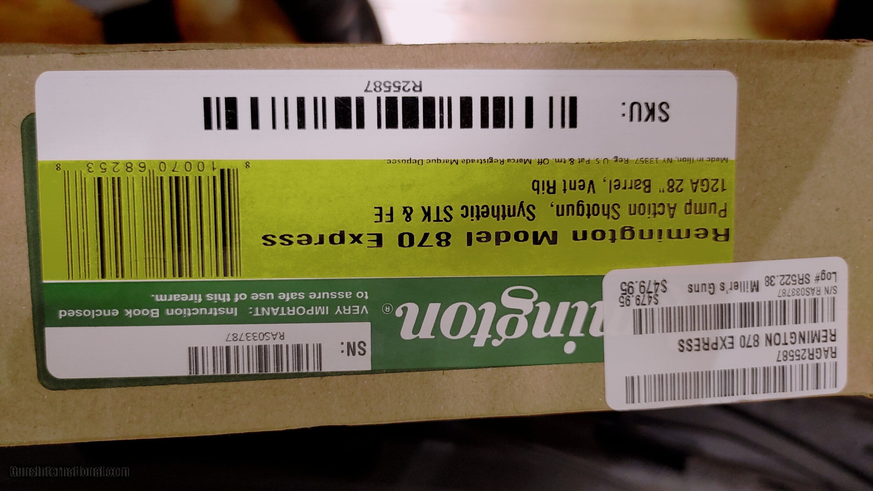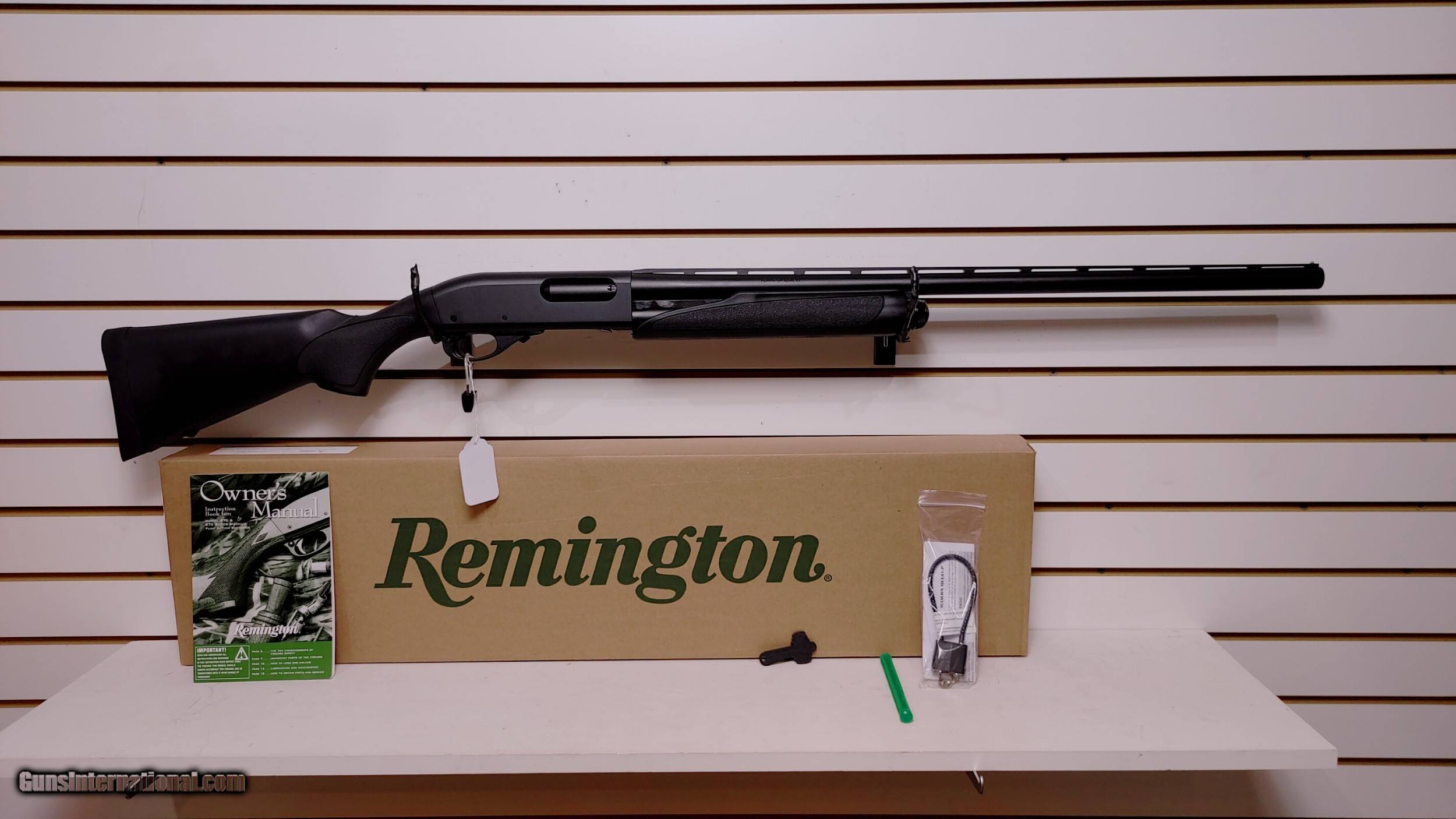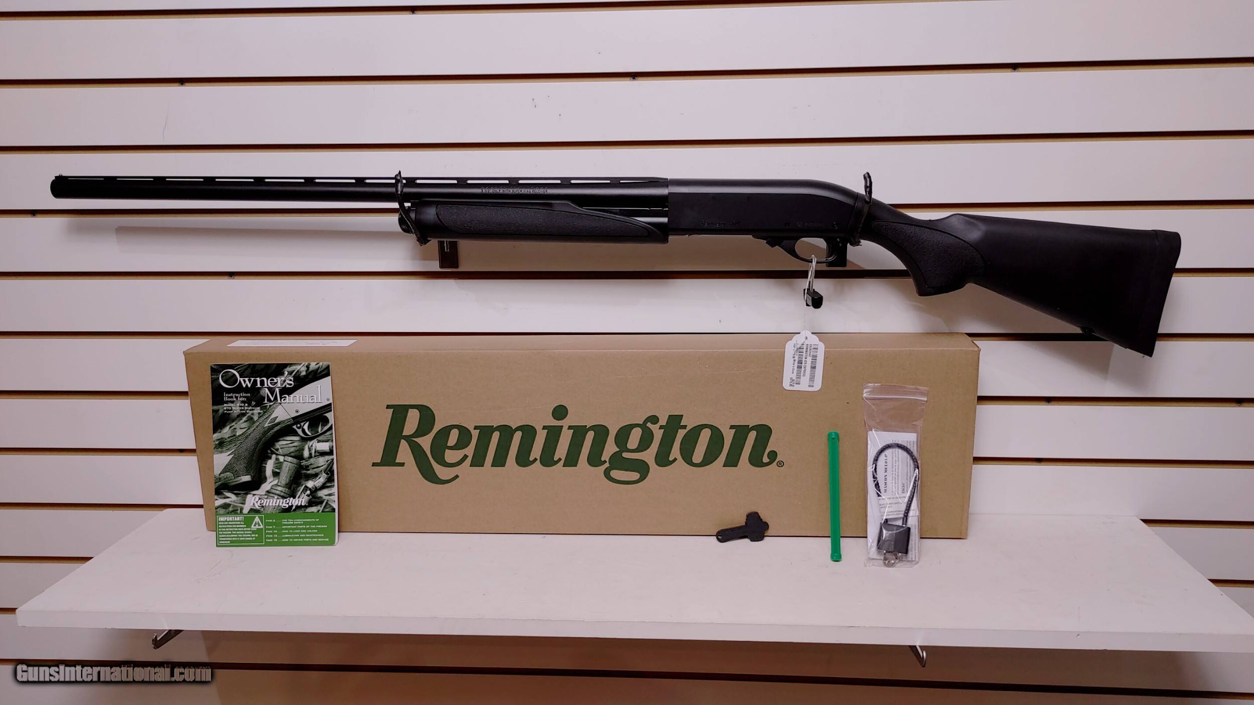 Description: new Remington 870 EXPRESS 12 gauge 28" barrel 1 choke cylinder lock manual new in box (MODEL:870 EXPRESS SYNTHETIC); (ACTION:PUMP ACTION); (BARREL LENGTH:28); (CAPACITY:4); (OVERALLLENGTH:48.5); (RECEIVER:MILLED); (SIGHTS:SINGLE BEAD); (STOCKFRAMEGRIPS:SYNTHETIC STOCK SYNTHETIC); (WEIGHT:7.5 LBS.); (CHAMBER:3); (DRILL-TAPPED:FALSE); (SHOTGUN:SHOTGUN) Buyer pays shipping Millers Gun Center Located in New Castle, Delaware "Home of TAX-Free shopping" No Credit Card Fees SOLD Serial Number: RAR033787 |