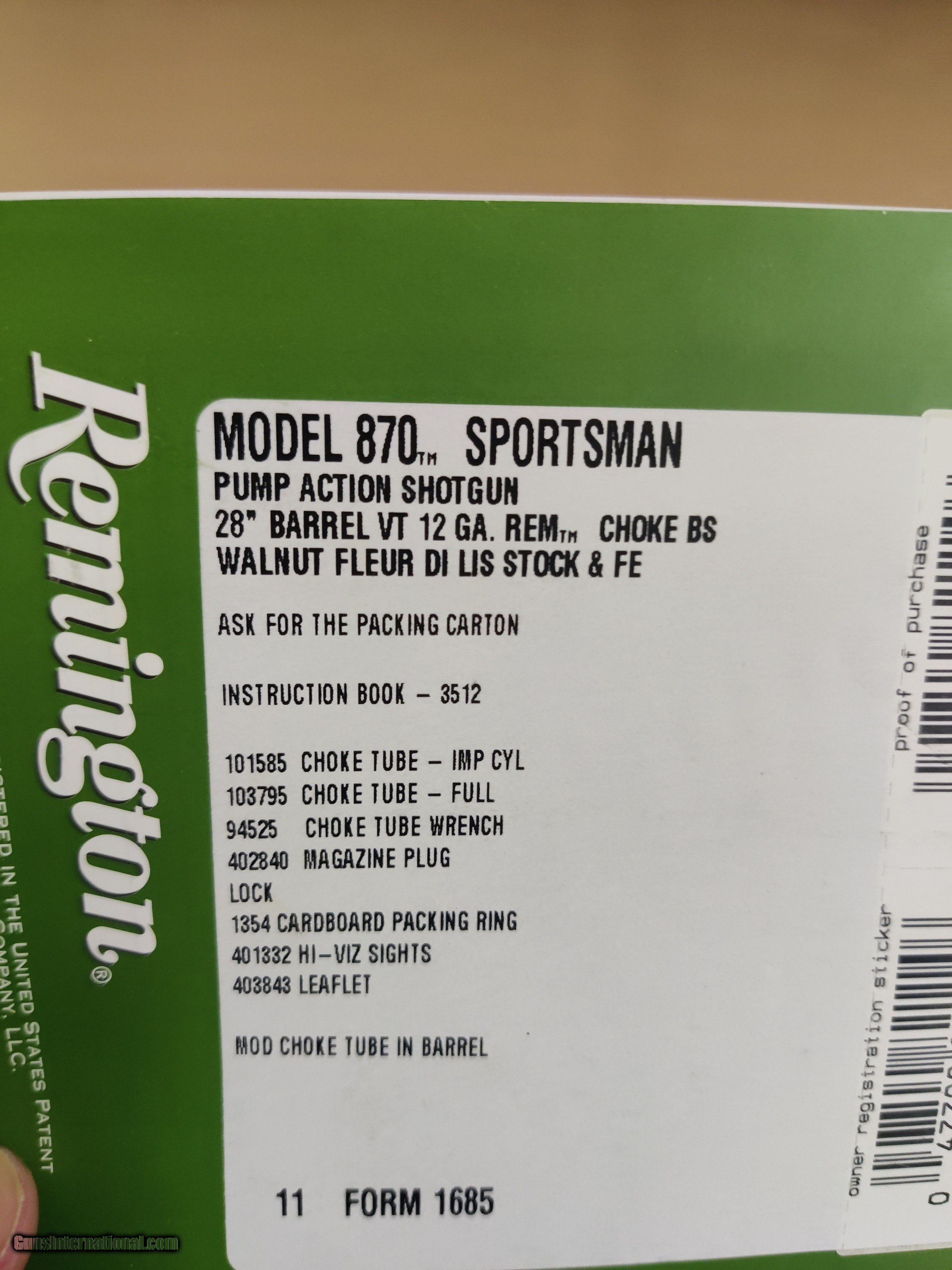 Description: New in the box Remington 870 12 ga Sportsman Fleur de Lis. 28" vent rib, rem choke. Text/call 570-780-2913 SOLD Shotgun Gauge: 12 Gauge Manufacturer: Remington Model: 870 |