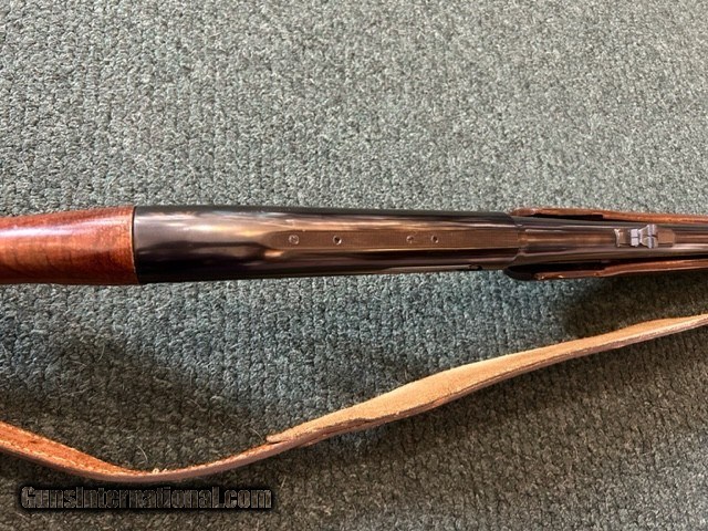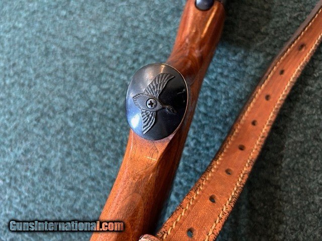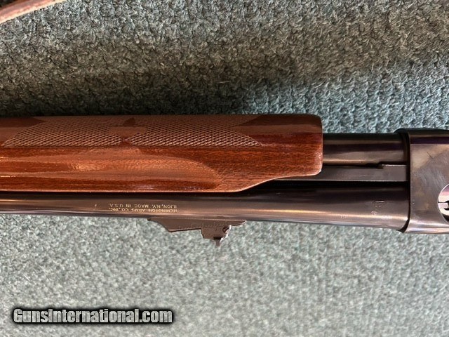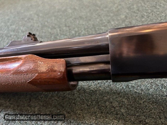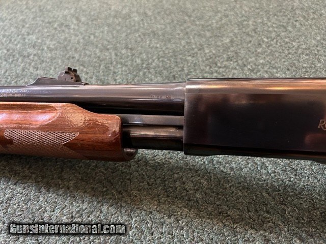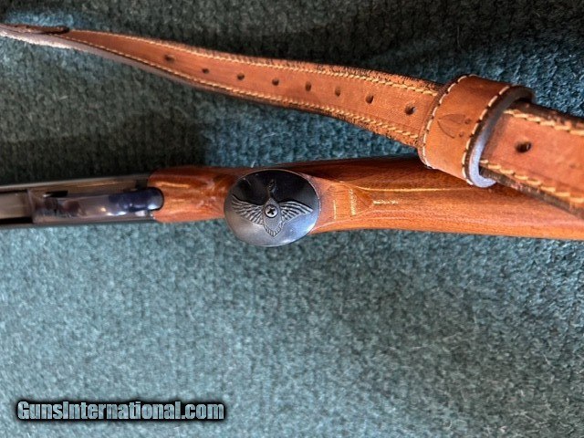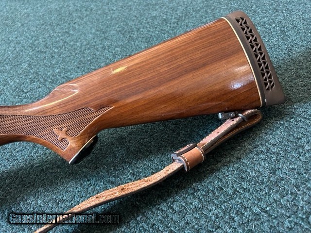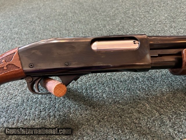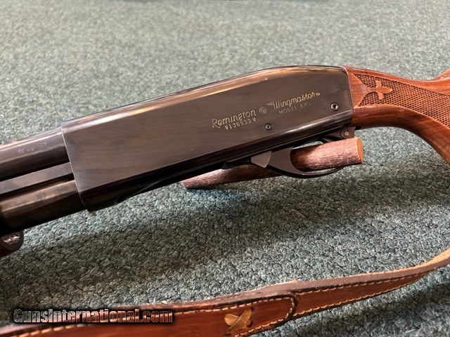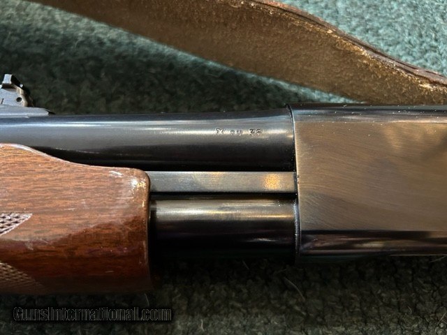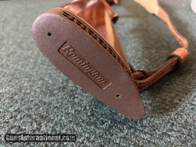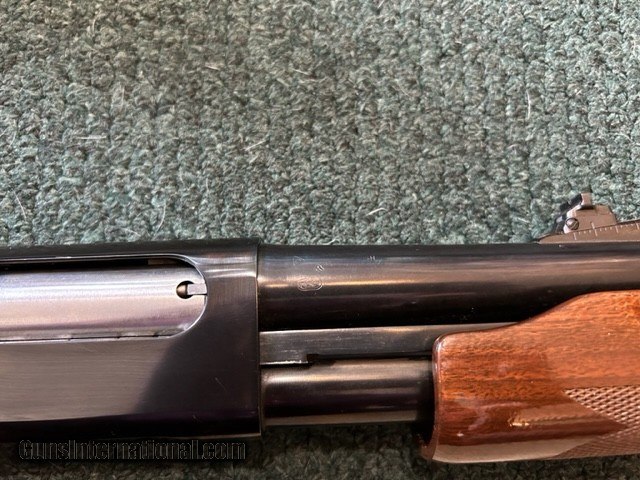 Description: Remington, 12ga, Mdl 870, Wingmaster, 2 3/4", 19 1/2" slug barrel, drilled and tapped for base on receiver, brass bead front sight, rear sight u shaped, improved cylinder choke, shiny finish, 99.9% overall condition, nice leather sling with deer head. Serial number V136933V. For further information and faster service call John at 941-224-5563. SOLD |