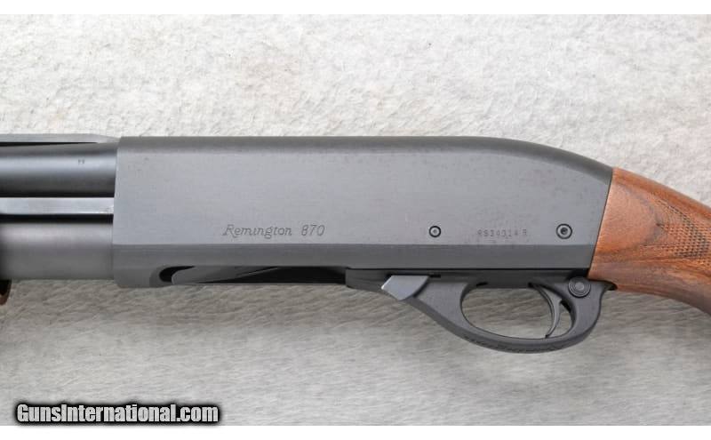 Description: This Remington Model 870 is a right hand pump action shotgun in 12 Ga. It has a 25 inch ventilated rib barrel. A green high visibility front sight. With a 3 inch chamber it comes with one Remington Full choke tube. The butt stock is a checkered grip hardwood laminate pistol grip. The forearm is a checkered grip hardwood laminate with finger grooves. 12 Gauge SOLD Chambers: 3 inch. Metal Condition: Good. Receiver has some very minor freckling. Wood Condition: Very Good. Bore Condition: Bright and shiny. Barrels: 25 inch barrel with a ventilated rib. Stock Dimensions: LOP 14 inches. Fore End: Checkered grip hardwood laminate with finger grooves. Butt Pad: Remington black rubber pad. Weight: 7 lb. 10 oz. Sights: Green high visibility front sight. Chokes: Comes with one Remington Full choke tube. Item Location: Richfield, WI |