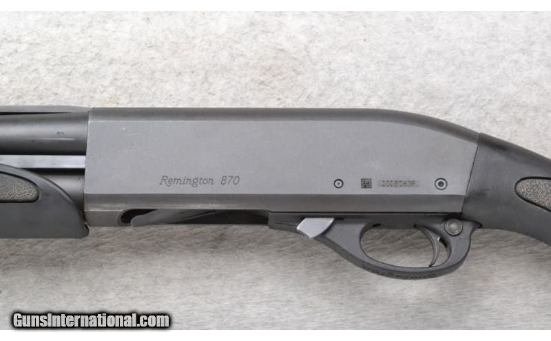 Description: This Remington Model 870 is a right hand pump action shotgun in 12 Ga. It has a 25.5 inch ventilated rib barrel. A metal bead front sight. With a 3 inch chamber it comes with a Remington Modified choke tube. The butt stock is a textured grip black polymer pistol grip. The forearm is a textured grip black polymer with finger grooves. 12 Gauge SOLD Chambers: 3 inch Metal Condition: Good. Minor handling marks. Bore Condition: Shiny. Barrels: 25.5 inch ventilated rib barrel. Stock Dimensions: 13 5/8 inches. Fore End: Textured grip black polymer with finger grooves. Butt Pad: Remington black rubber recoil pad. Weight: 7 Lb. 3 Oz. Sights: Metal front bead. Chokes: Remington Modified choke tube. Item Location: Richfield, WI |
