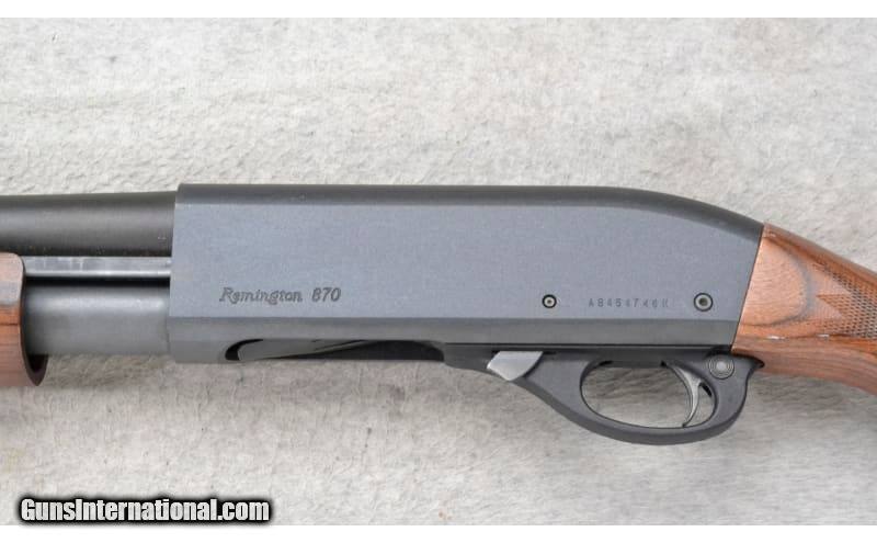Description: This Remington Model 870 is a right hand pump action shotgun in 12 Ga. It has a 20 inch Fully Rifled barrel with a 3 inch chamber. A raised blade front sight and an adjustable notch middle sight. It is drilled and tapped for a scope mount. The butt stock is a checkered grip hardwood laminate pistol grip. The forearm is a checkered grip hardwood laminate with finger grooves. 12 Gauge SOLD Chambers: 3 inch. Metal Condition: Very Good. Wood Condition: Very Good. Bore Condition: Shiny. Barrels: 20 inch Fully Rifled. Stock Dimensions: LOP 14 inches. Fore End: Checkered grip hardwood laminate with finger grooves. Butt Pad: Remington black rubber recoil pad. Weight: 7 lb. 8 oz. Sights: Raised blade front. Adjustable notch middle. Drilled and tapped. Item Location: Richfield, WI |