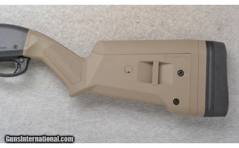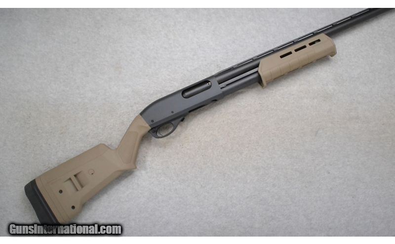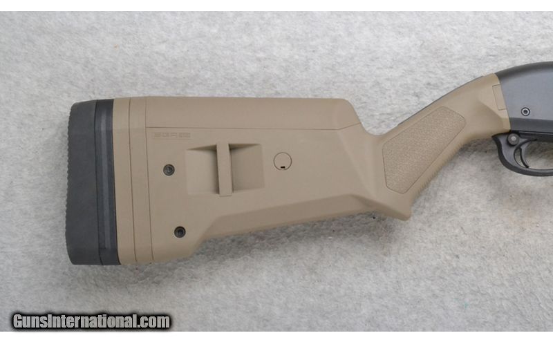 Description: This Remington Model 870 is a right hand pump action shotgun in 12 Ga. It has a 28 inch barrel with a ventilated rib. A bead front sight followed by a high visibility green sight. With a 3 inch chamber it has Remington Choke and comes with one Modified tube. Comes with two stocks. One is a Magpul Tactical tan polymer and one is the original wooden. 12 Gauge SOLD Chambers: 3 inch. Metal Condition: Excellent. Bore Condition: Bright and Shiny. Barrels: 28 inch barrel with a ventilated rib. Stock Dimensions: LOP 13 1/2 inches. Fore End: Magpul MOE tactical. Butt Pad: Magpul ribbed black rubber. Weight: 7 lb. 12 oz. Sights: Metal front bead. Green high visibility tube. Chokes: Remington Choke. Comes with a Modified choke tube. Item Location: Richfield, WI |