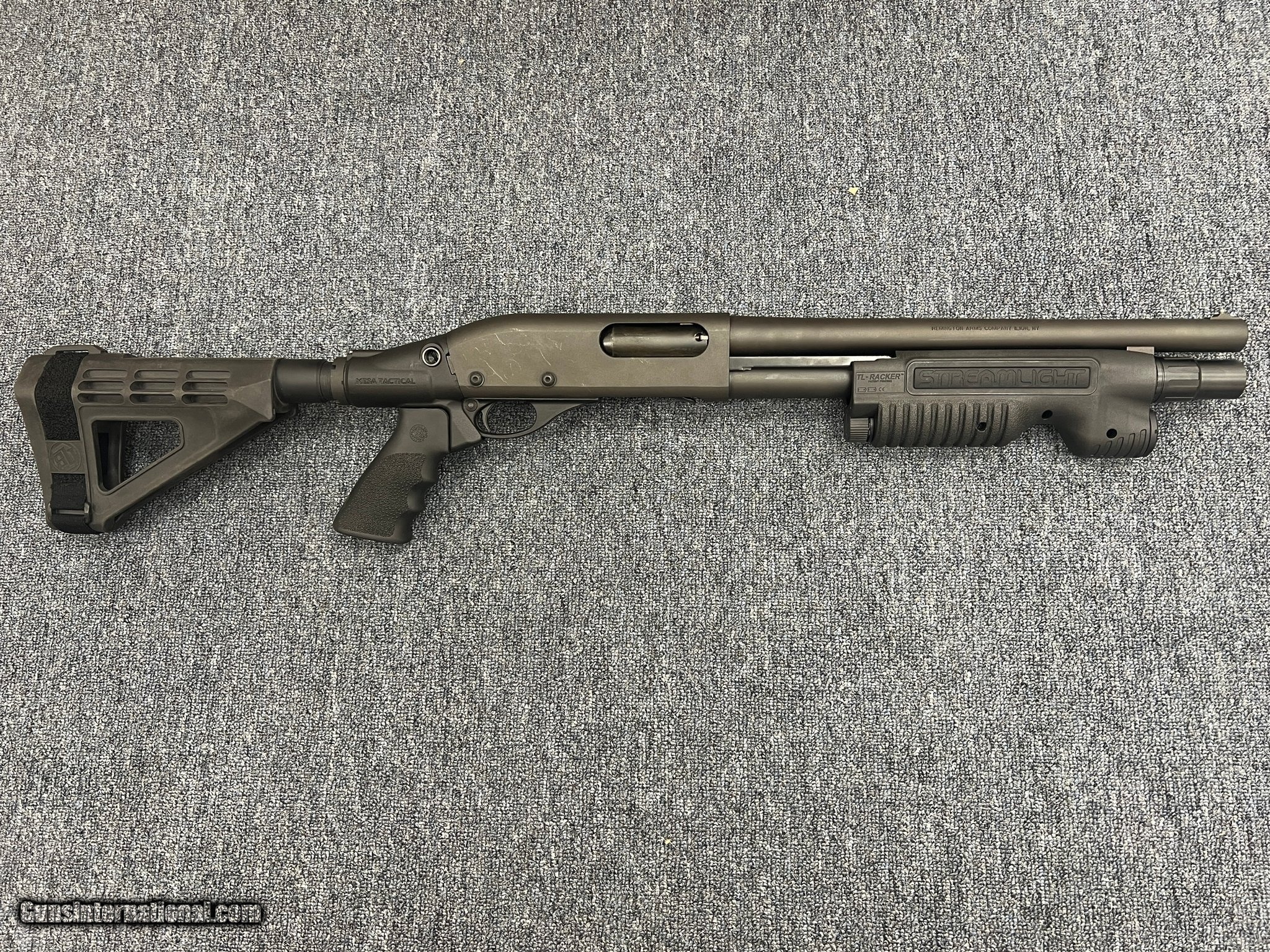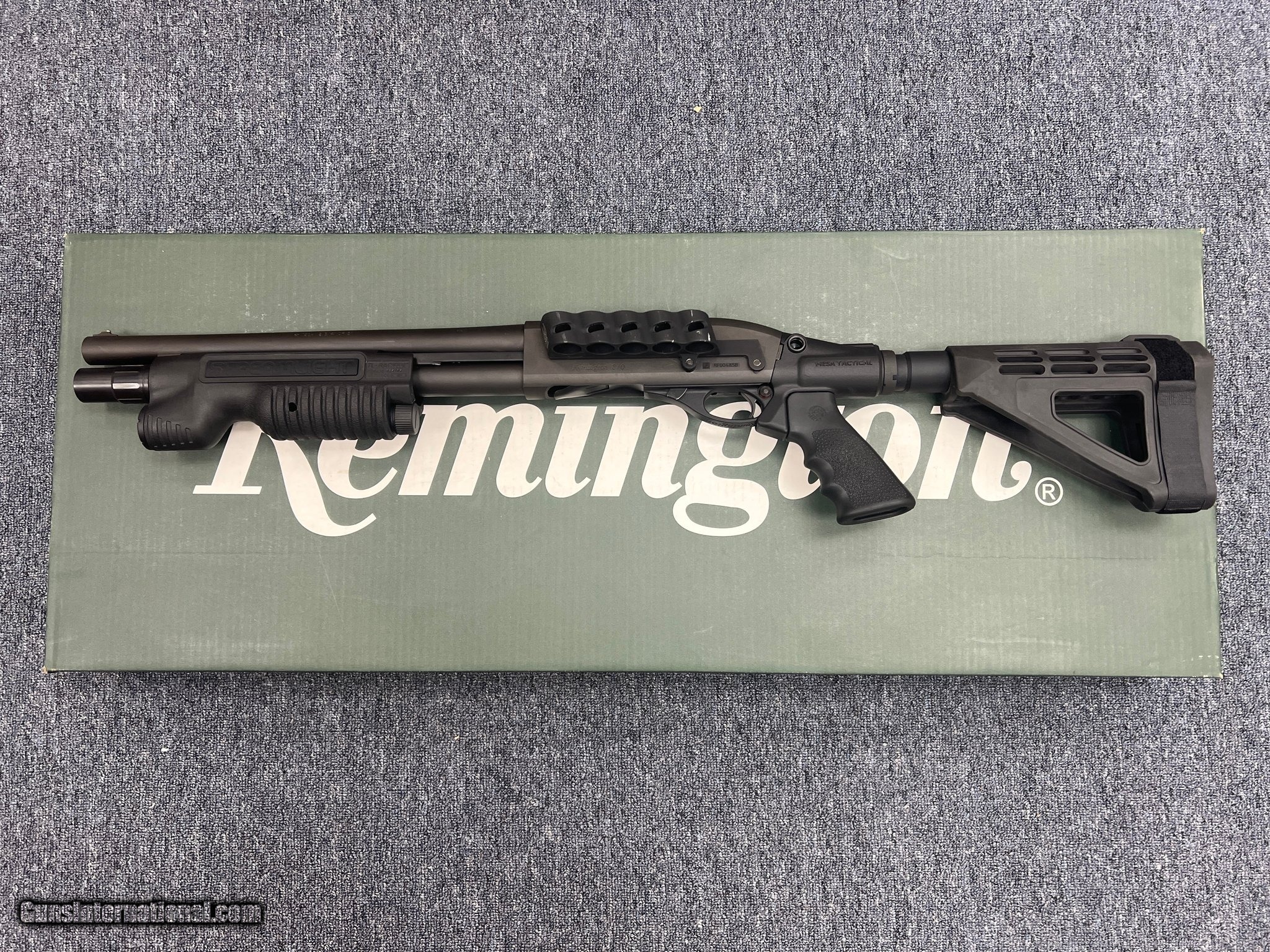 Description: Guns Listing ID: 395137 This pump action shotgun has a 14.5in barrel with a Streamlight TL-Tracker light. It has a +1 magazine tube extension and a Mesa Tactical brace attachment. It comes with the original box and shell storage on the receiver. SOLD Manufacturer: REMINGTON Model: 870 Condition: Used - Non-Certified Barrels: 14.5 BARREL Action: PUMP ACTION Gauge Info: 12 GA Finish: BLACK Weight: not specified |