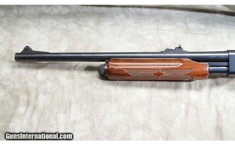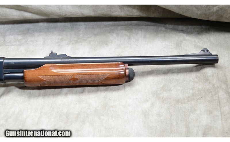 Description: This slug gun features smooth bore (not rifled) with rifle sights. The stock and fore arm have straight grain walnut with impressed checkering and the finish is largely intact. The metal surfaces are good with some scattered pits. 12 Gauge SOLD Chambers: "4+1 capacity (unplugged), 2-3/4 inch only Metal Condition: Very good. Wood Condition: Very good. Bore Condition: Shiny and bright. Barrels: 20-inch smooth bore slug. Triggers: Factory trigger. Stock Dimensions: 14-inch LOP Fore End: Matching walnut Butt Pad: Ventilated rubber pad. Weight: 6 lb - 14 oz Sights: Post and notch "rifle" sights. Chokes: Fixed true cylinder. Item Location: Rogers |