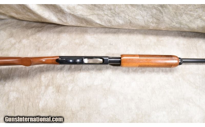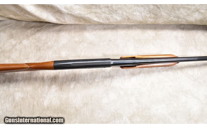 Description: This classic pump that was manufactured in the early '60s (1962 is date of barrel.) It features a plain barrel, light colored hardwood stock, and has good metal and good wood. 16 Gauge SOLD Chambers: 44+1 capacity (unplugged) Metal Condition: Very good. Wood Condition: Very good. Bore Condition: Shiny and bright Barrels: 28 inches Triggers: Factory trigger. Stock Dimensions: 14-inch LOP. Fore End: Grooved beavertail hardwood. Butt Pad: Black plate. Weight: 6 lb - 11 oz Sights: Silver bead. Chokes: Fixed Full choke. Item Location: Rogers |