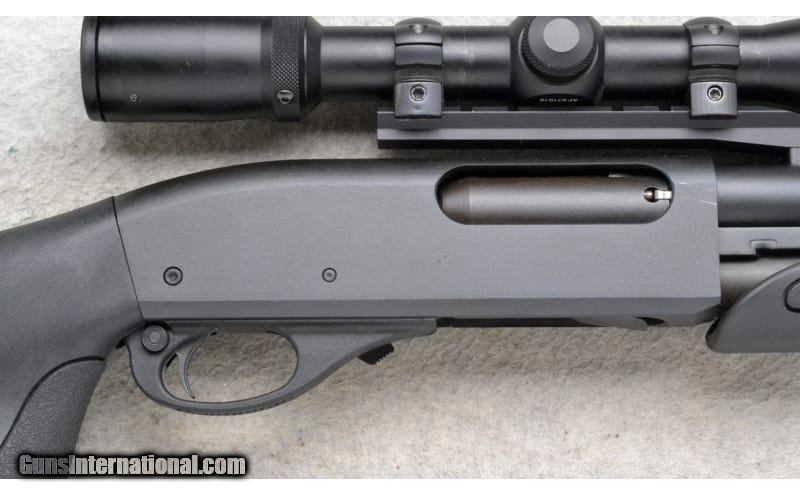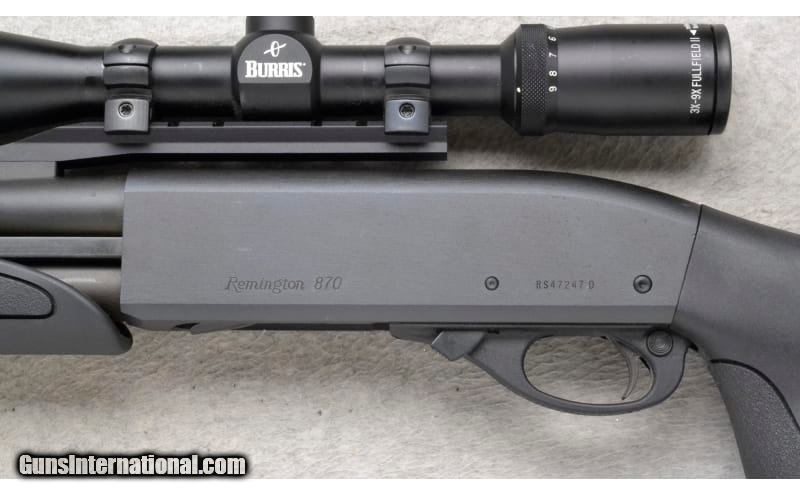 Description: This Remington Model 870 is a right hand pump action shotgun in 20 Ga. It has an 18.5 inch fully rifled barrel with a 3 inch chamber. It is outfitted with a Burris 3-9 Scope. The butt stock is a textured grip thumbhole grip black polymer pistol grip with a raised cheekpiece on both sides. The forearm is a textured grip black polymer with finger grooves. 20 Gauge SOLD Chambers: 3 inch. Metal Condition: Very Good. Receiver has some very minor freckling. Bore Condition: Bright and shiny. Barrels: 18.5 inch Fully Rifled. Stock Dimensions: LOP 13.5 inches. Fore End: Textured grip black polymer with finger grooves. Butt Pad: Remington black rubber recoil pad. Weight: 7 lb. 10 oz. Sights: Burris 3-9 Full Field II Scope. Item Location: Richfield, WI |