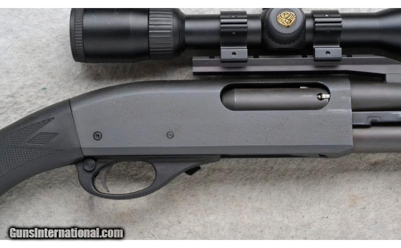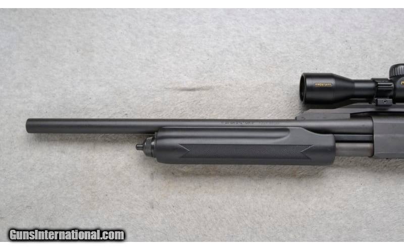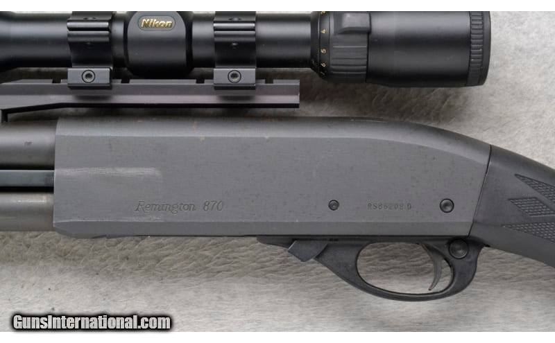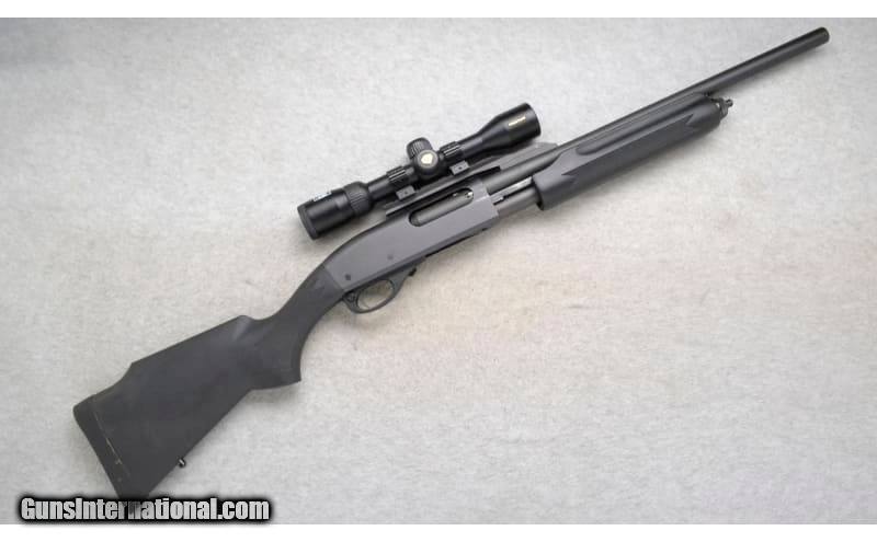 Description: This Remington Model 870 is a right hand pump action shotgun in 20 Ga. It has an 18.5 inch Fully Rifled barrel with a 3 inch chamber. It is outfitted with a Nikon Prostaff 2-7x32 Scope. The butt stock is a checkered grip black polymer pistol grip. The forearm is a checkered grip black polymer with finger grooves. 20 Gauge SOLD Chambers: 3 inch. Metal Condition: Fair. Has some light rust and use wear marks. Bore Condition: Excellent. Barrels: 18.5 inch. Stock Dimensions: LOP 13 inches. Fore End: Checkered grip black polymer with finger grooves. Butt Pad: Remington black rubber recoil pad. Weight: 7 lb. 8 oz. Sights: Nikon Prostaff 2-7x32 Scope. Chokes: Fully Rifled barrel. Item Location: Richfield, WI |