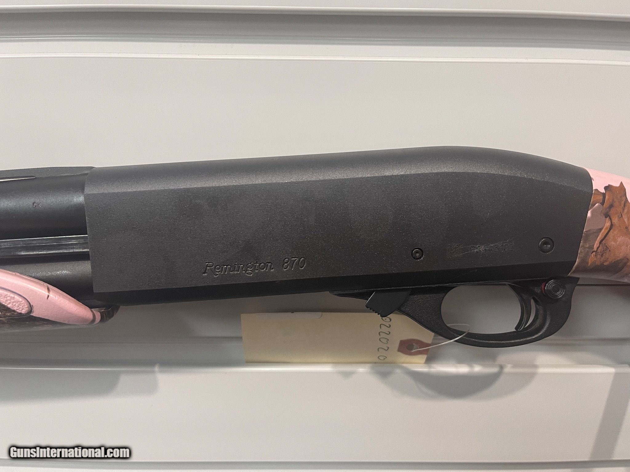 Description: Guns Listing ID: 899881 VERY LIGHT SIGNS OF WEAR FROM USE. PINK CAMO STOCK AND FOREND. SOLD Manufacturer: REMINGTON Model: 870 Condition: Used - Non-Certified Barrels: 21 BARREL Gauge Info: 20 GA Finish: PINK AND BLACK |