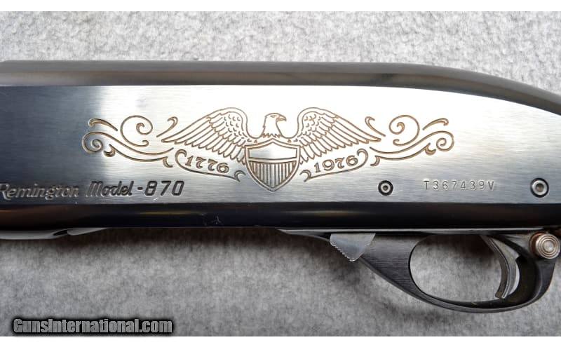 Description: Pre-owned Remington Bicentennial edition 870 12 Gauge, 30" barrel. Manufactured to commemorate U.S. Bicentennial 1776-1976. Serial# T367439V 12 Gauge SOLD Chambers: 2 3/4 Metal Condition: Good Condition showing some bluing wear Wood Condition: Good Condition with some light scratches Barrels: 30 inches Stock Dimensions: LOP 13 3/4 Butt Pad: Adjustable up/down Weight: 8.5 lbs Sights: White front bead Chokes: Fixed Full Item Location: Springfield, OR |