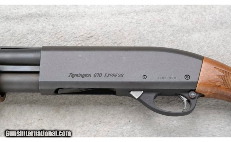 Description: This Remington Model 870 Express is a right hand pump action shotgun in 12 Ga. It has a 21 inch barrel with a ventilated rib. A red high visibility front sight and a metal bed middle sight. With a 2 3/4 inch chamber it comes with an Imp. Cyl. choke tube in the gun. The butt stock is a checkered grip hardwood pistol grip. The forearm is a checkered grip hardwood with finger grooves. 12 Gauge SOLD Chambers: 2 3/4 inch. Metal Condition: Excellent. Wood Condition: Excellent. Bore Condition: Bright and shiny. Barrels: 21 inch barrel with a ventilated rib. Stock Dimensions: LOP 14 inches. Fore End: Checkered grip hardwood with finger grooves. Butt Pad: Remington black rubber pad. Weight: 8 lb. 2 oz. Sights: Red high visibility front. Metal middle bead. Chokes: Comes with an Imp. Cyl. choke tube in the gun. Item Location: Richfield, WI |