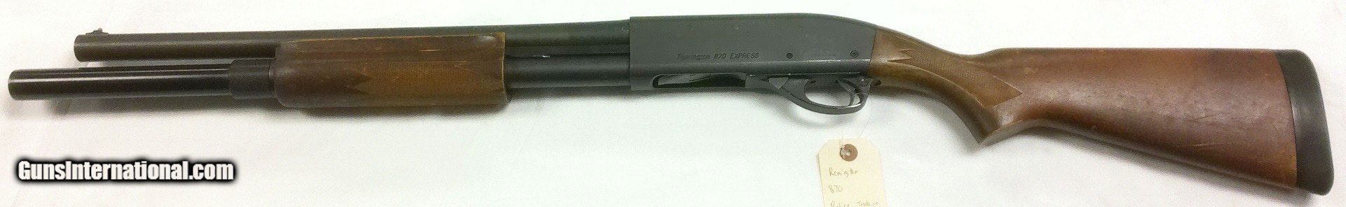 Description: Guns Listing ID: 1124430 Manufacturer: Remington Model: 870 Caliber:12 Gauge Capacity: 7+1 Barrel Length: 18\" Sights: Standard Shotgun Irons Condition: Poor Original Box: No UPC: lepdtradeinshotguns Notes: Firearms are LE Trade In‚‚s and have wear from use. *This firearm passes a functions check, but has not been test fired by our staff. Please understand that this is a used firearm and should be inspected by a qualified gunsmith as needed. SOLD Manufacturer: REMINGTON Model: 870 EXPRESS Condition: Used - Non-Certified Barrels: 18 BARREL Gauge Info: 12 GA Finish: BLACK /W WOOD STOCK |
