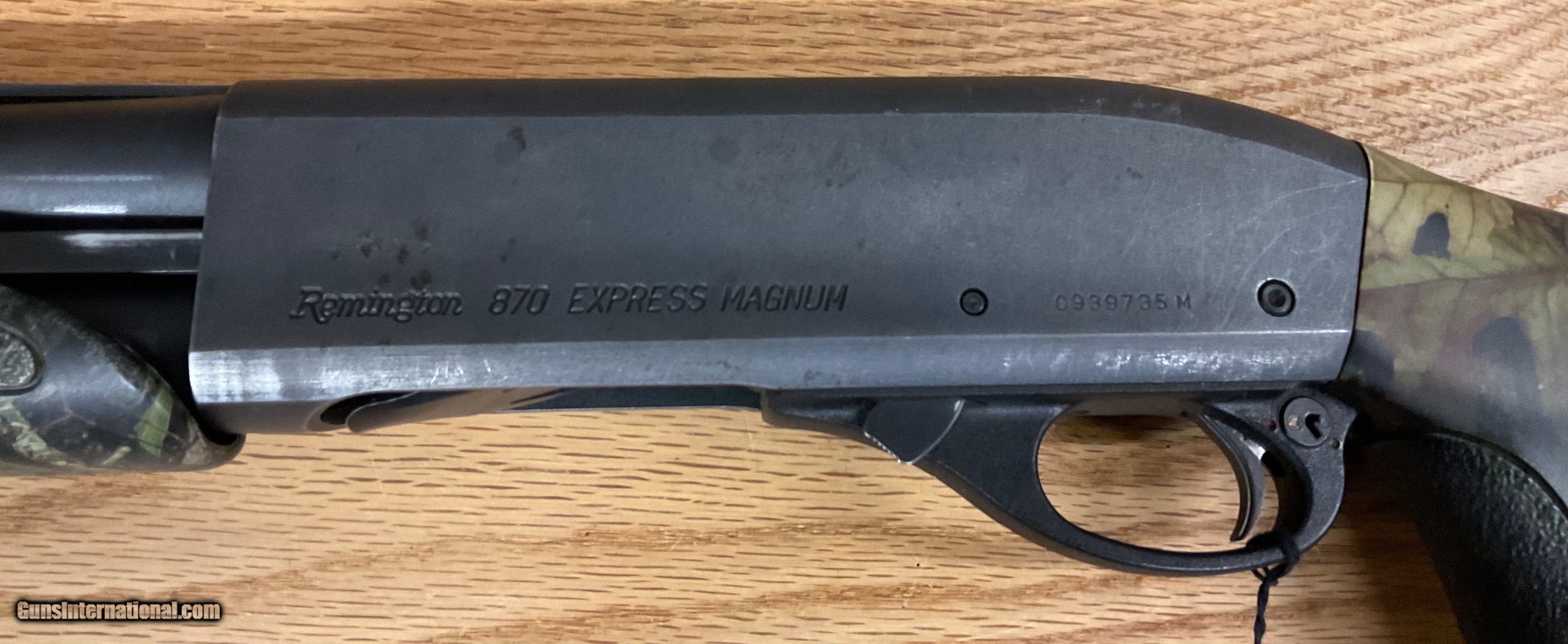 Description: Remington 870 Express 12 gauge pump shotgun. Nice stock and camo finish. Some wear on the bluing. See all photos for details. Buyer is responsible for a 35 dollar shipping charge. SOLD Shotgun Gauge: 12 Gauge Manufacturer: Remington Model: 870 Express Serial Number: C939735M Barrel Length: 20” Condition: Good |