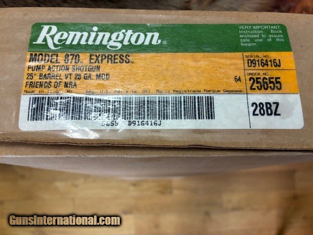 Description: NRA Edition 25” Vent Rib Modified Choke New in Bo SOLD Shotgun Gauge: 28 Gauge Manufacturer: Remington Model: 870 Express |