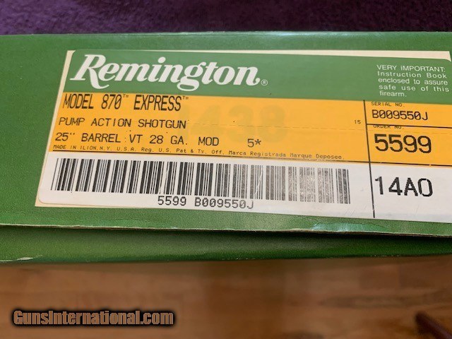 Description: 25" Modified Choke Barrel, New In Box SOLD Shotgun Gauge: 28 Gauge Manufacturer: Remington Model: 870 |