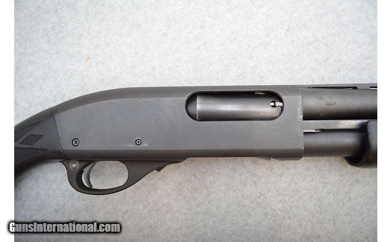 Description: Good condition but was definitely a previous owners working gun. The metal shows moderate finish wear; mostly on the right side of the receiver. The left side has some marks/scratches where it looks like the tool they were using to knock the trigger group pins out slid a bit. Other places it's pretty normal such as the action bars and where the pump runs along the magazine tube. Stock is in okay shape with some lines and scratches as well as a few points of the "checkering" being crushed. Comes with the mentioned choke tubes. 12 Gauge SOLD Chambers: Pump action fed from a tubular magazine and chambering up to 3" shells. Metal Condition: Very good. Wood Condition: Furniture is in very good condition. Bore Condition: Excellent. Bright shine and no deformities. Barrels: 21" Matte blued with ventilated rib. Triggers: Narrow blued metal with smooth surface. Stock Dimensions: Matte black composite with 13¾" LOP. Fore End: Matte black synthetic. Butt Pad: Remington branded black rubber pad. Weight: 7lbs 8oz Sights: Orange painted front bead and stainless middle post. Chokes: "Comes with a turkey, modified, improved cylinder, and full choke. Item Location: Green Bay |