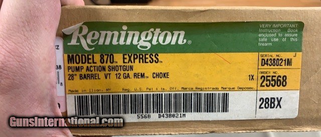 Description: This original Remington Model 870 Express Magnum is New In The Box - never even assembled and of course unfired since leaving the Remington factory. Can't get better than this and will only appreciate with time. SOLD Shotgun Gauge: 12 Gauge |